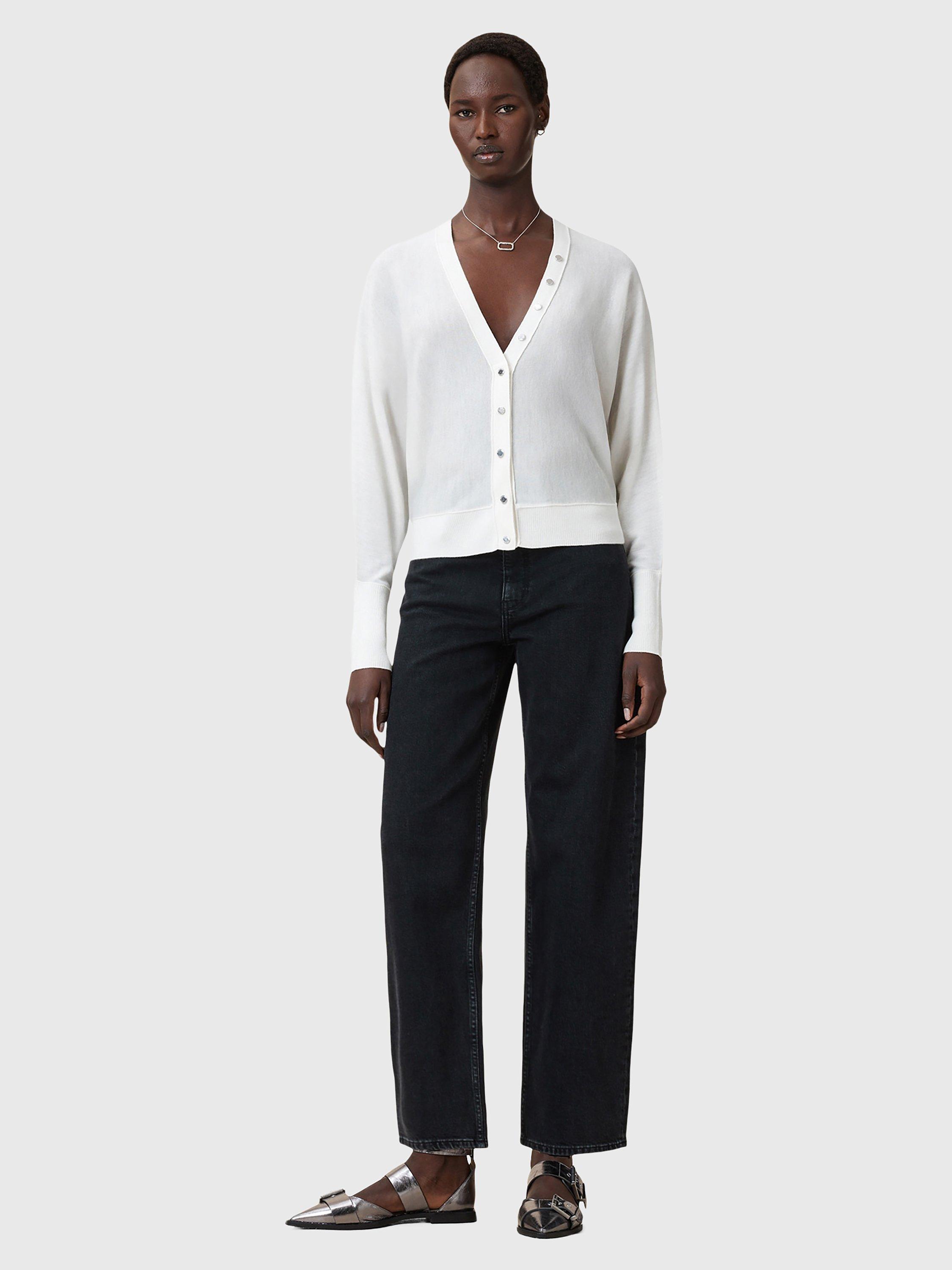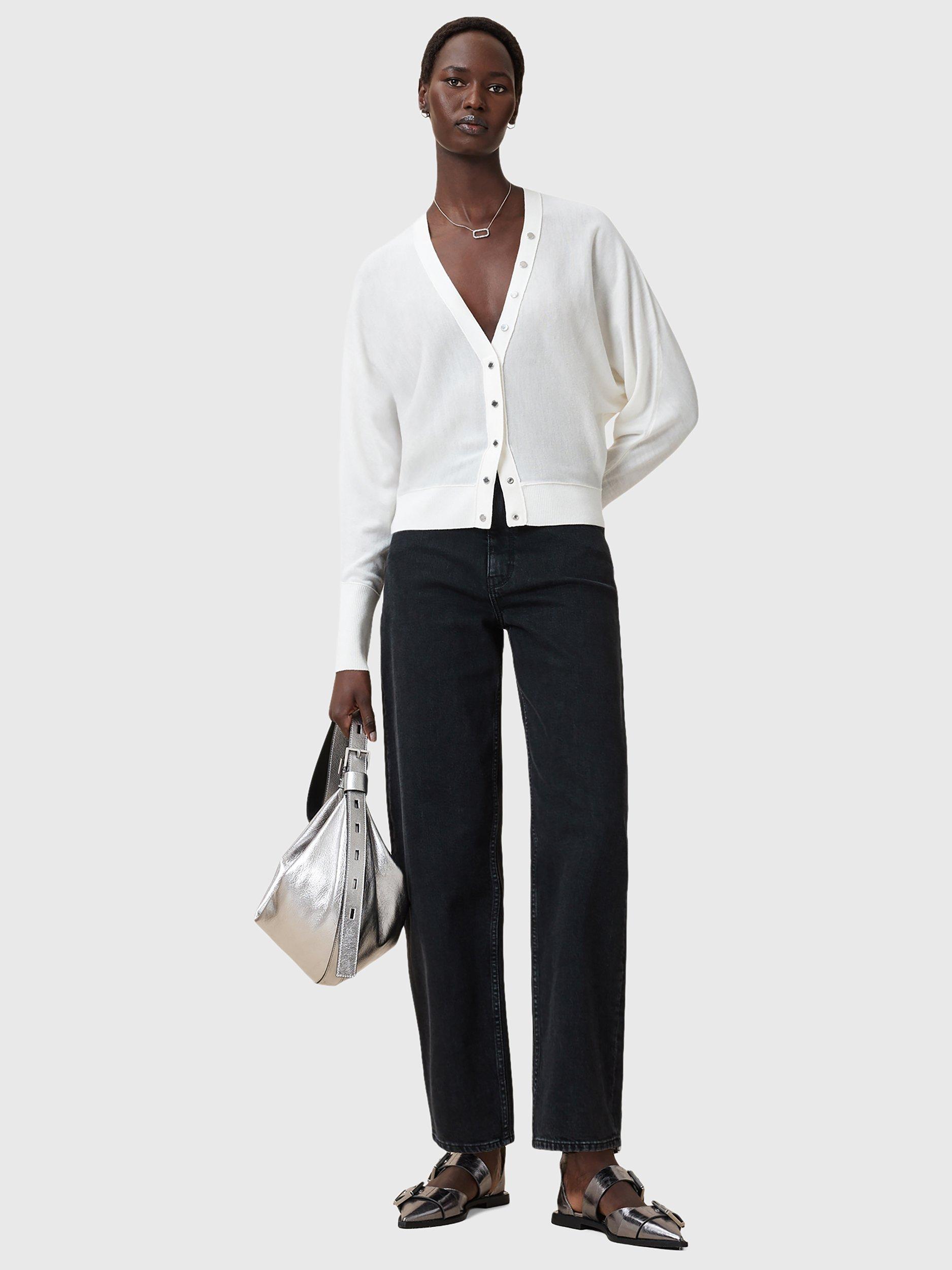 Cut with a v-neck and long sleeves, this button-detail cardigan from AllSaints is a quality piece in pure wool.