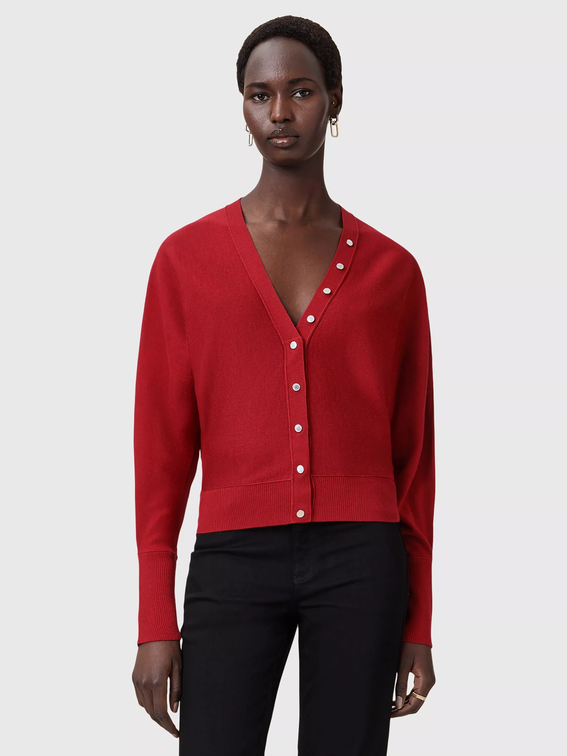 AllSaintsHonor Wool V-Neck Cardigan, Crimson Red