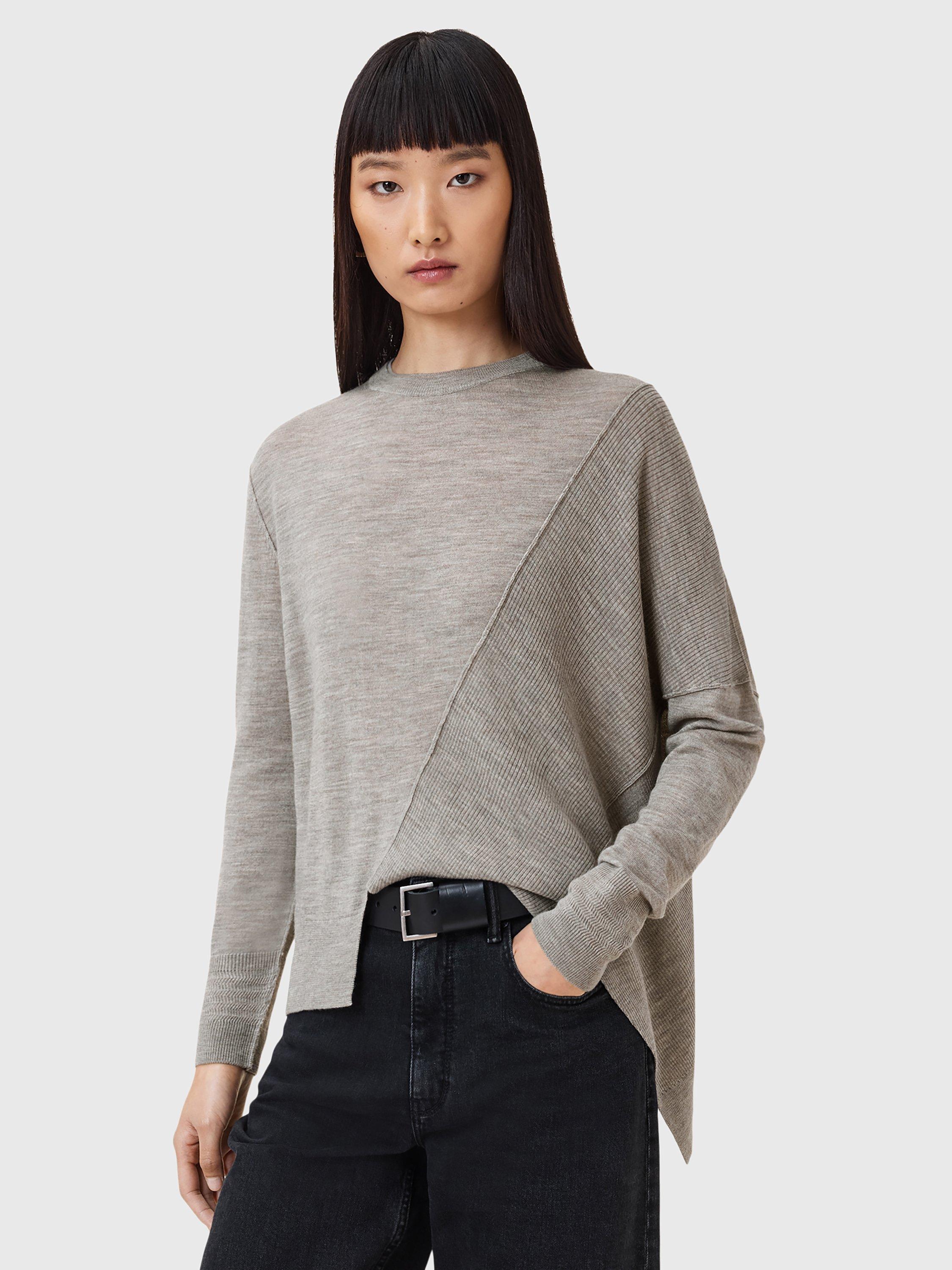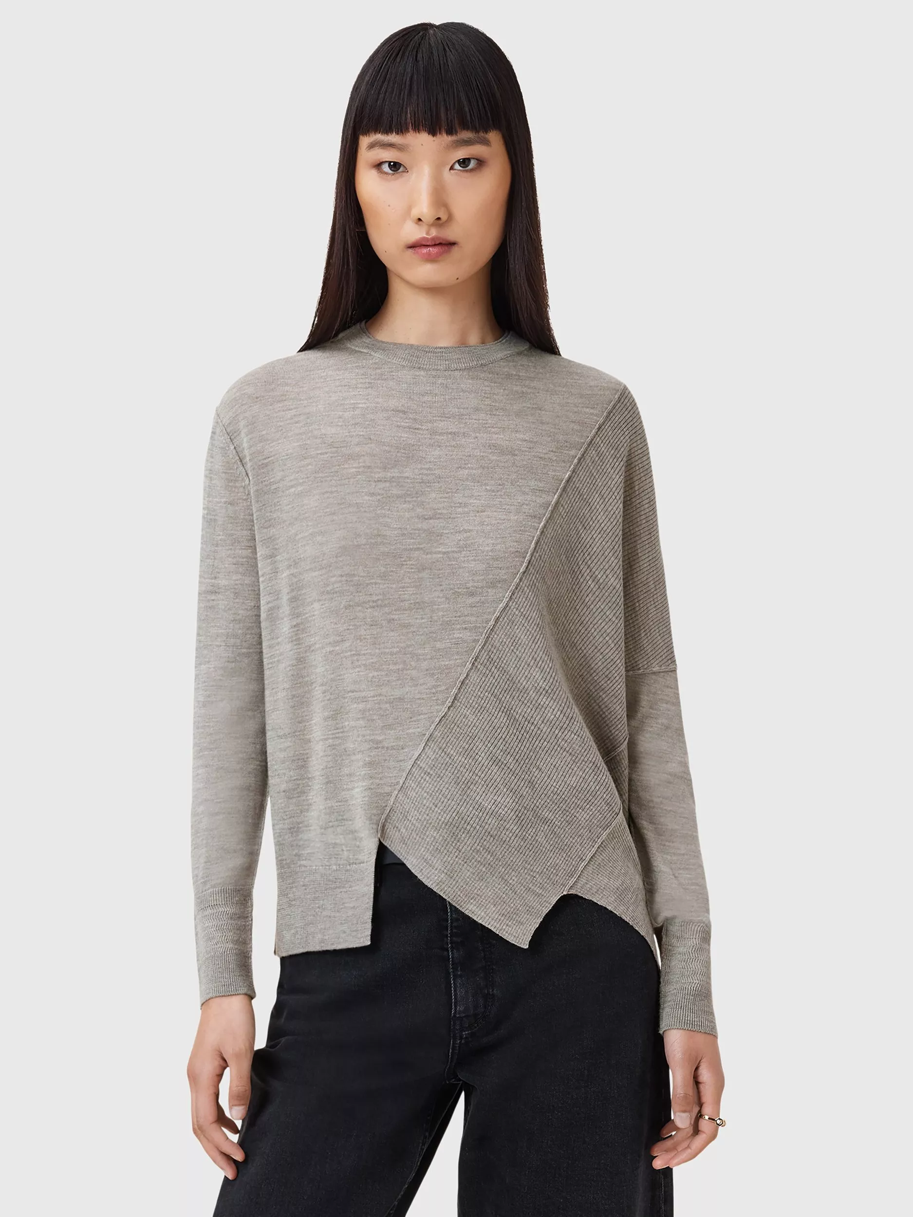 Cut with a crew neck an asymmetric modern hem, this mid-weight jumper by AllSaints will keep you cosy for years to come in a quality wool composition.