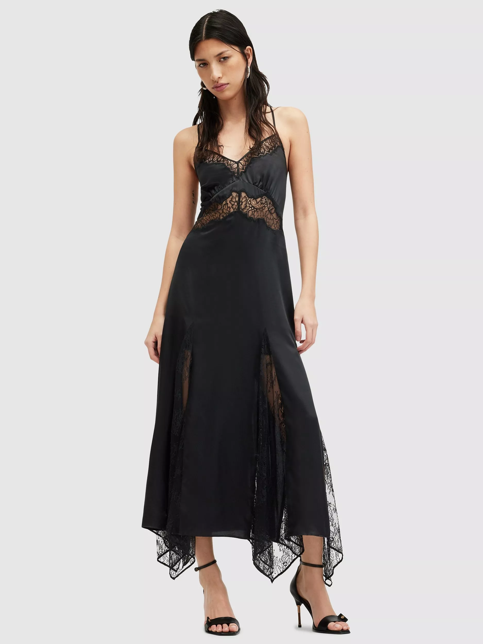 In a flattering fit that accentuates the waist, this mid-length dress from AllSaints is spun from a plush blend of silk. Effortlessly flattering thanks to a fuss-free v-neckline, this sleeveless style looks to intricate lace for all its detail.