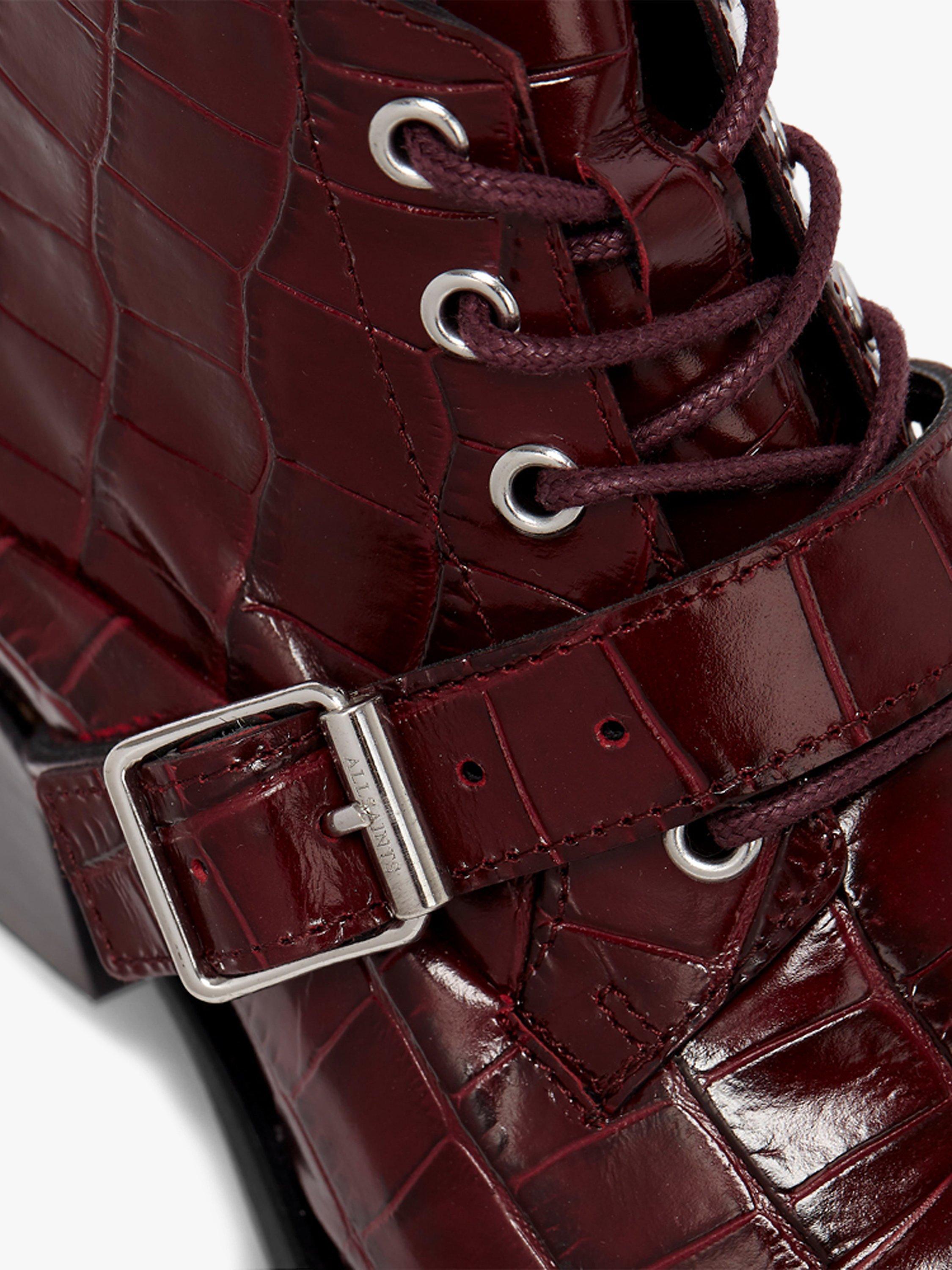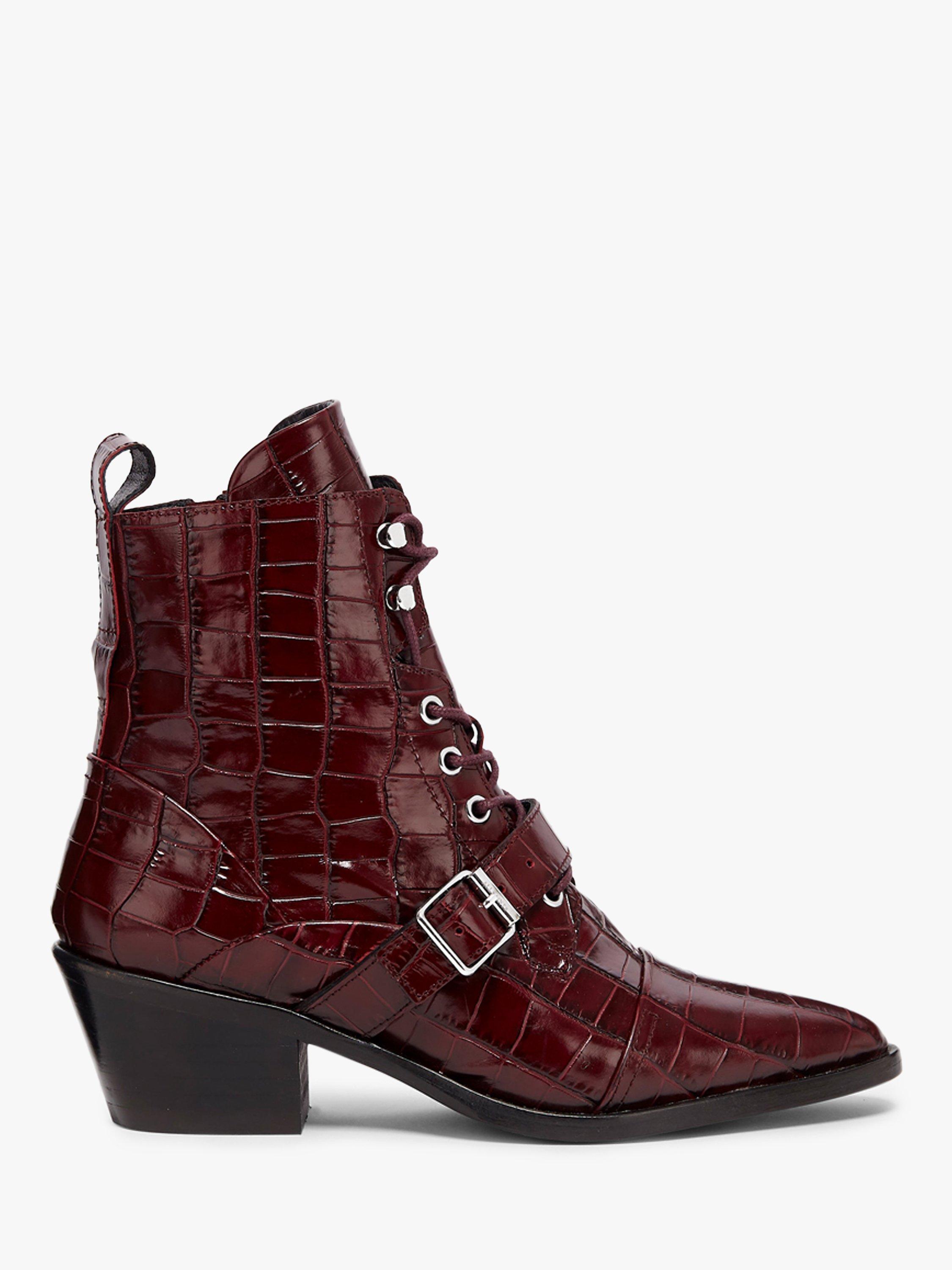 AllSaints Katy Crocodile Leather Pointed Ankle Boots, Red