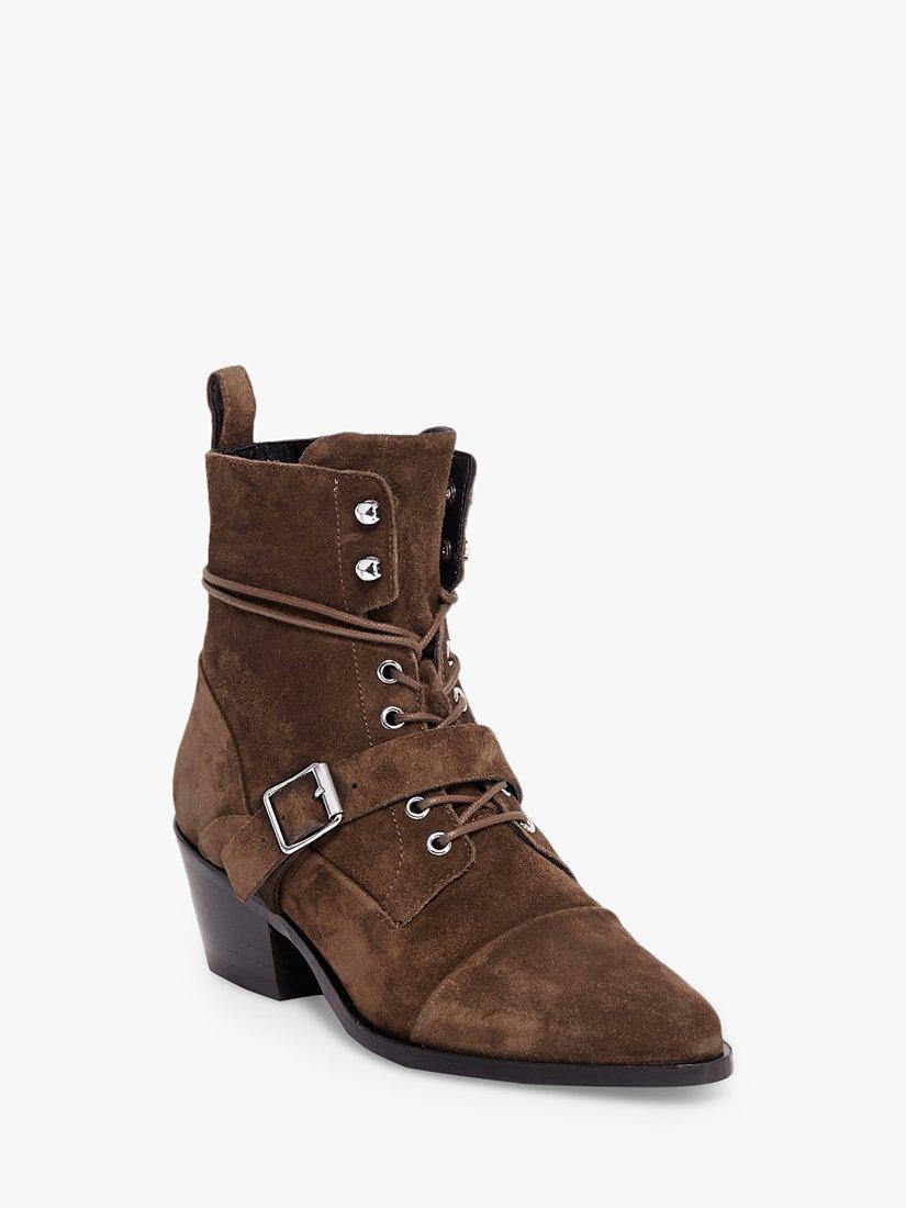 Fuse your two favourite styles with the Katy Boot from AllSaints. Hiker-style metal eyelets complement the western stacked heel and pointed toe – you'll be wearing these day and night.