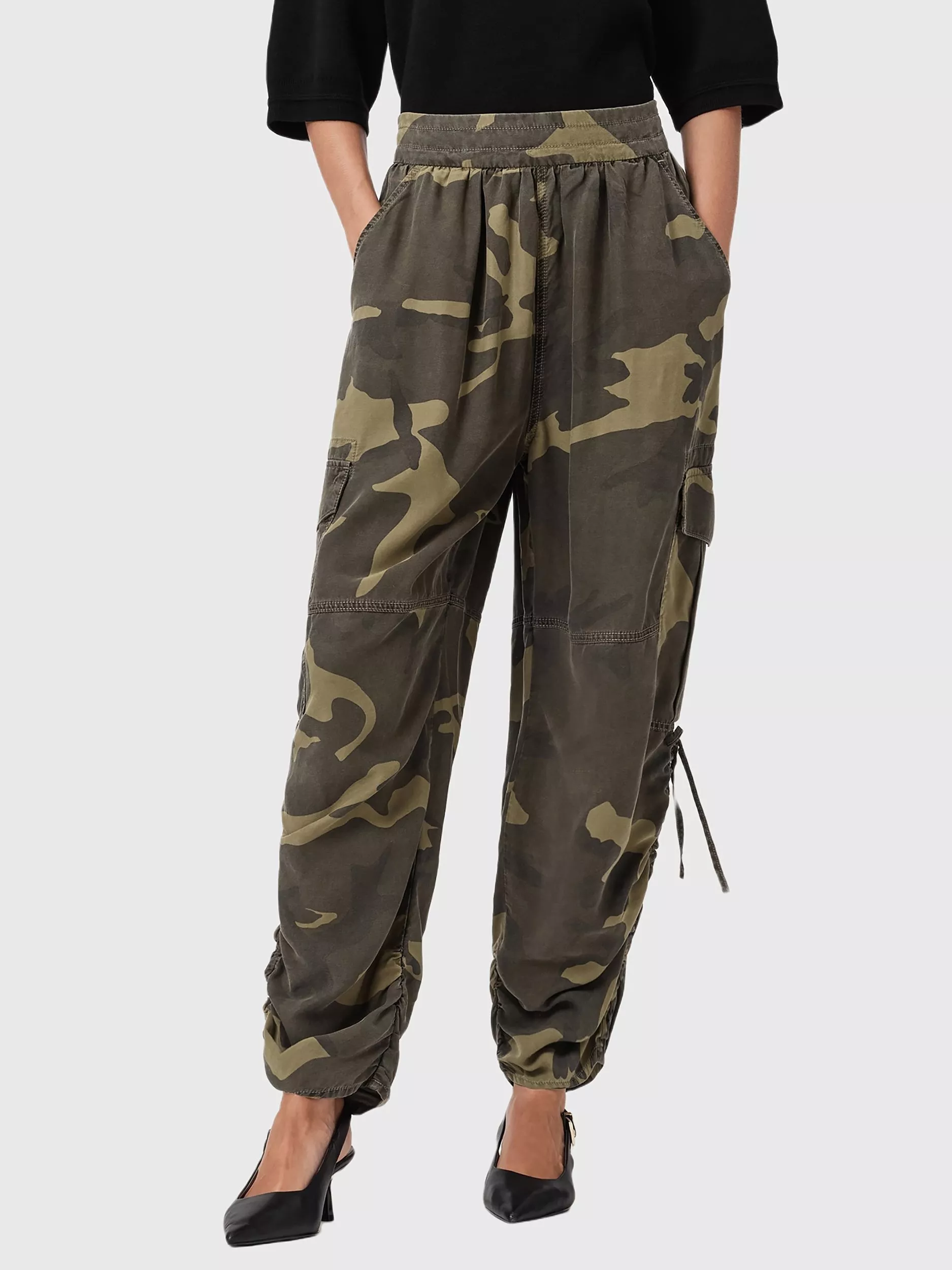 A masterclass in proportion, opt for this pair of tapered cargo trousers by AllSaints. They sit mid rise with an elasticated waist, all-over camo print and a regular length.