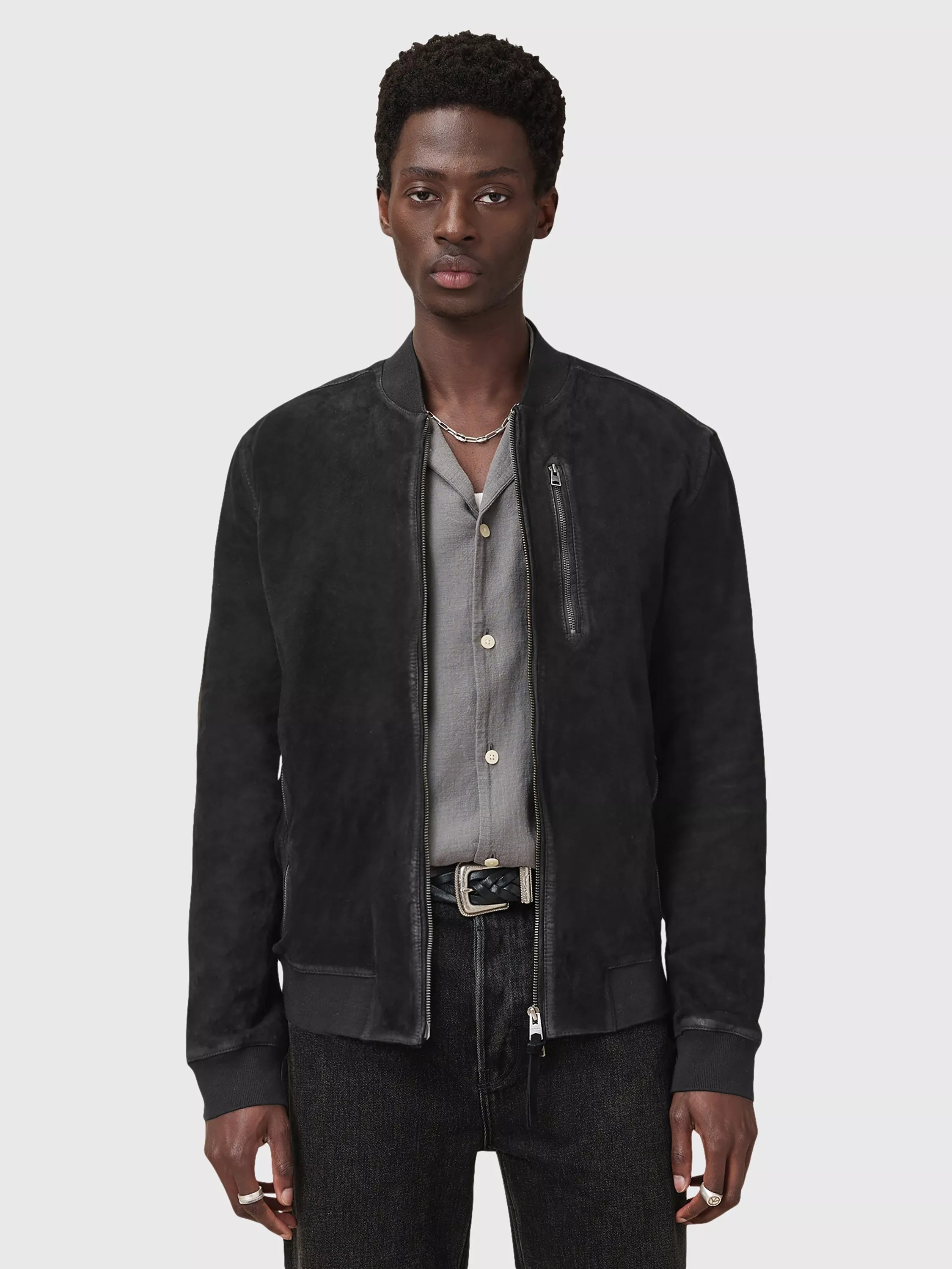This suede bomber jacket adds a sharp edge to your daytime plans. Cut for comfort, with a simple zip fastening and smooth lining, it suits your daily routine while letting you make every moment matter.