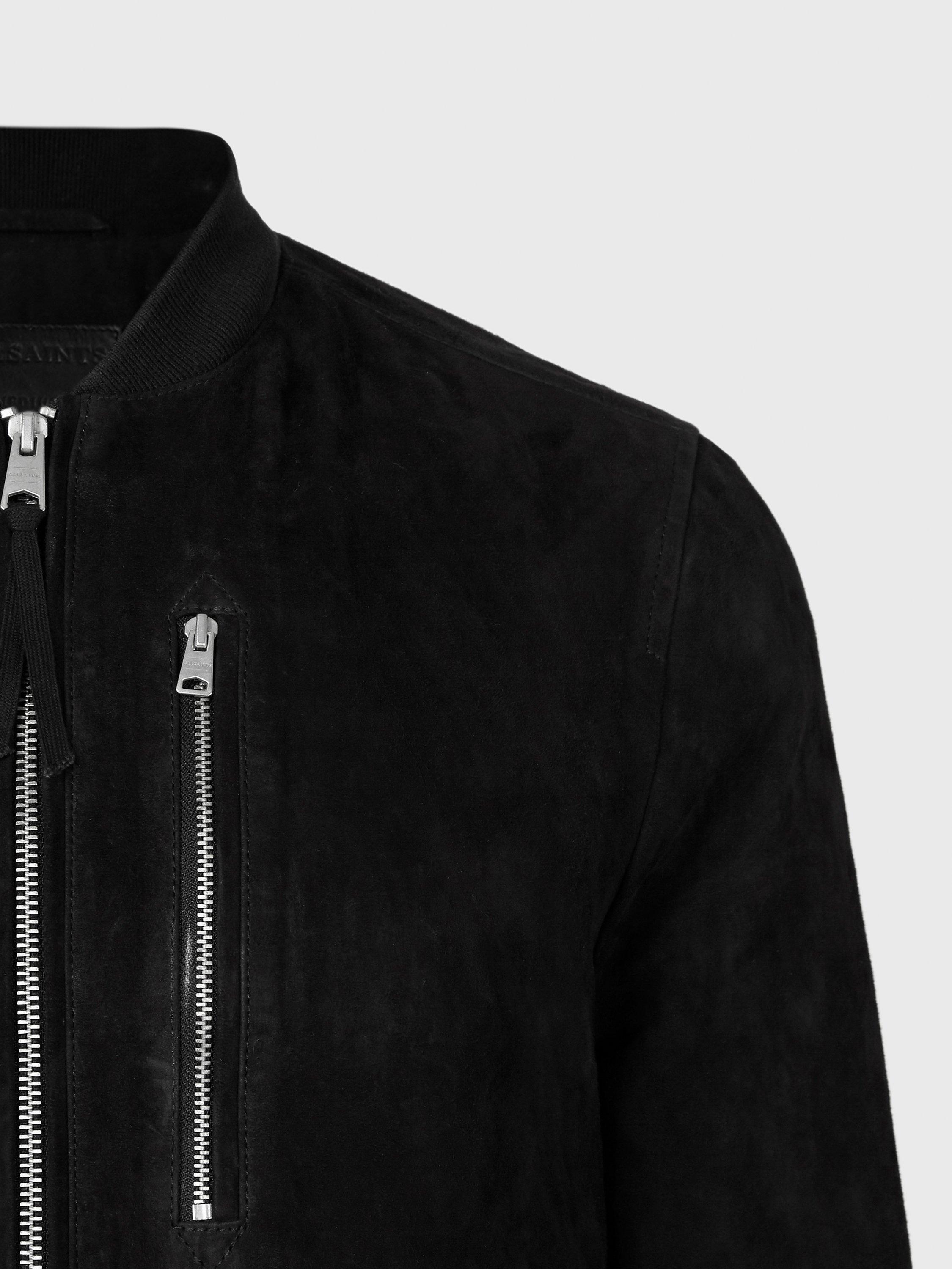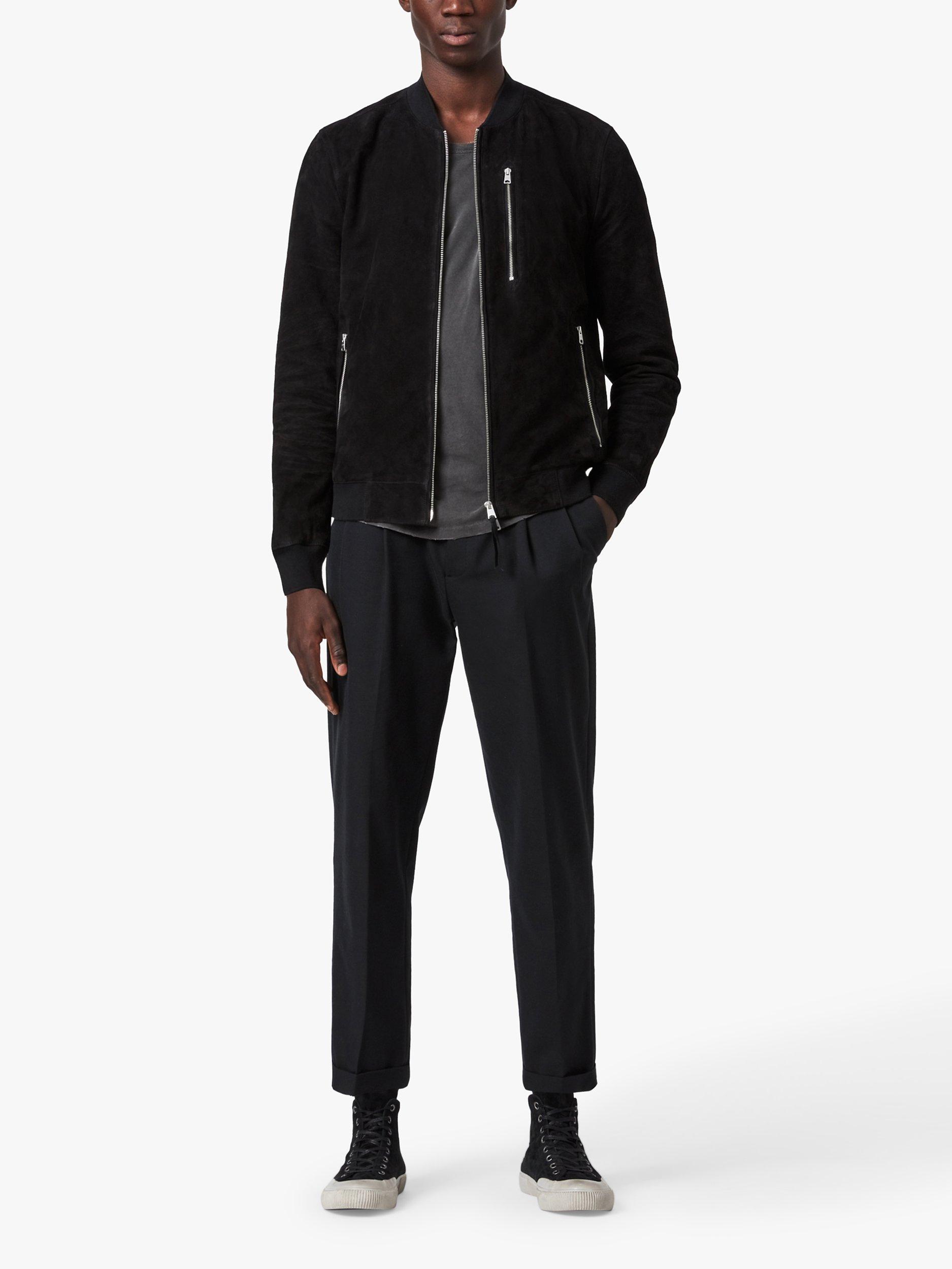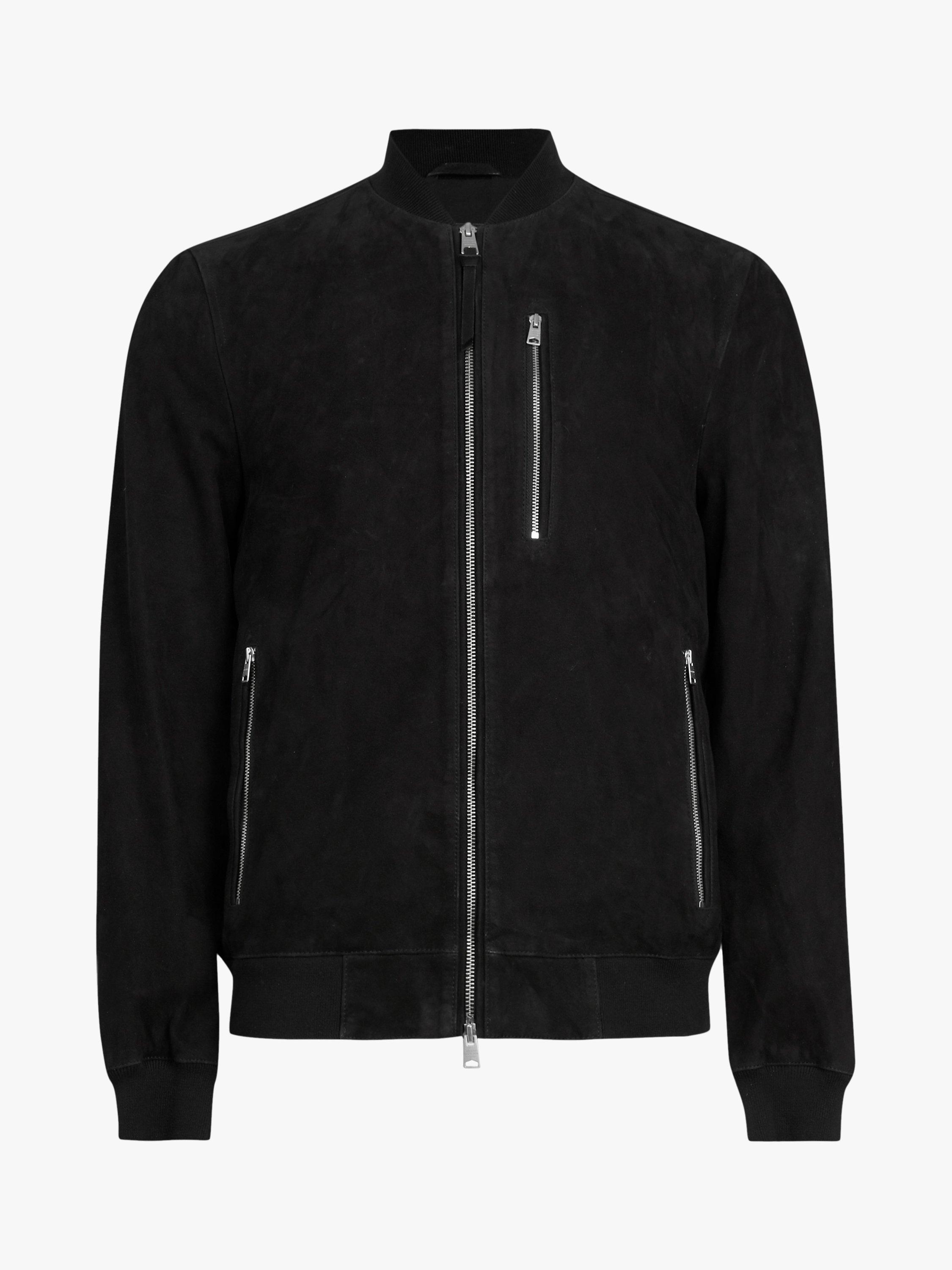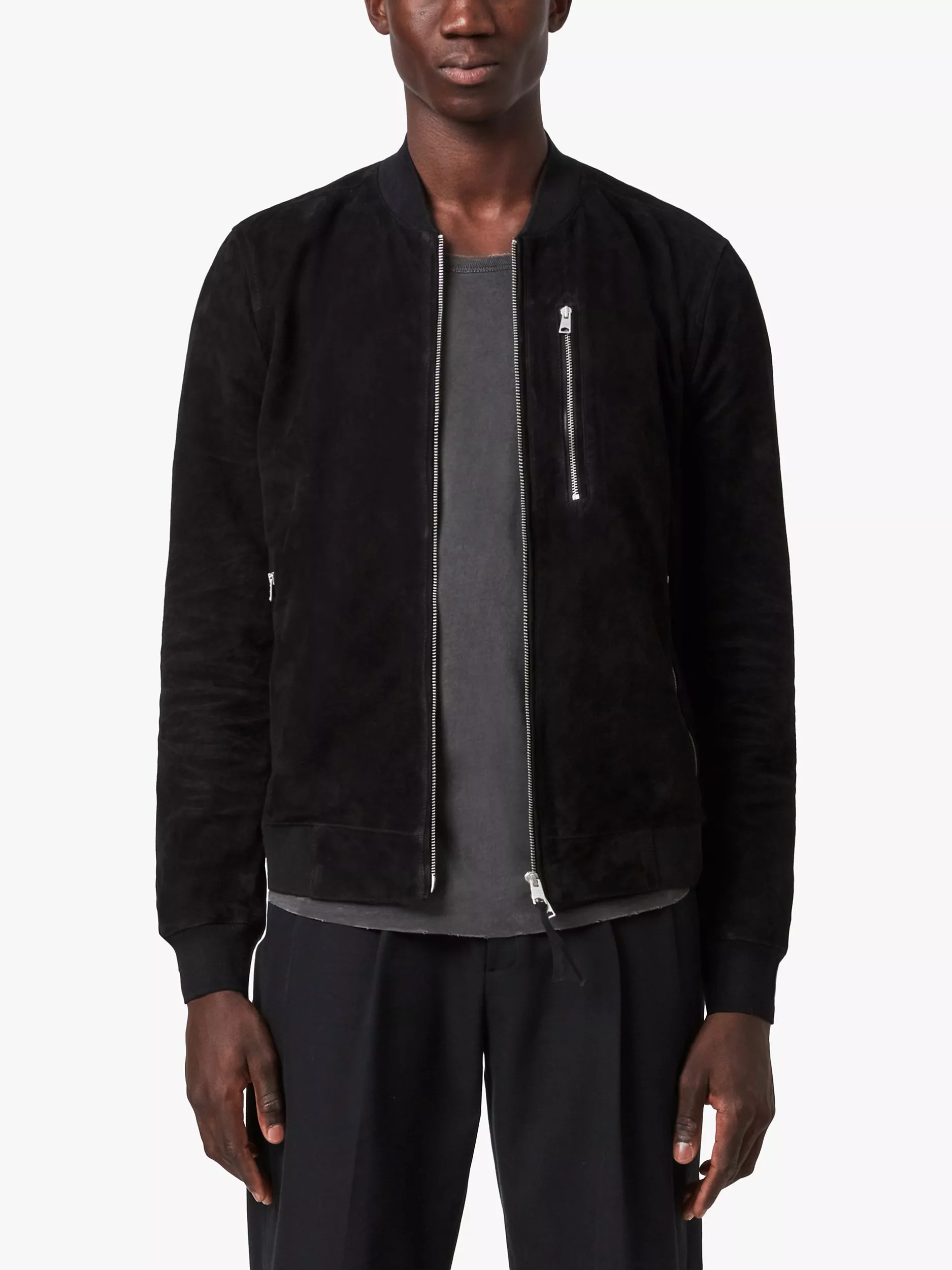 This AllSaints bomber jacket offers a slim fit with minimalist detailing. The suede fabric works alongside a vertical chest zip, ribbing details and zip side pockets to create a practical yet stylish layer for versatile dressing. Try wearing with anything from tailoring to relaxed denim.