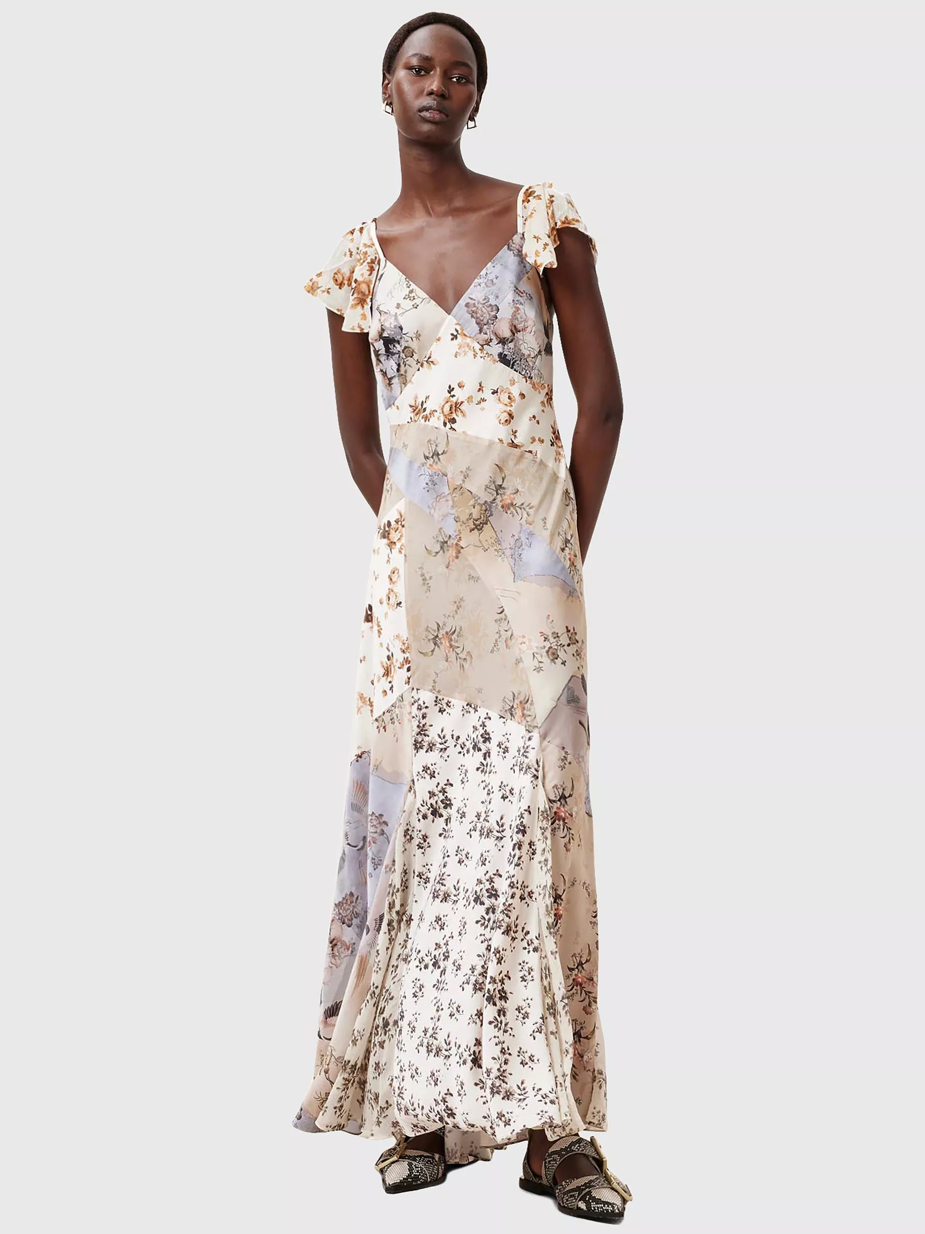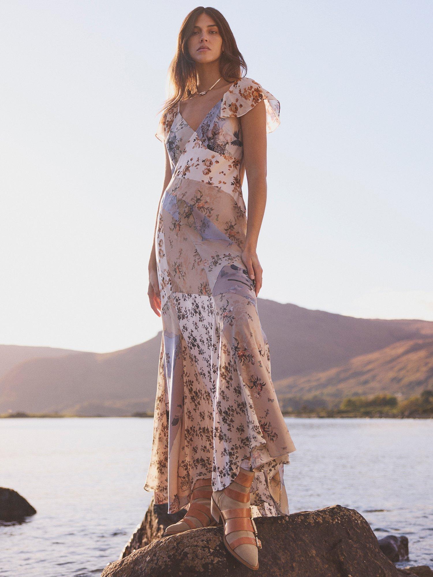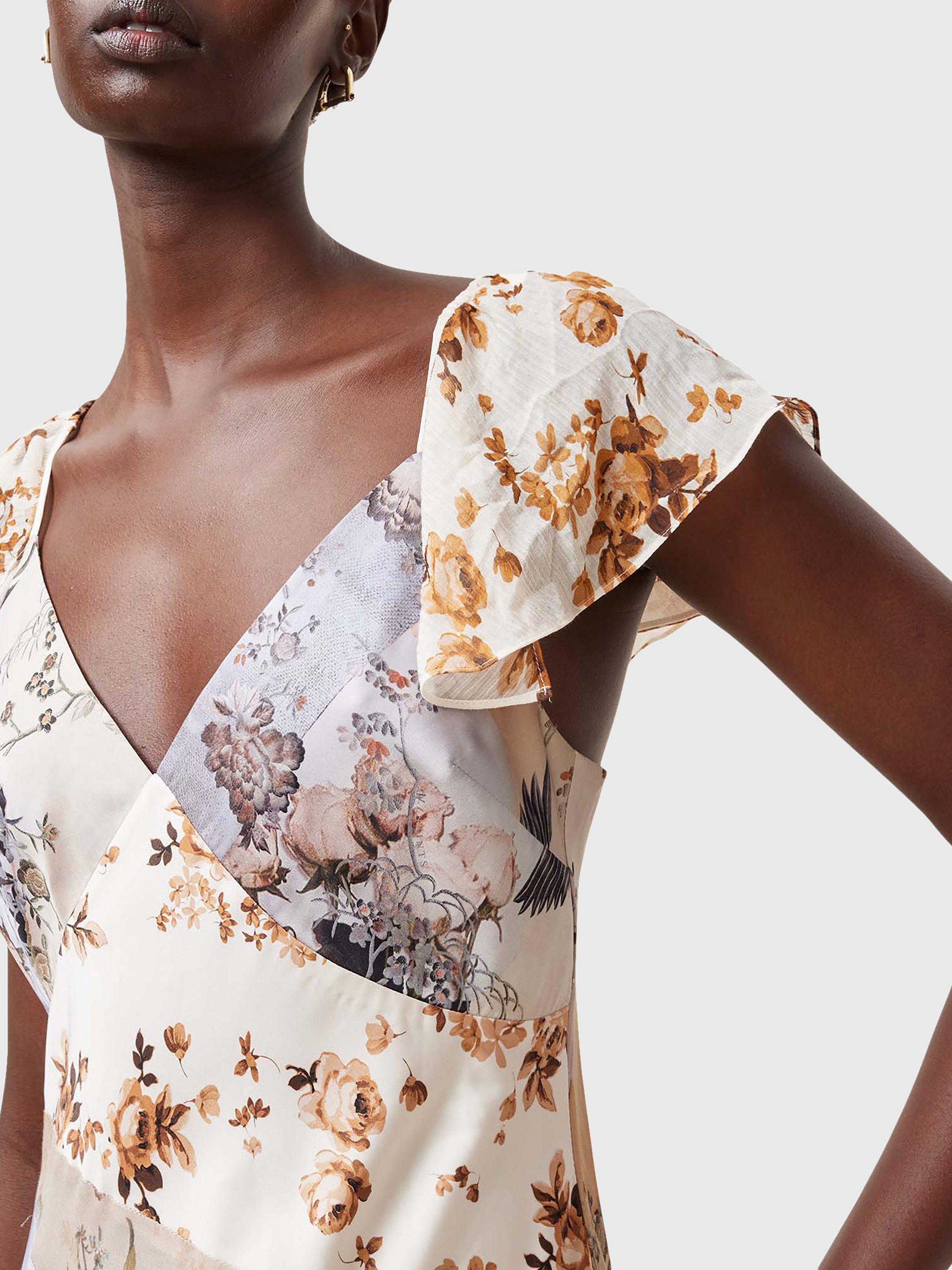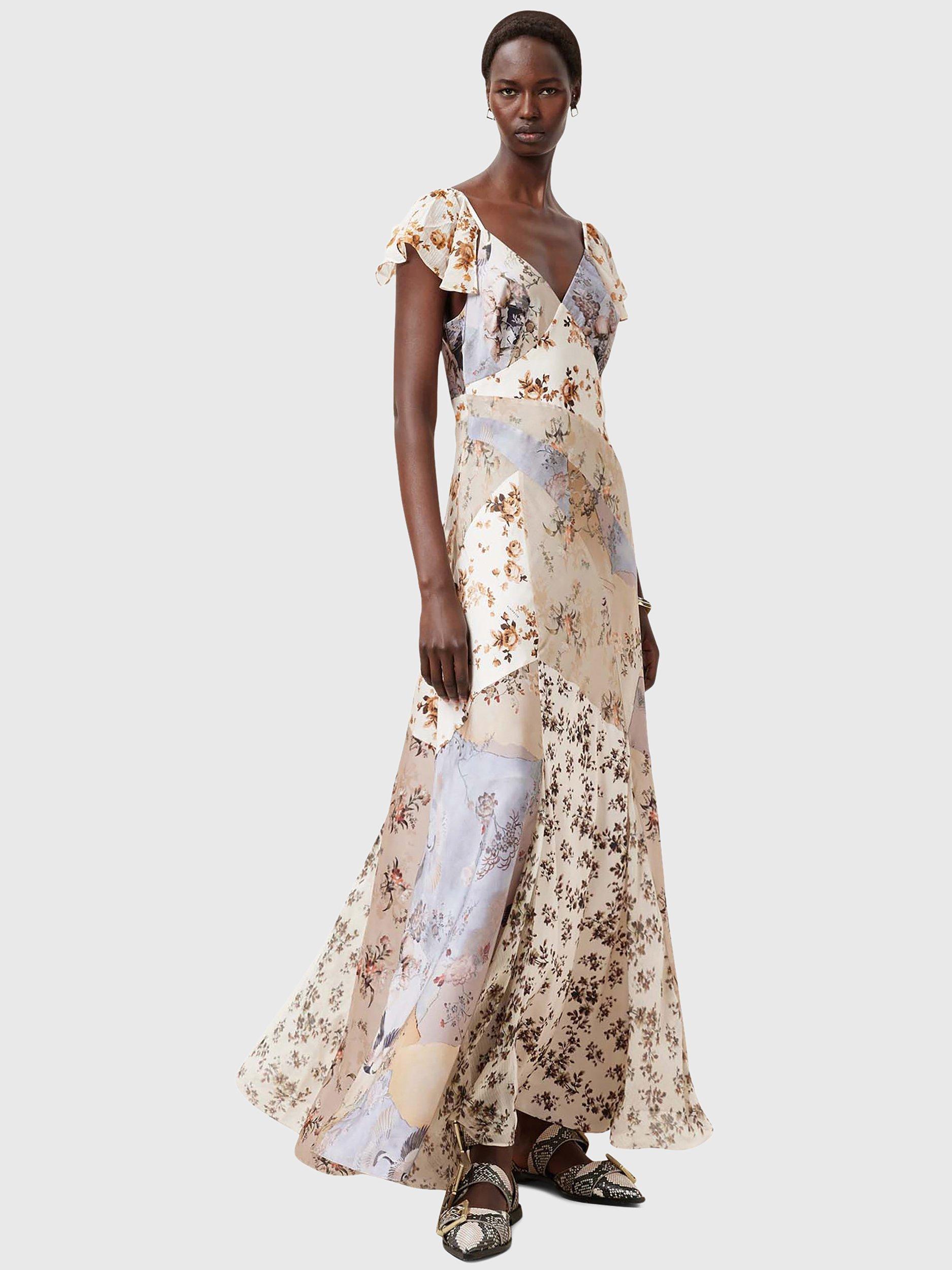 Entirely flattering with its A-line shape, this maxi dress from AllSaints is made from a resilient fabric. With a universally flattering v-neckline and cap sleeves, this style features a floral patchwork print.