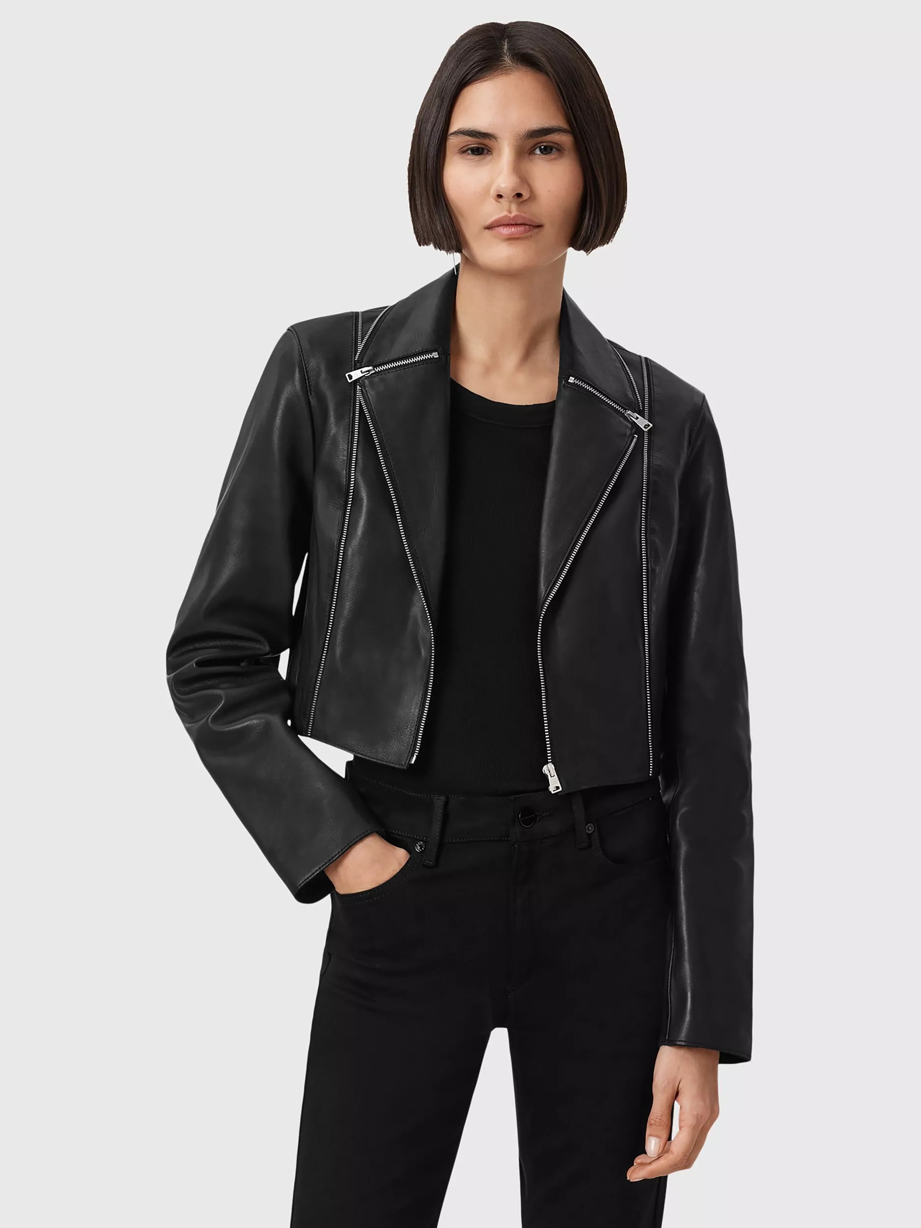Cut in a contemporary slim fit, this biker jacket is a modern take on a timeless classic. It has a sharp collar and long sleeves, with a cropped length that’s perfect for layering. This is a jacket that combines the best of the old with the best of the new.