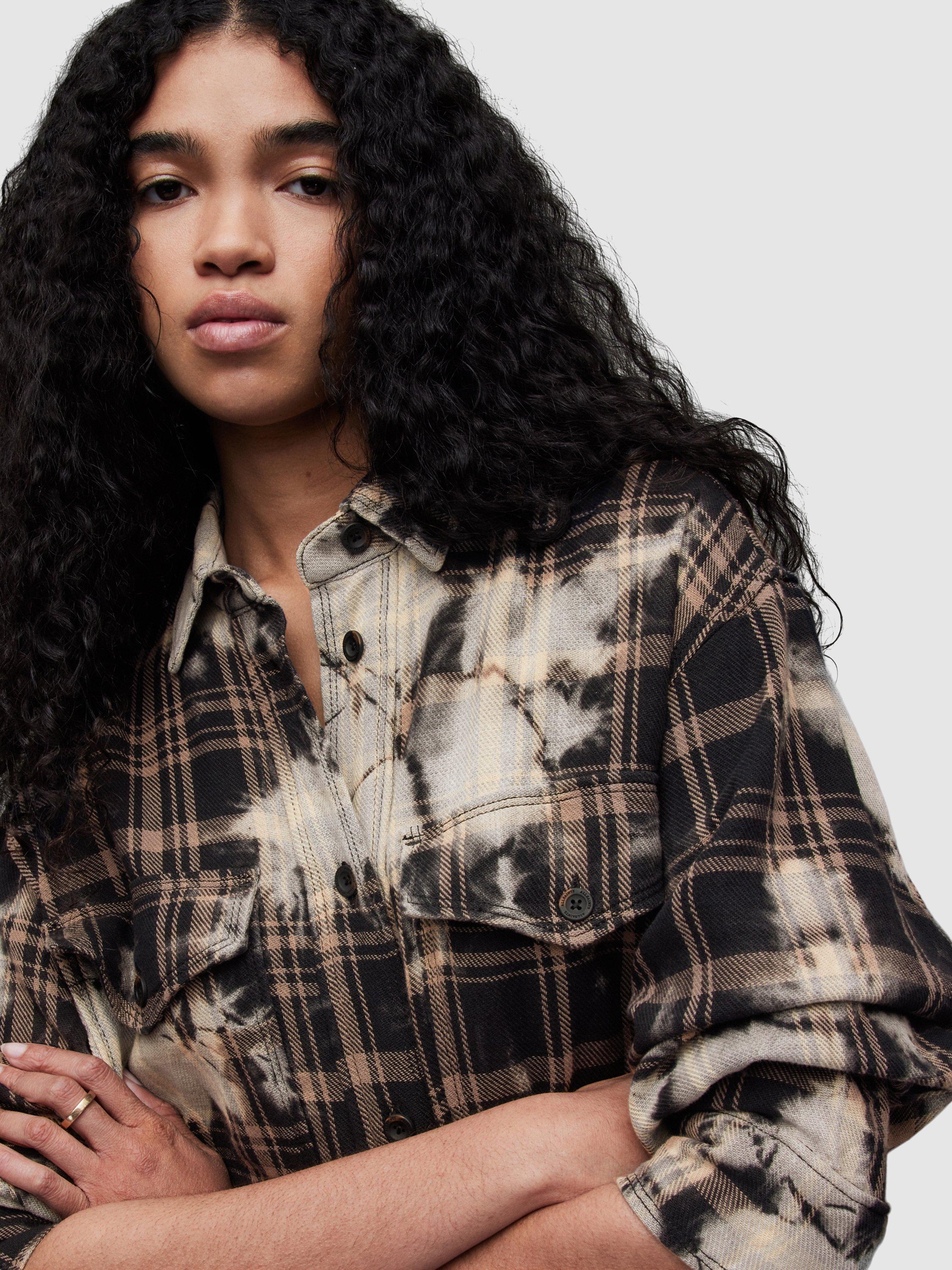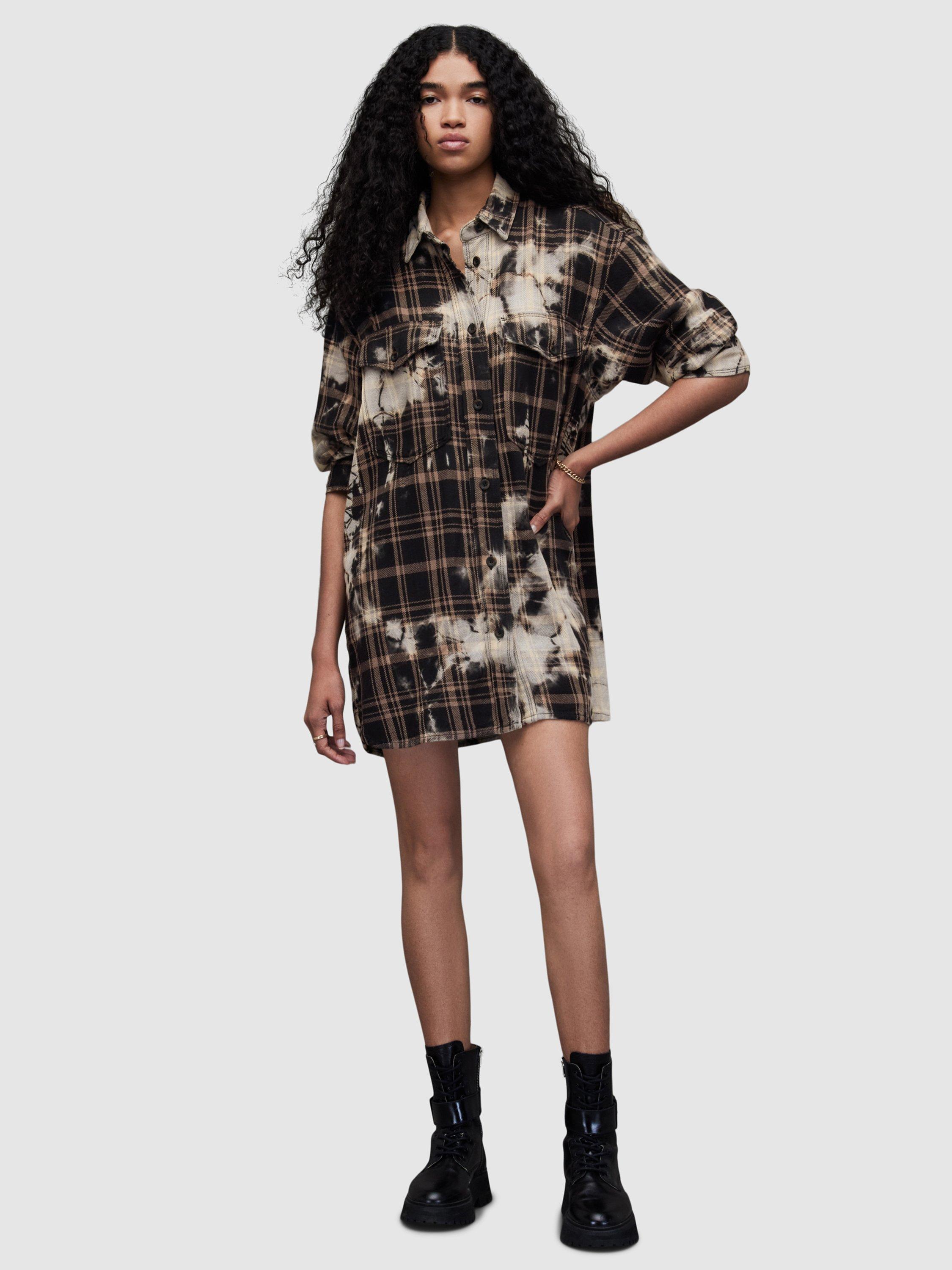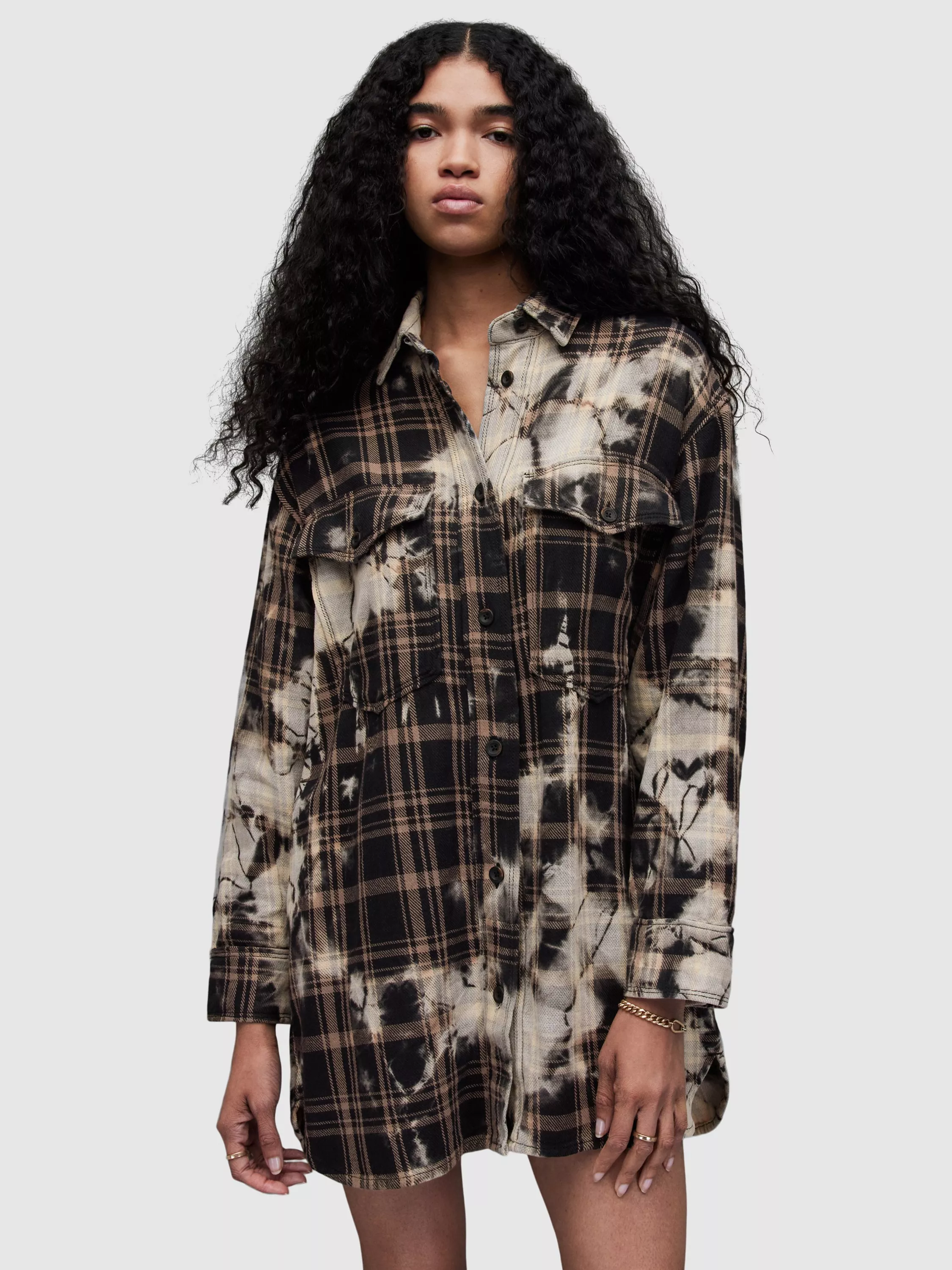 An instant classic thanks to its shirt styling, this mini oversized shacket dress from AllSaints is rendered from pure cotton. Topped with a collar and long sleeves, it's the combined check and acid wash print that makes this one a standout.