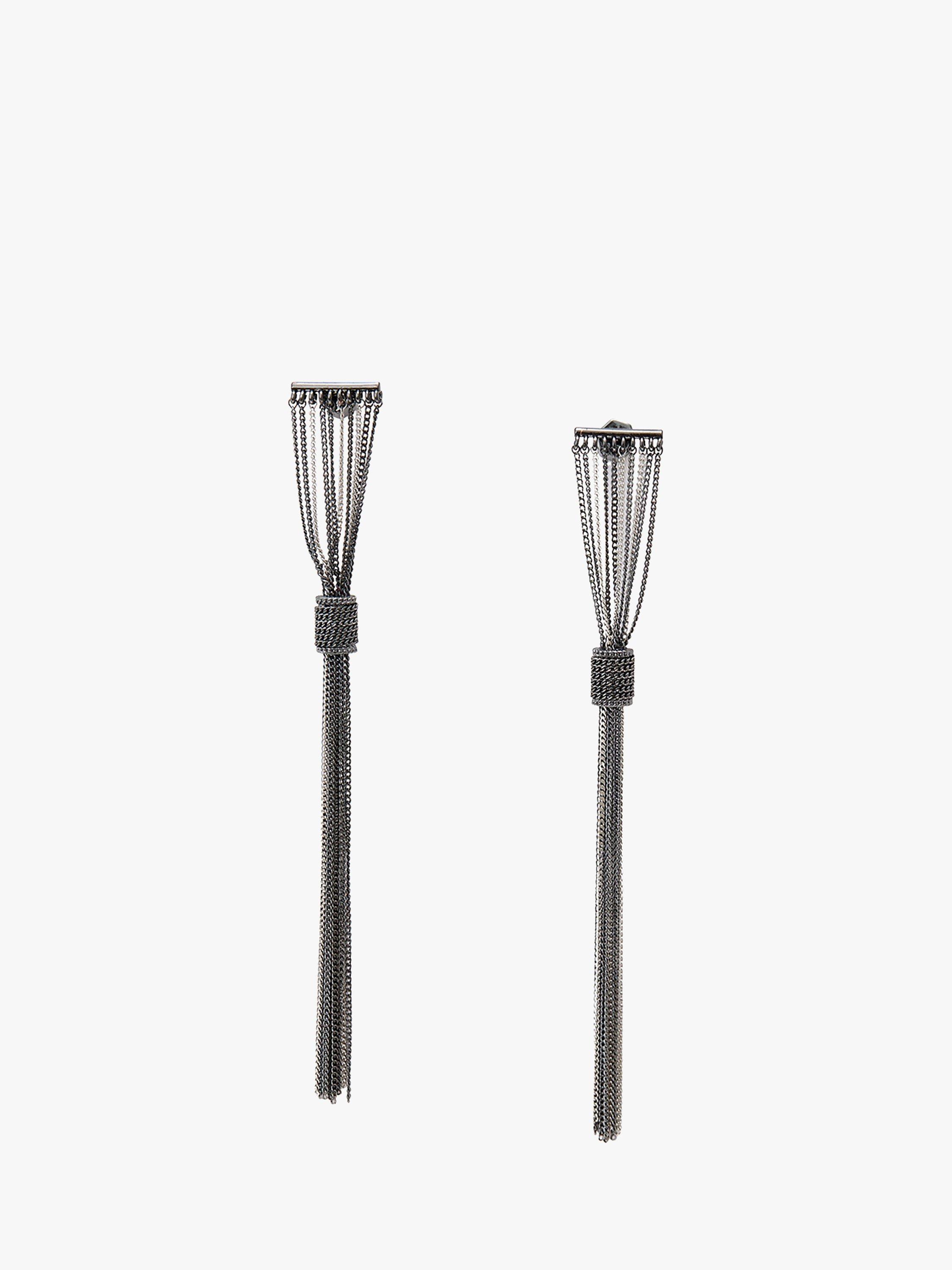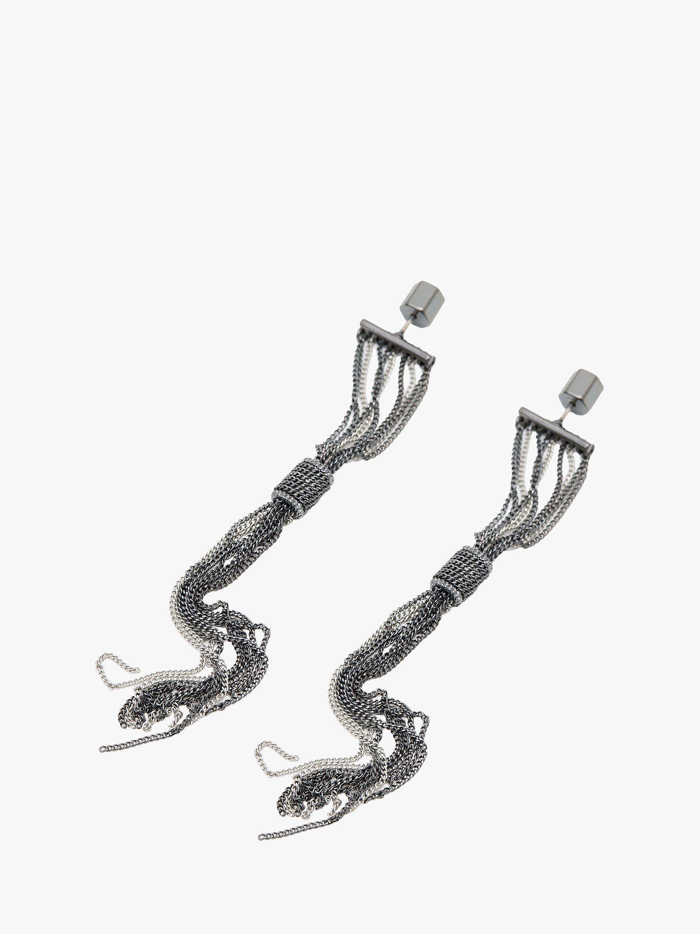 Energise your look with these linear earrings featuring a minimal bar paired with refined curb chains in a neutral two-tone finish. Designed for pierced ears only.