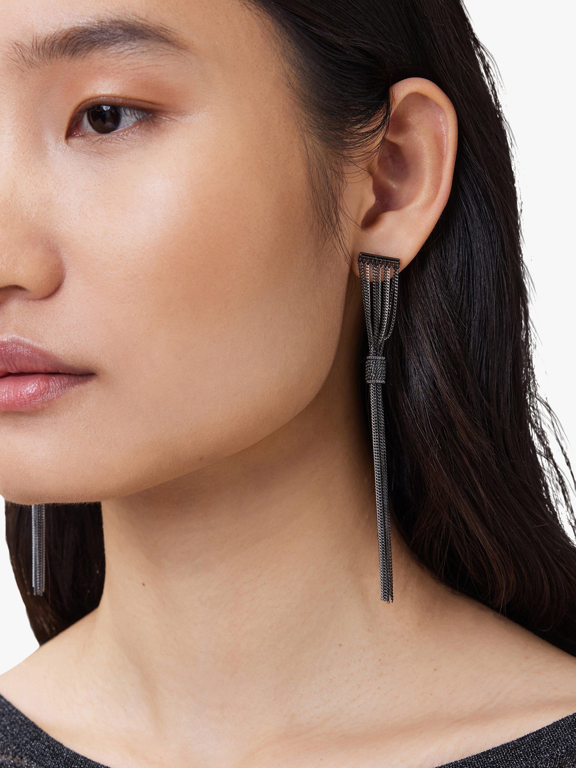 AllSaintsLinear Bar Chain Drop Earrings, Black