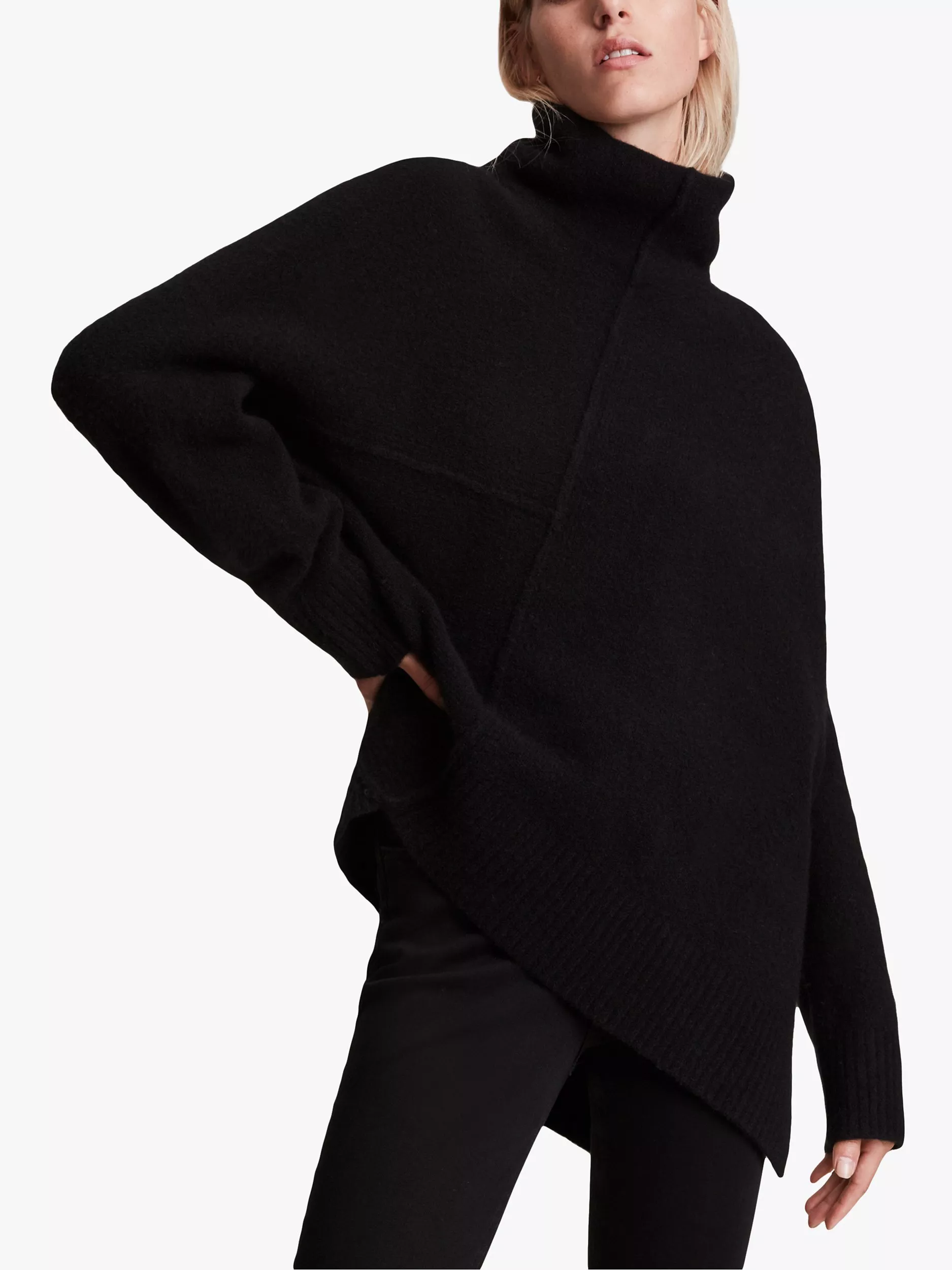 Keeping you warm with its rolled neckline, this jumper from AllSaints is asymmetric in design and is constructed from a wool-rich blend for an ultra-cosy and luxuriously warm finish.