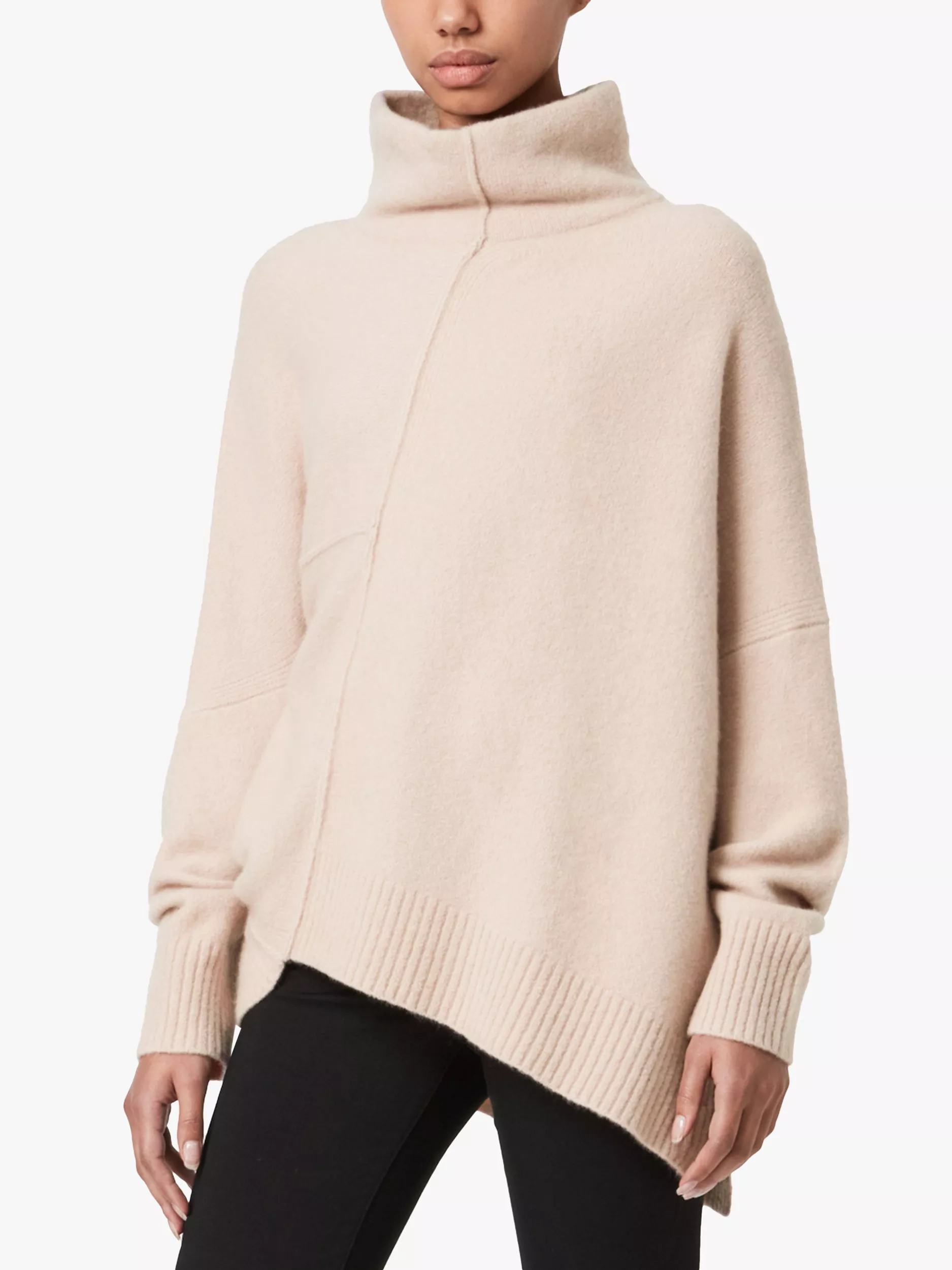 Sporting a cosy roll neckline and an asymmetric hem, this jumper by AllSaints is the perfect layering option as the weather cools. Constructed from a rich wool blend that's been responsibly sourced, this style features panelled together pieces with exposed seams for an ultra-cosy and pared-back feel.