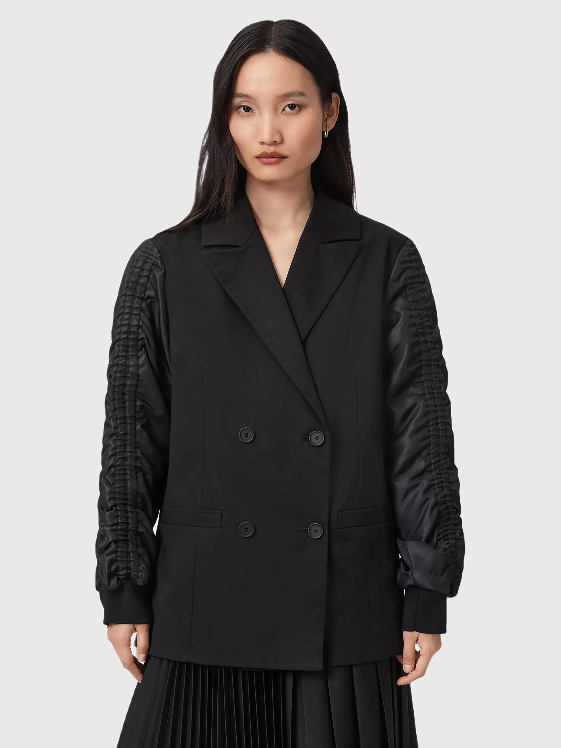 This AllSaints blazer keeps you comfortable from meetings to nights out. Built with organic cotton and recycled materials, its relaxed tailored shape and button fastening offer a sharp look and practical warmth.