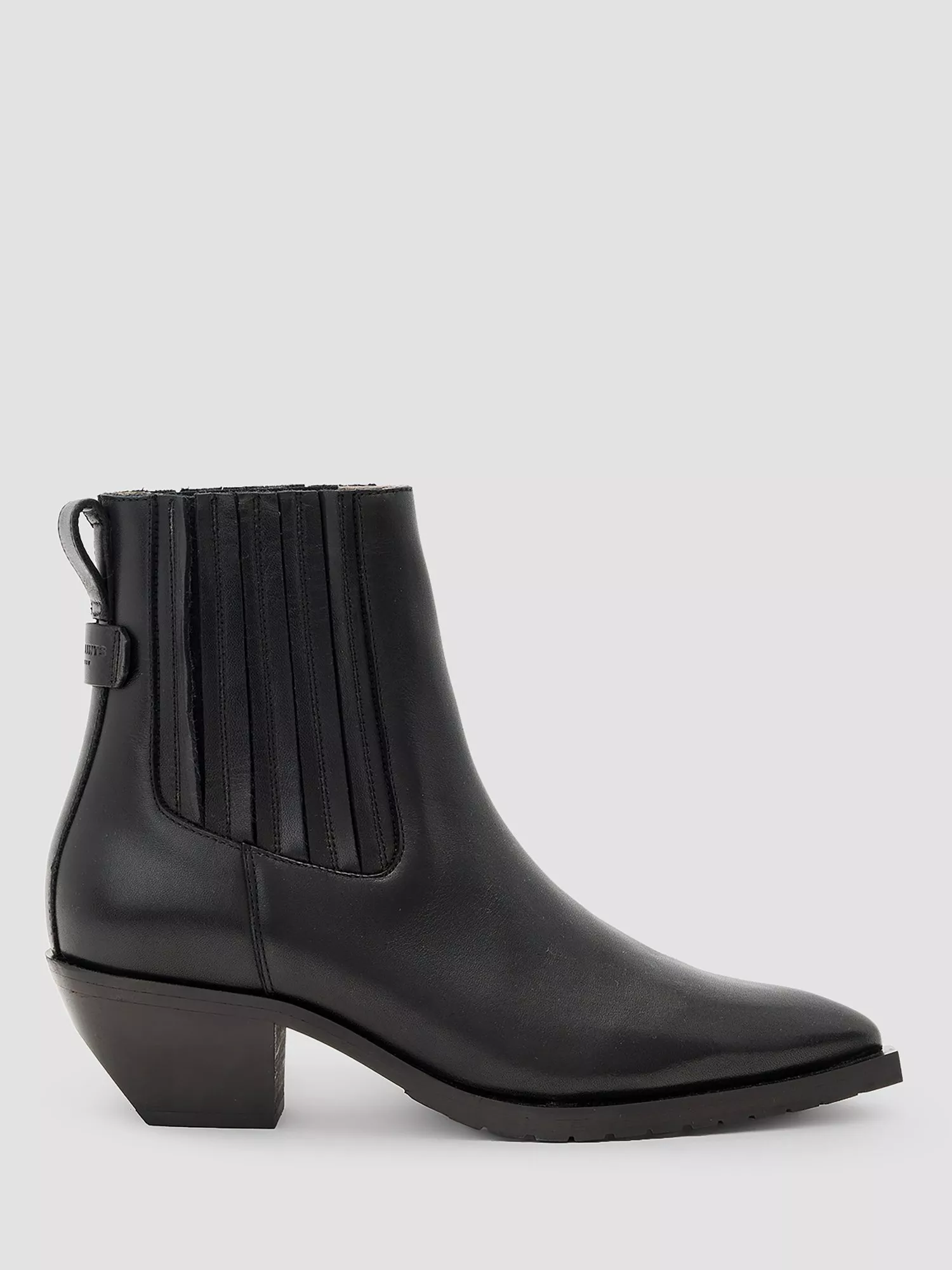 Leather Chelsea boots with a pointed closed toe and sturdy block heel. Easy slip-on design gives you confidence for any smart day occasion.
