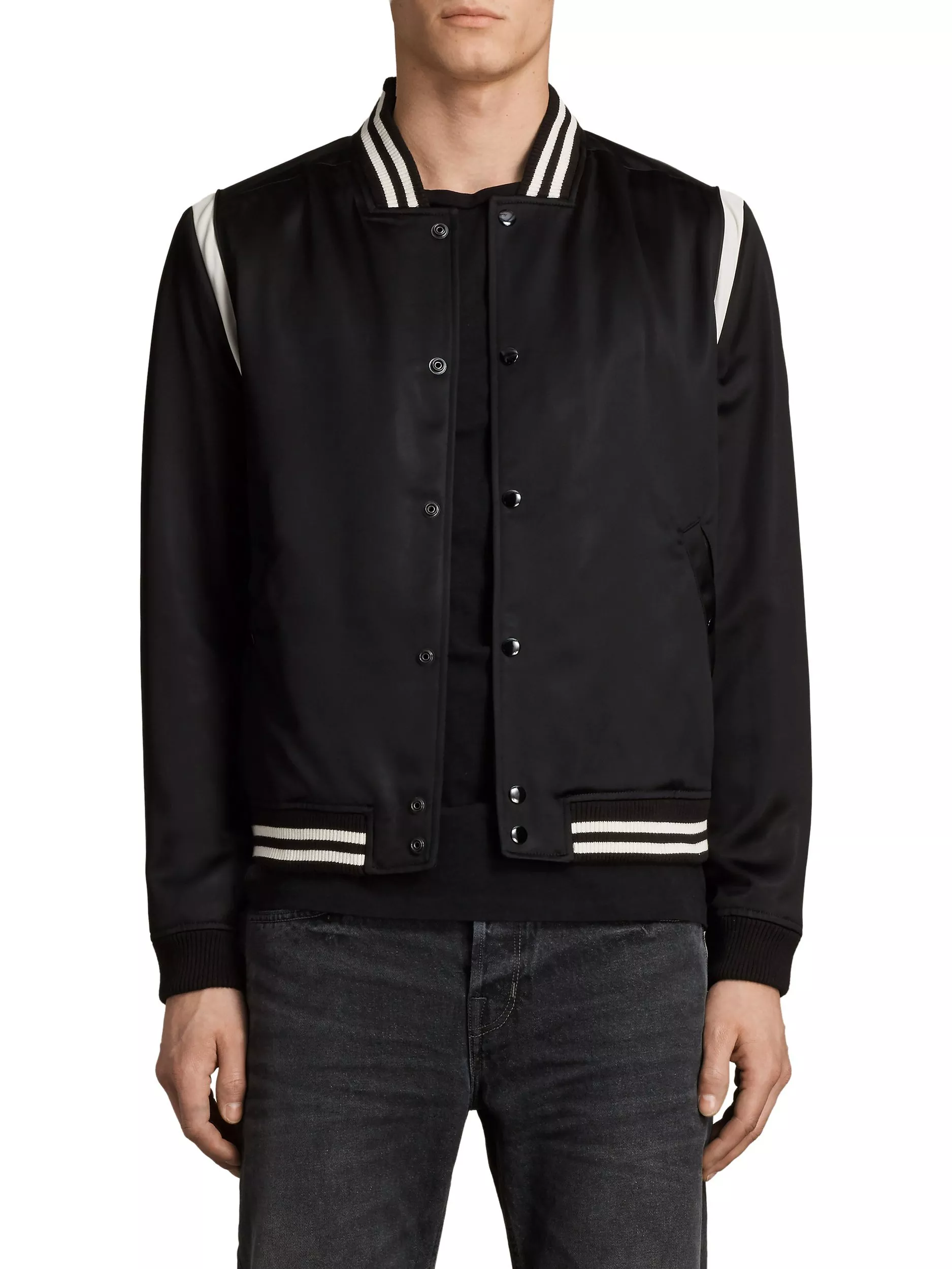 Inspired by American collegiate style, this Matsu Varsity Bomber Jacket from AllSaints will inject trendy, casual appeal to your looks.