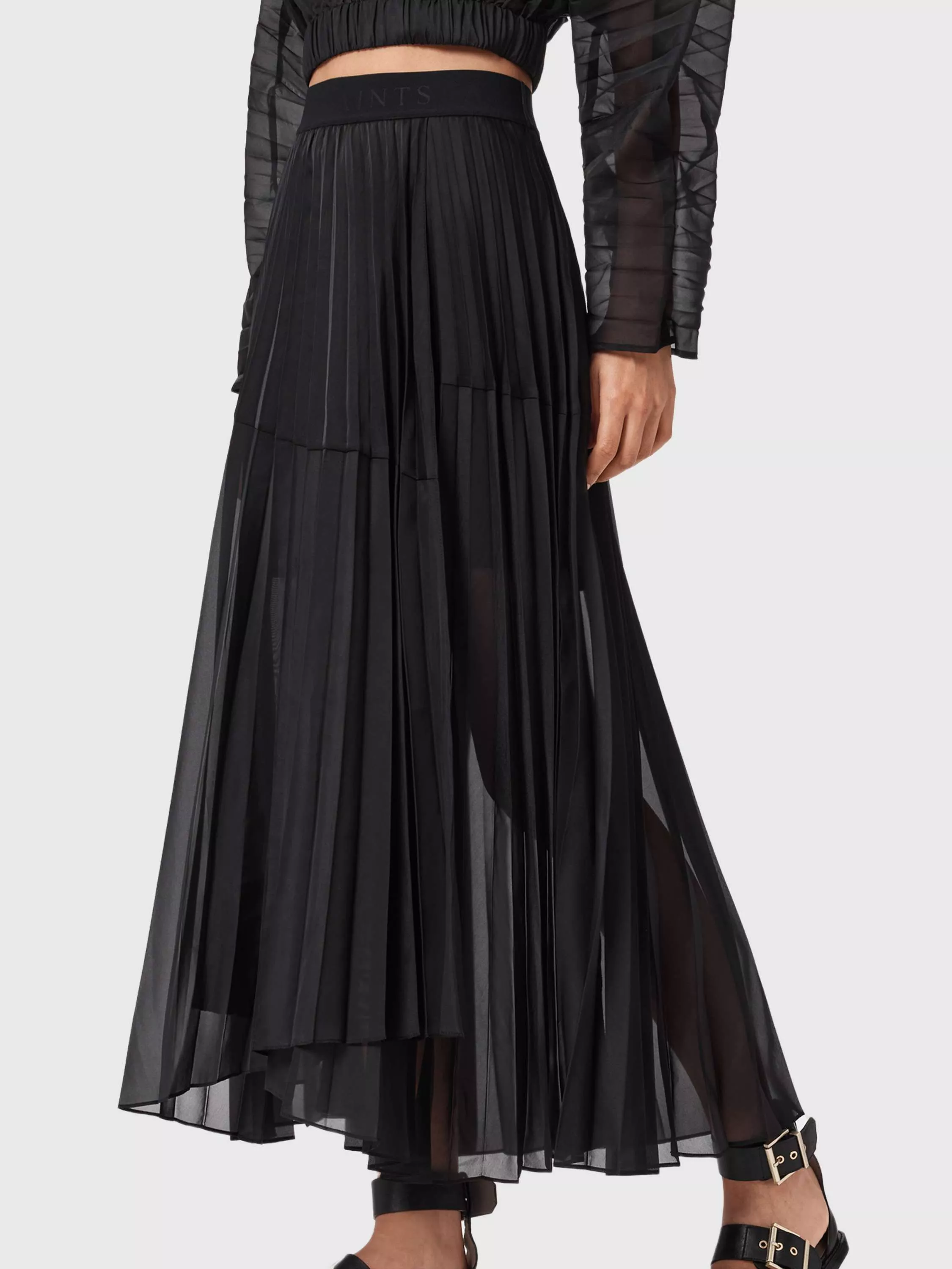 Crisp proportions in a midi cut - opt for this calf-grazing skirt from AllSaints. With pleats shaping the skirt’s fall, it's made with a mid rise and a zip fastening.
