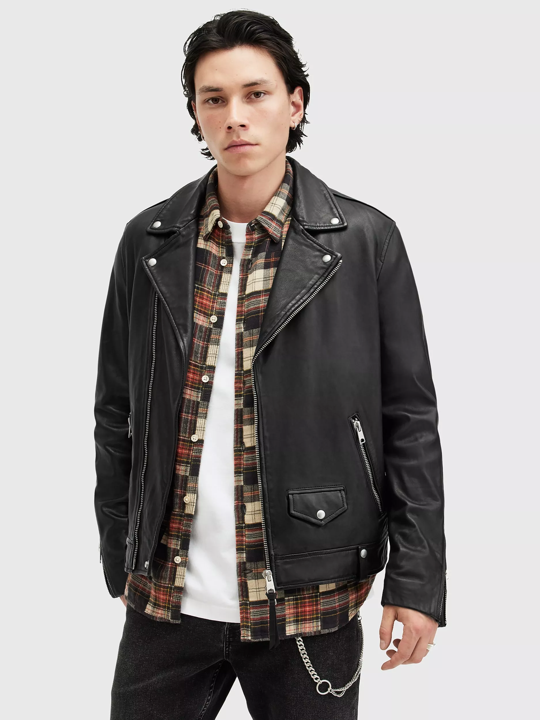 Motorcyclist or not, everyone needs a biker jacket in their wardrobe. This is AllSaints' Milo, an iconic style made from butter-soft lamb leather with silver metal hardware and a traditional asymmetric zip fastening completing the classic aesthetic. And best of all, it goes with everything, day or night.