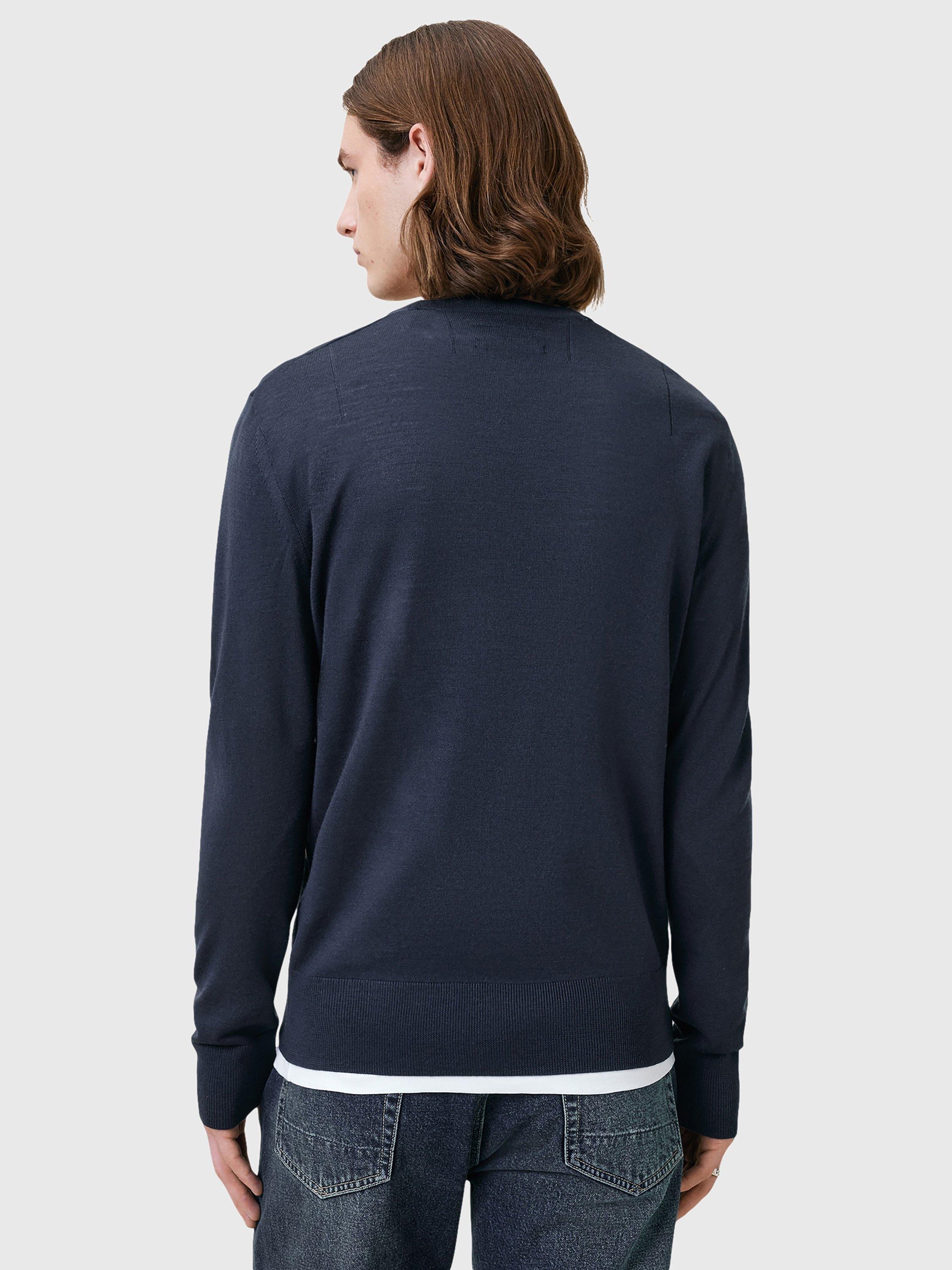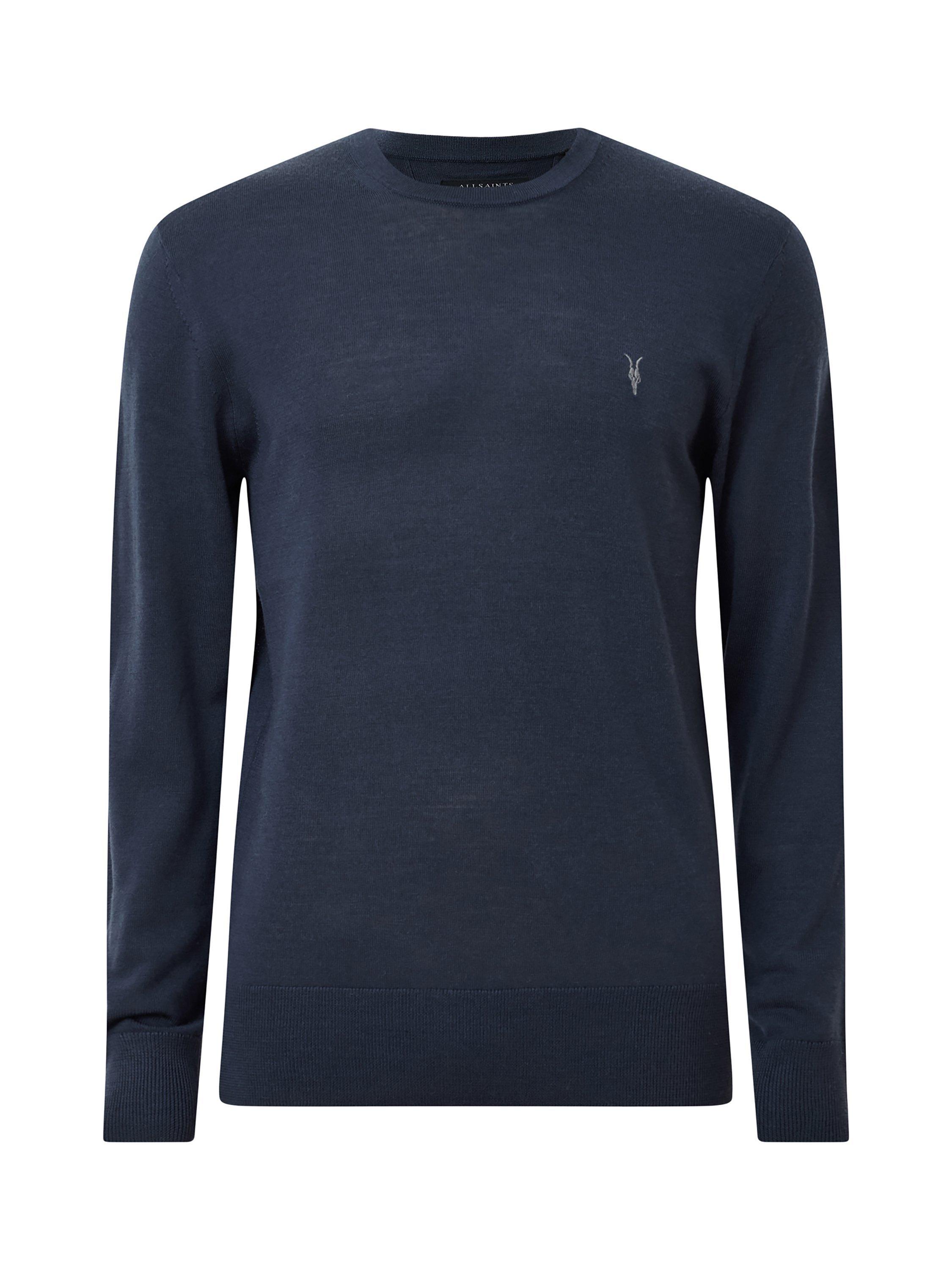 AllSaintsMode Merino Wool Crew Neck Jumper, Navy Blue