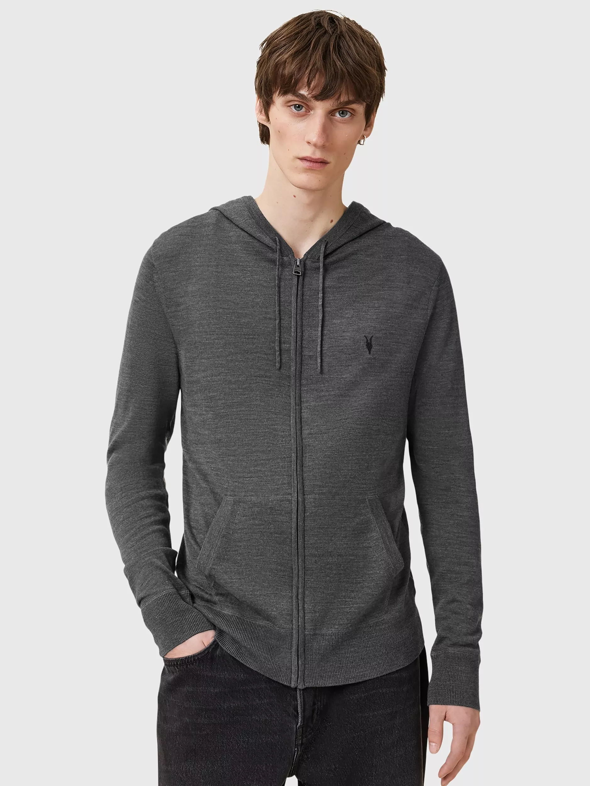 A firm foundation for cool-weather wardrobes, this zipped hoodie from AllSaints indulges in the comforting warmth of merino wool.