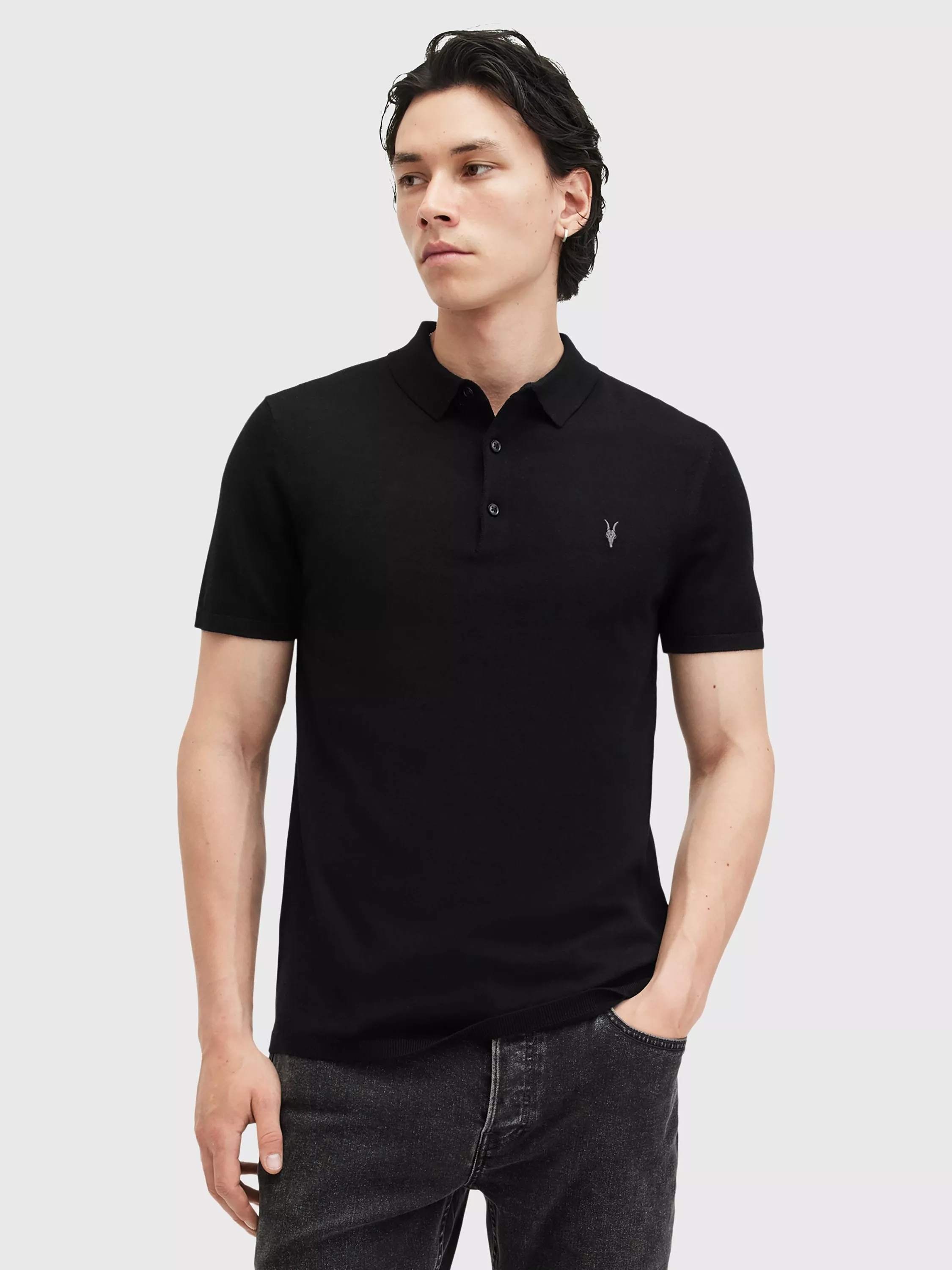 AllSaintsMode Ramskull Merino Wool Polo Shirt