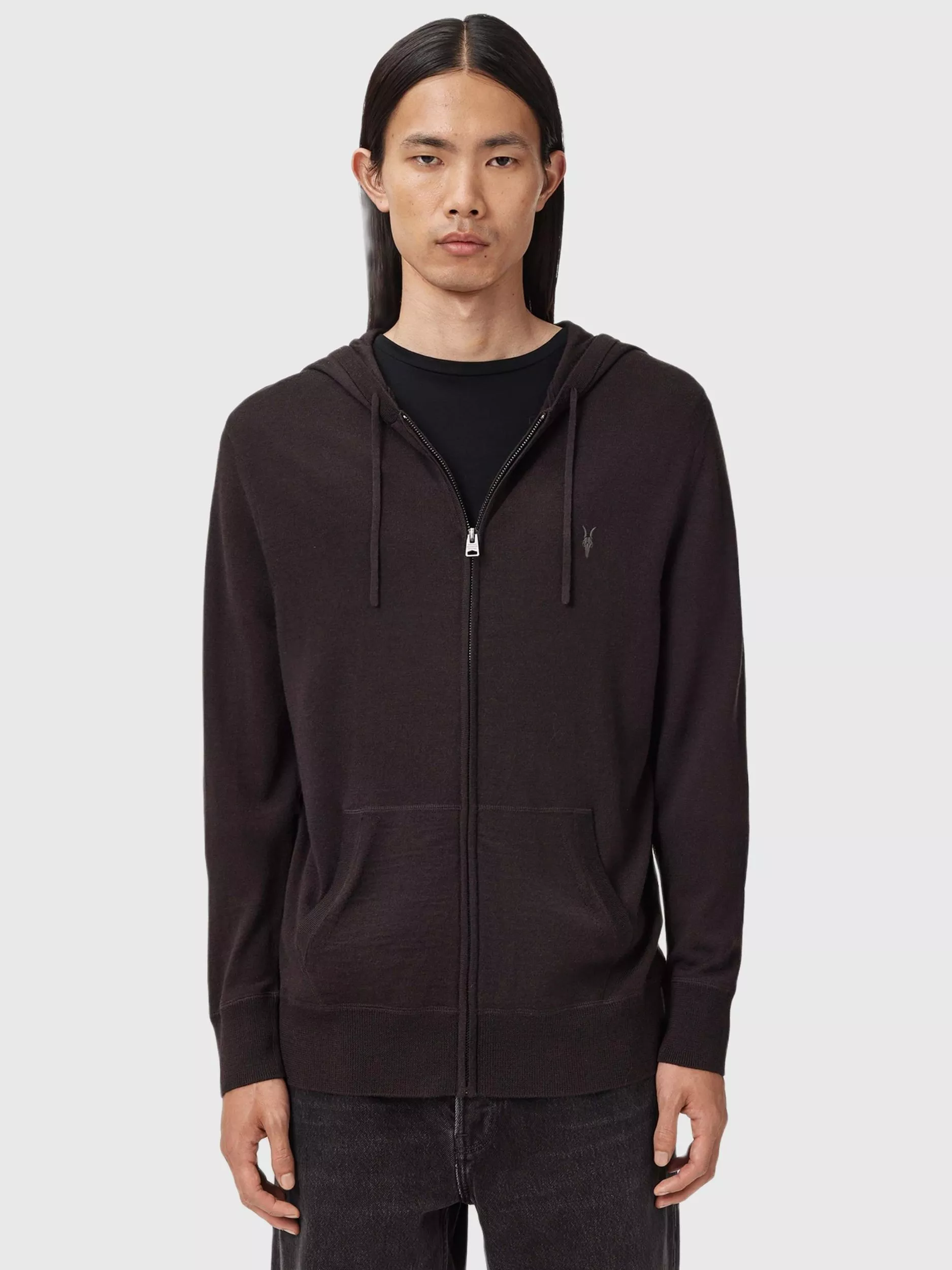A cosy hooded jumper from AllSaints with a subtle logo and crafted from warming wool that's sure to help you brave the biting breeze.