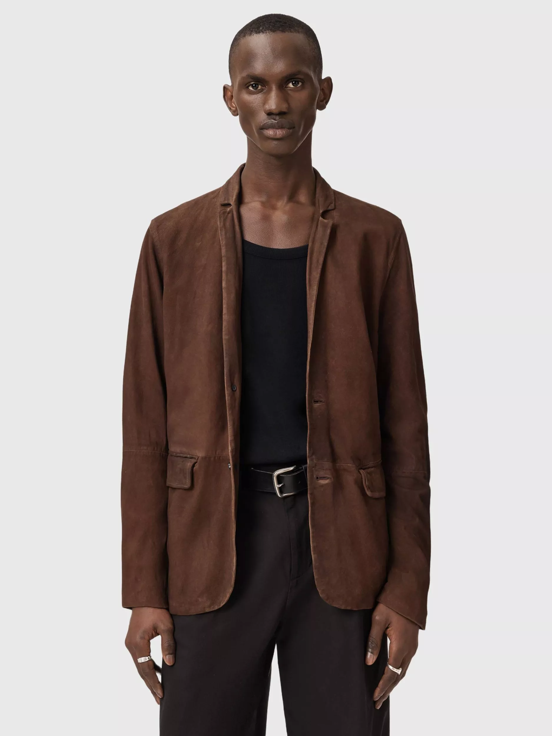 Made from waxed suede that's been washed for a vintage look, this blazer from AllSaints is a modern take on a traditional silhouette with a slim collar and lapels.