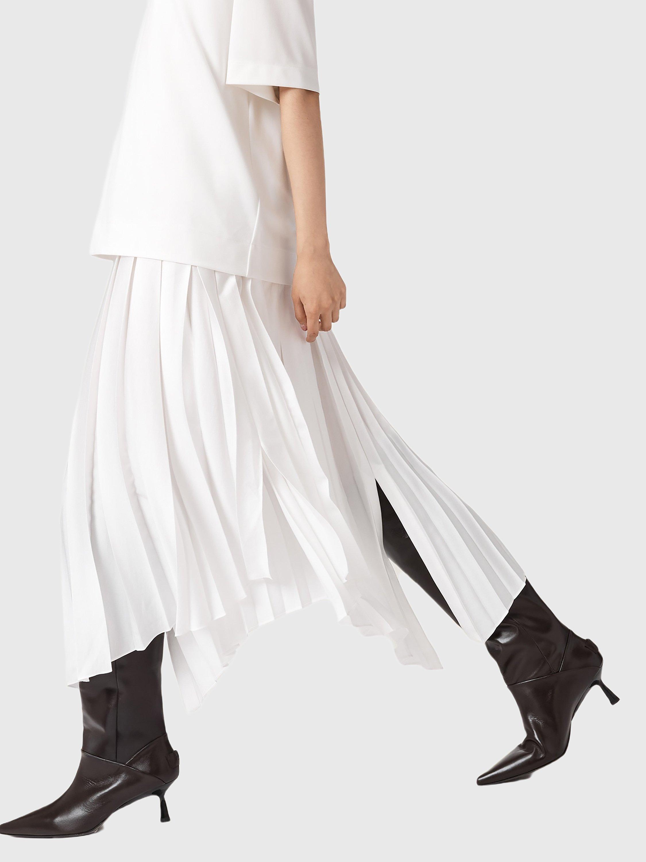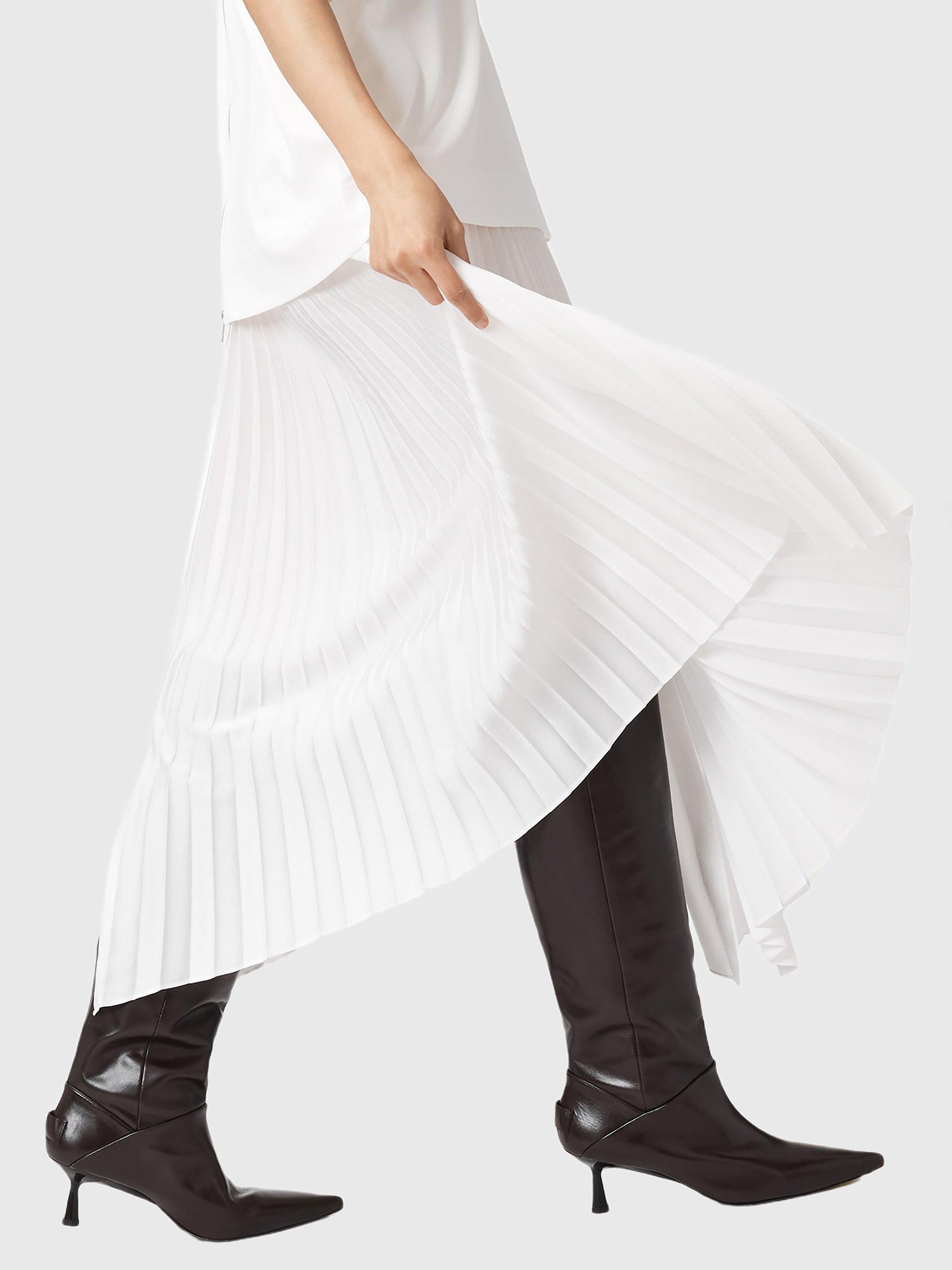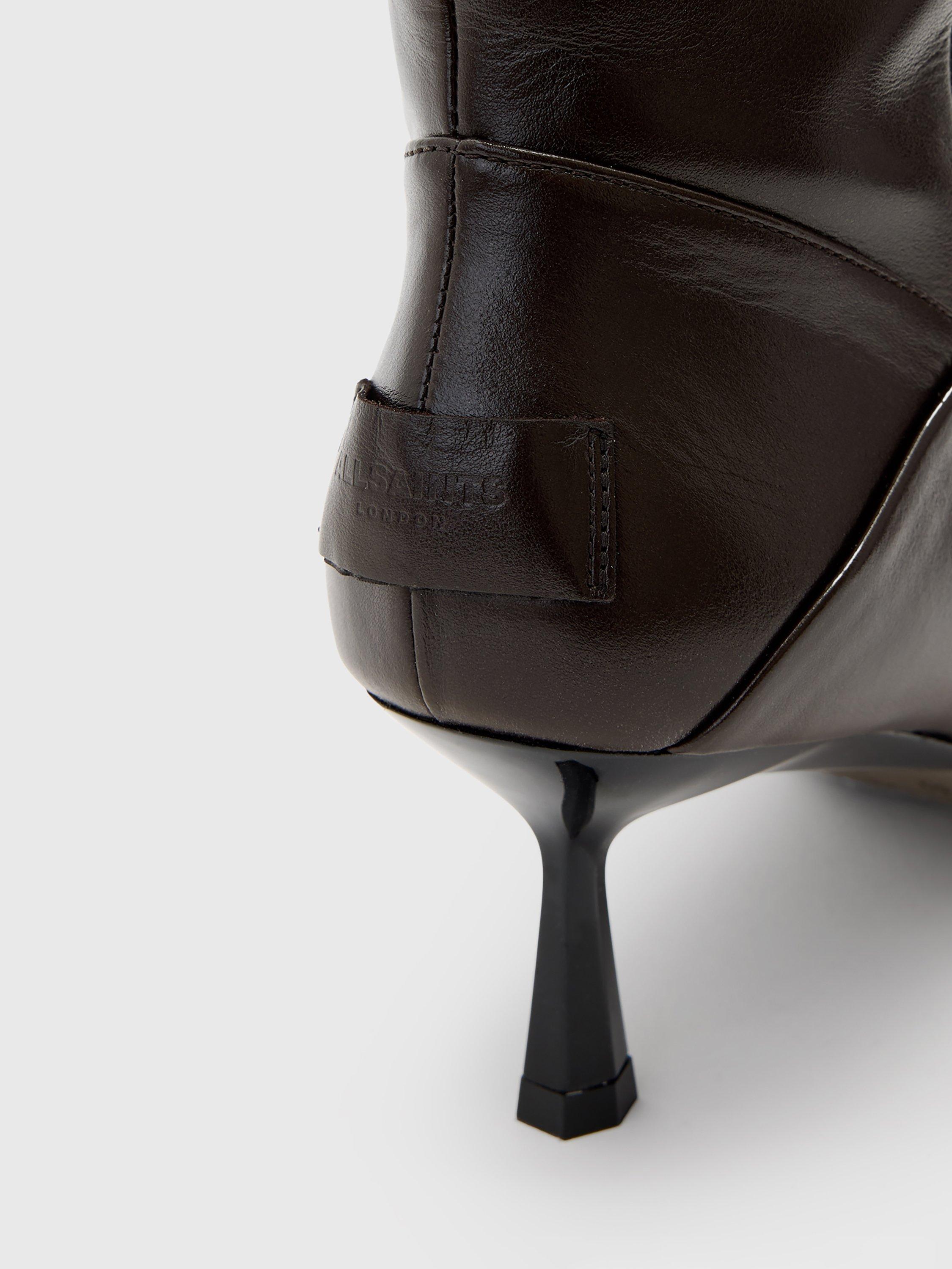 A pair of versatile boots from AllSaints. Offering supportive leather comfort and effortless slip-on wear, the pointed closed toe and mid kitten heel blend striking style with practical everyday use. You can wear this heeled pair two ways: knee high (perfect for dressing up with a mini dress) or folded over for a slouchy, but sophisticated styling option. Two in one – these are the boots of the season.