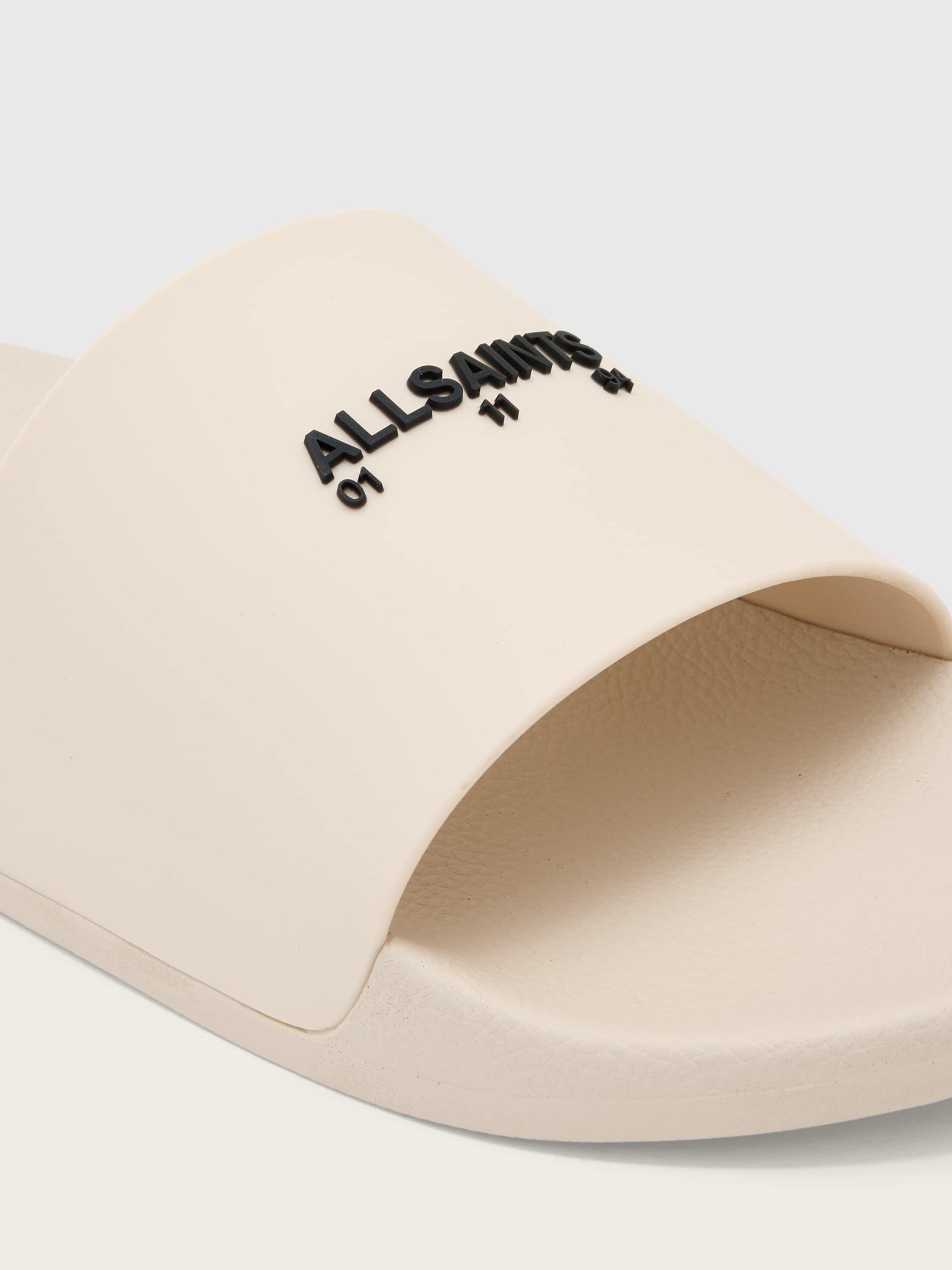 Sliders by AllSaints, crafted for quick transitions from indoors to outdoors, feature a sleek slip-on design and durable rubber construction. An open toe keeps things cool on summer days, inviting effortless comfort to your everyday routine.