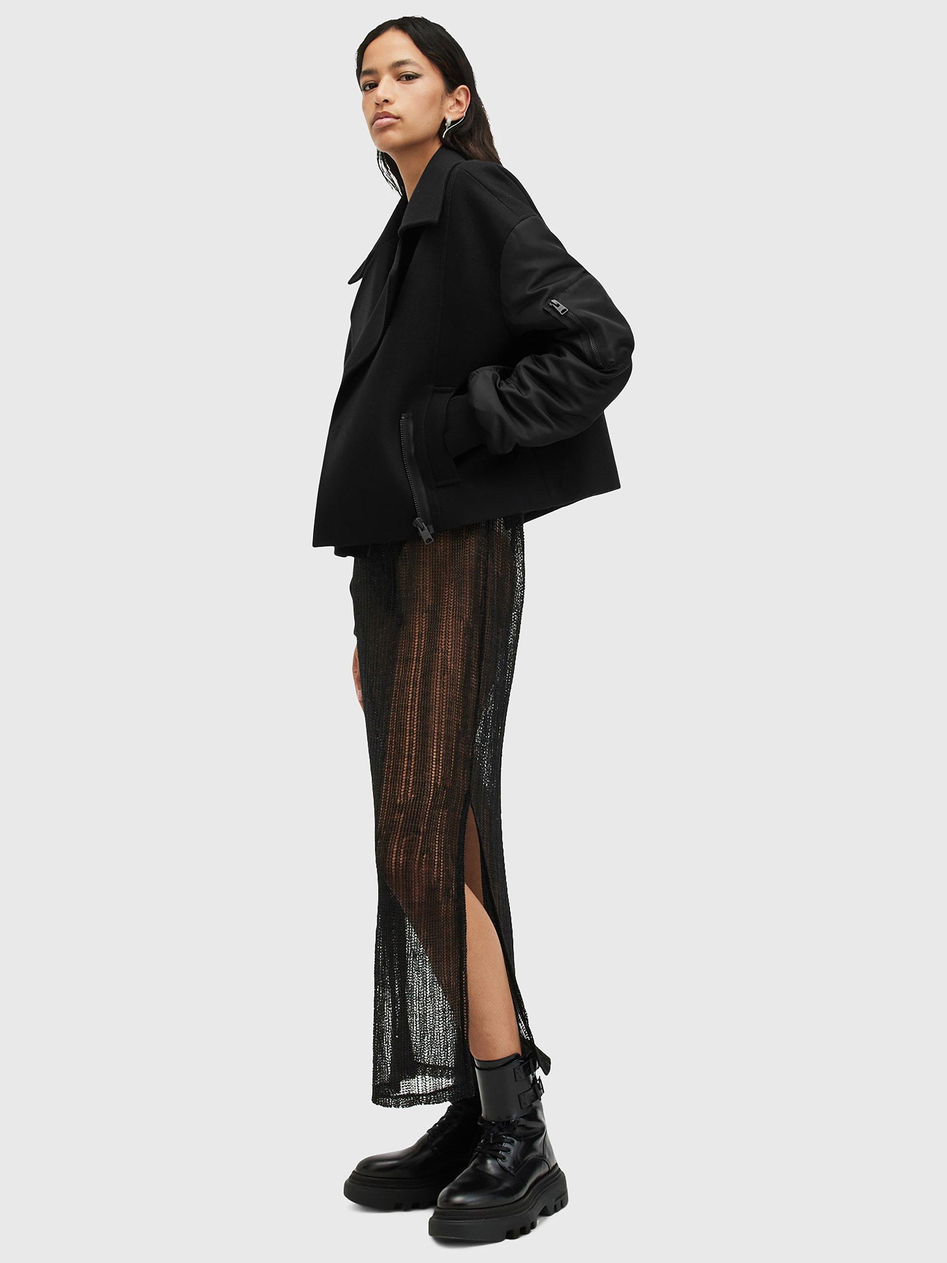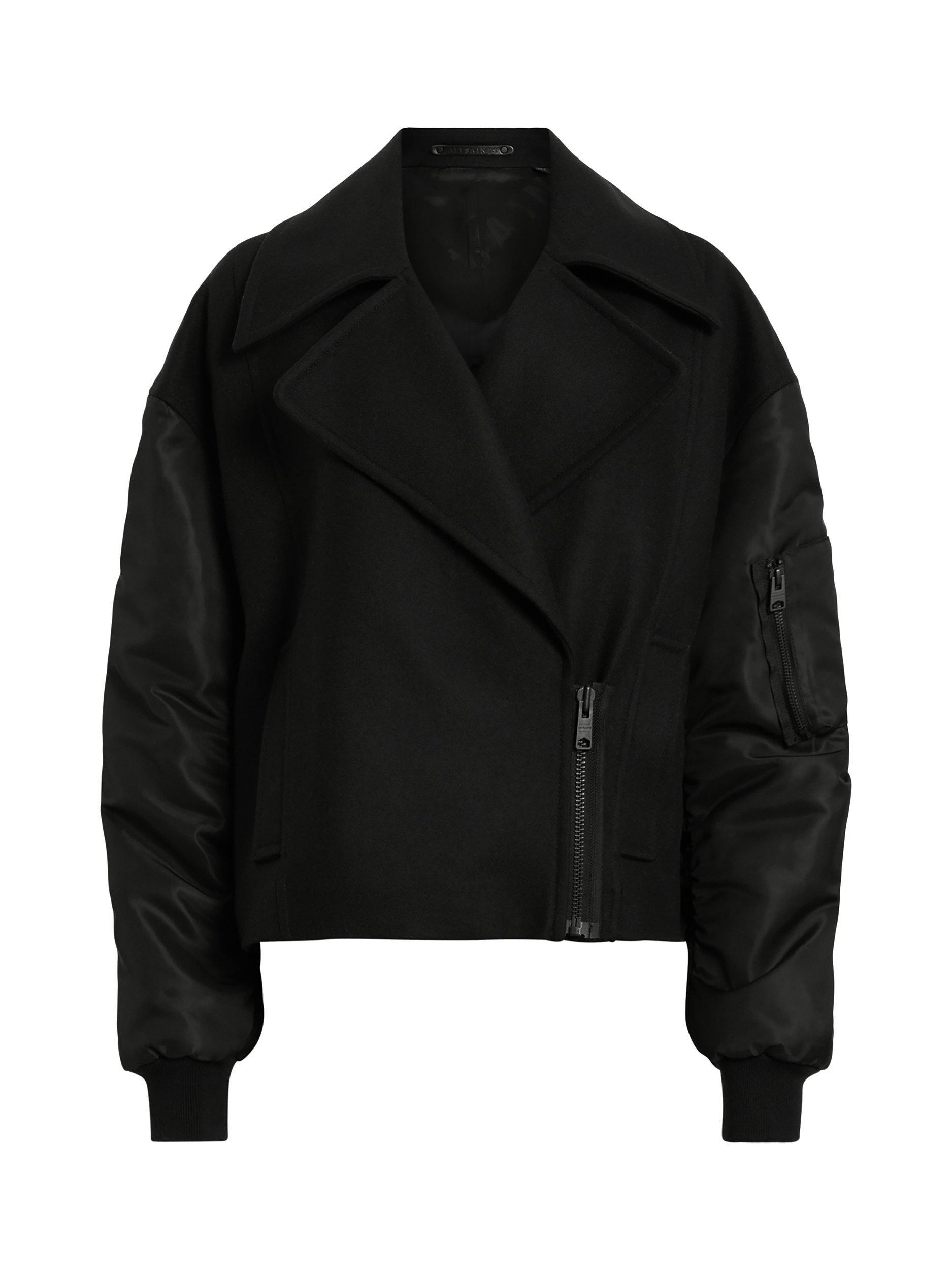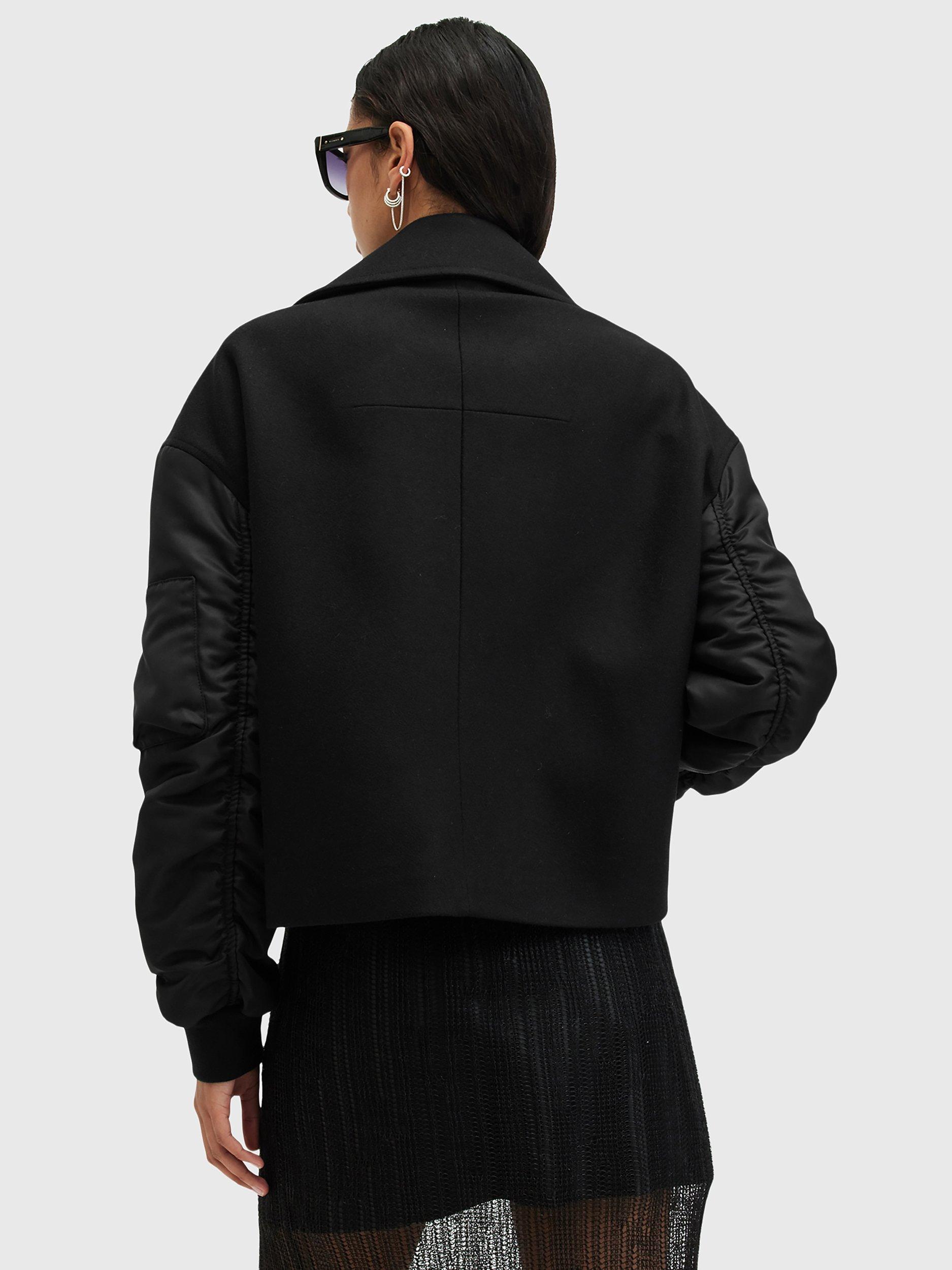 It wouldn't be an AllSaints collection without a hybrid jacket. This cropped but oversized style features a classic wool blended body with bomber jacket sleeves, keeping you warm but stylish during chillier days.