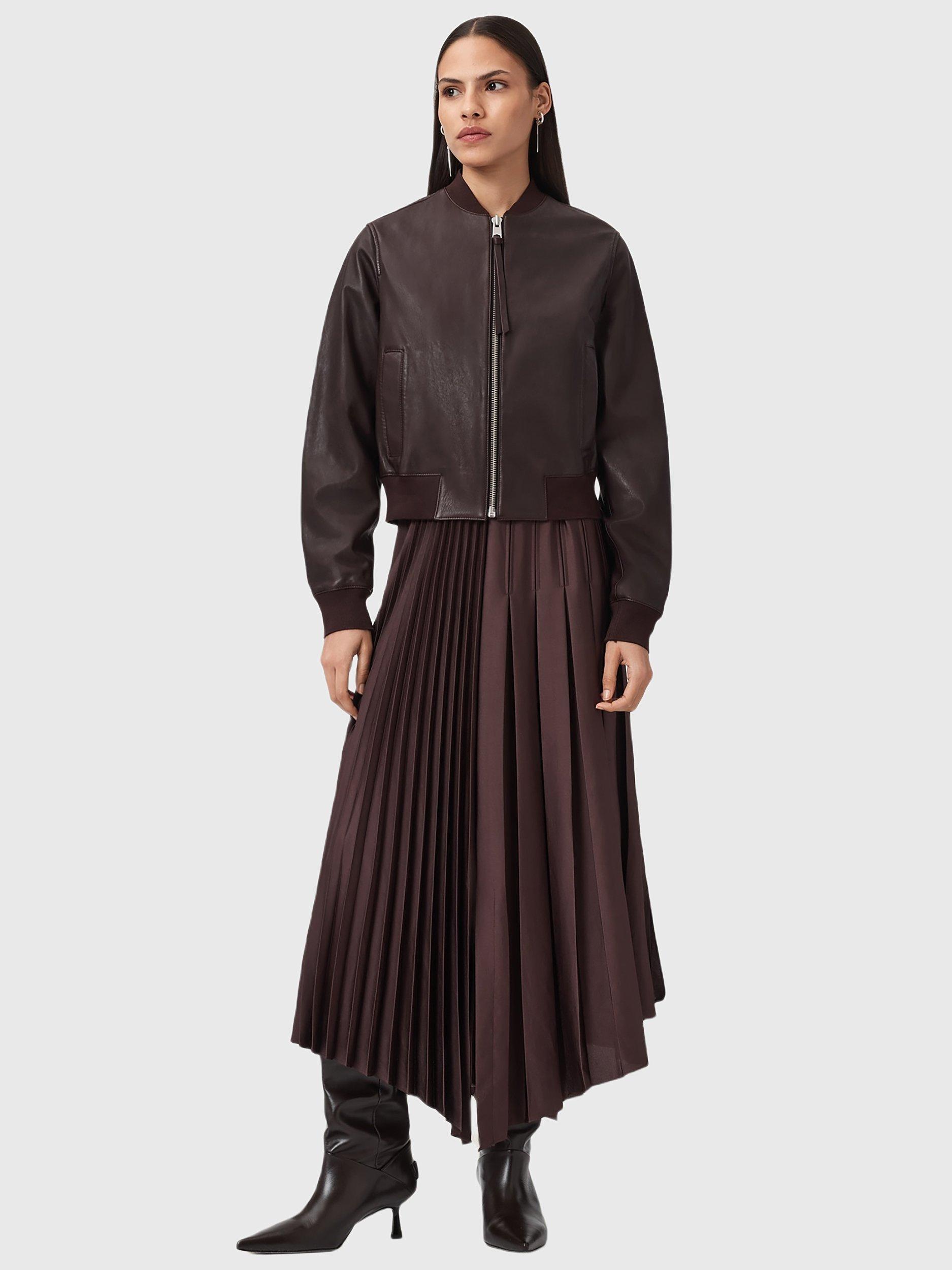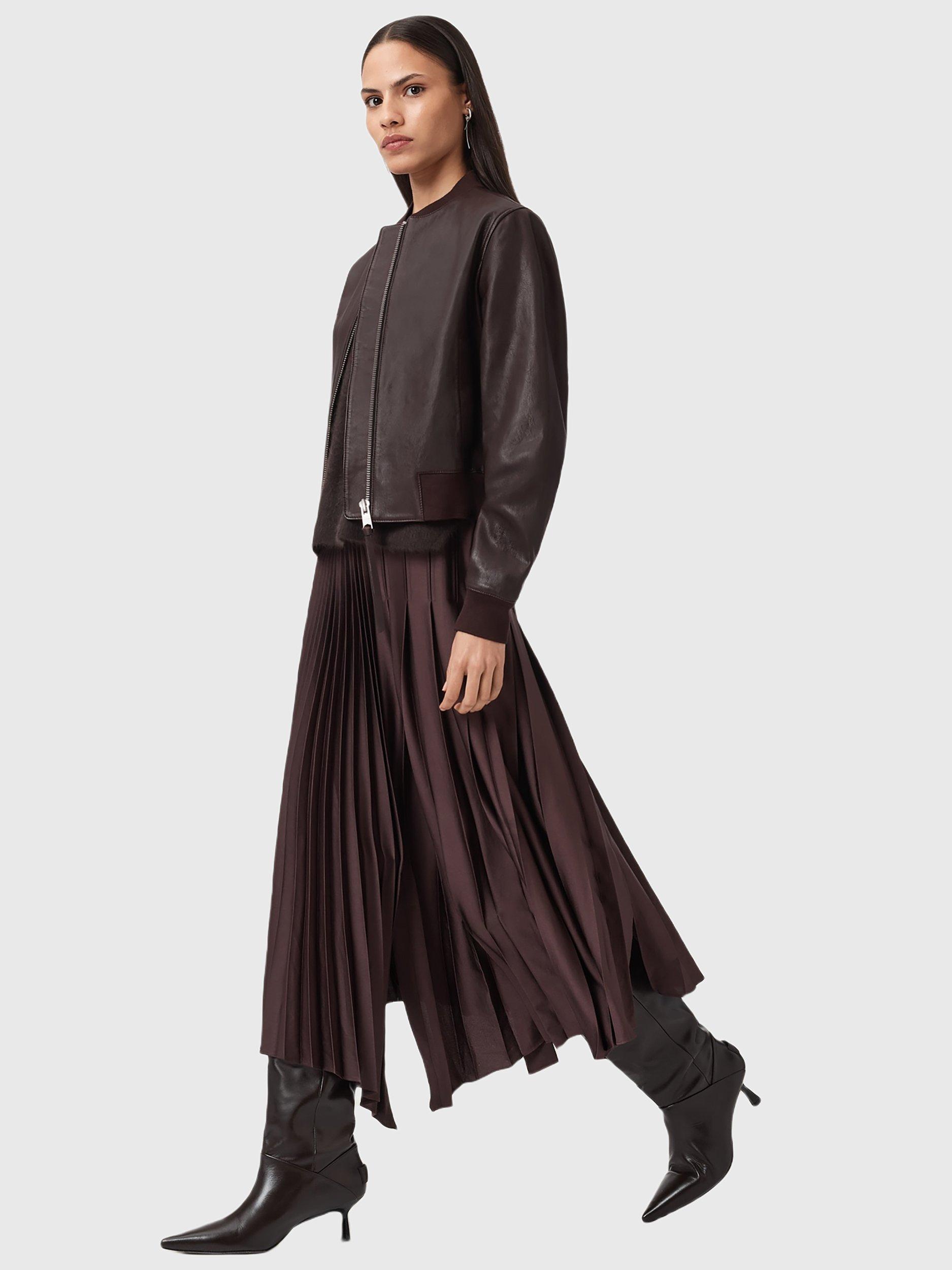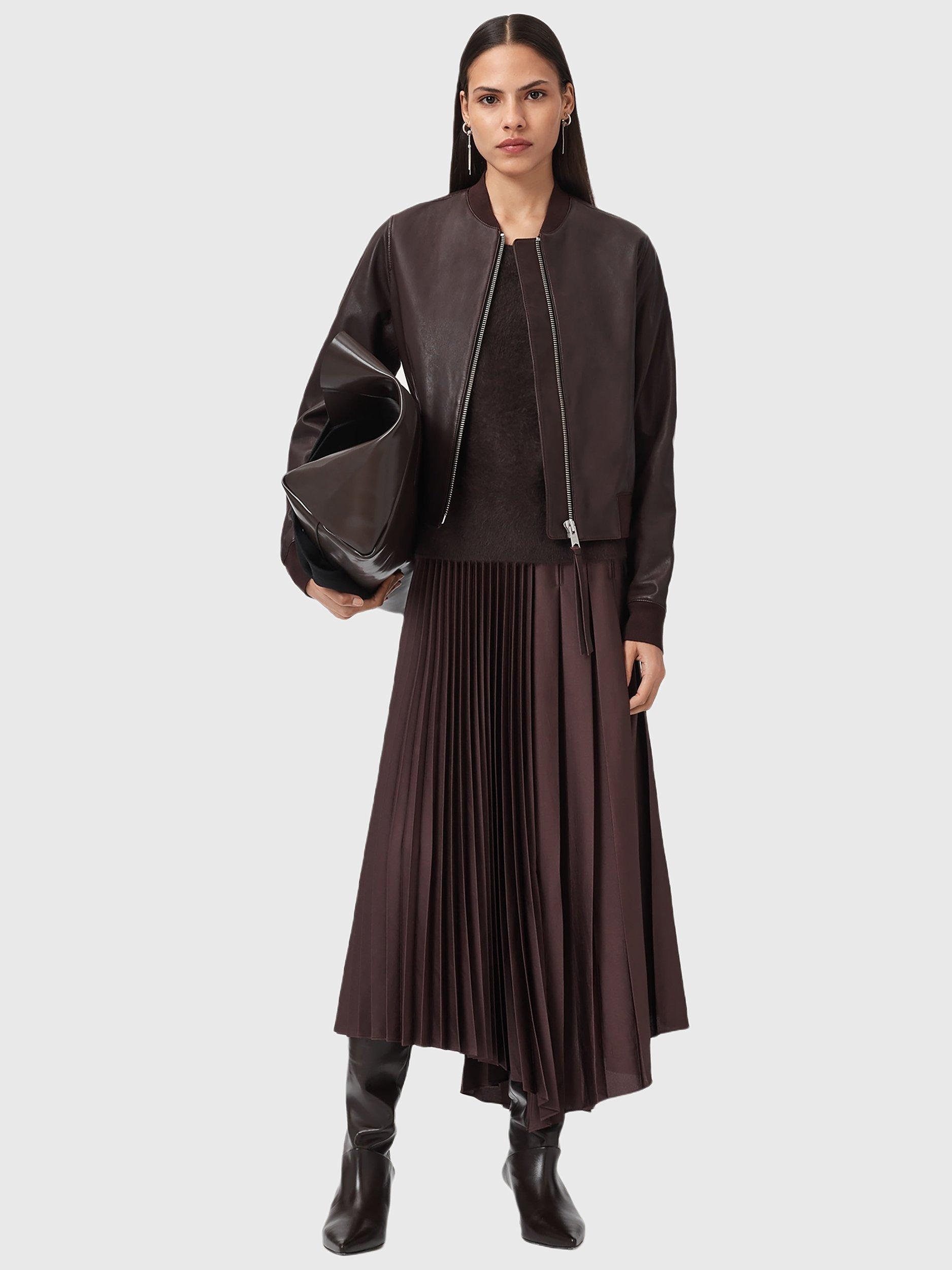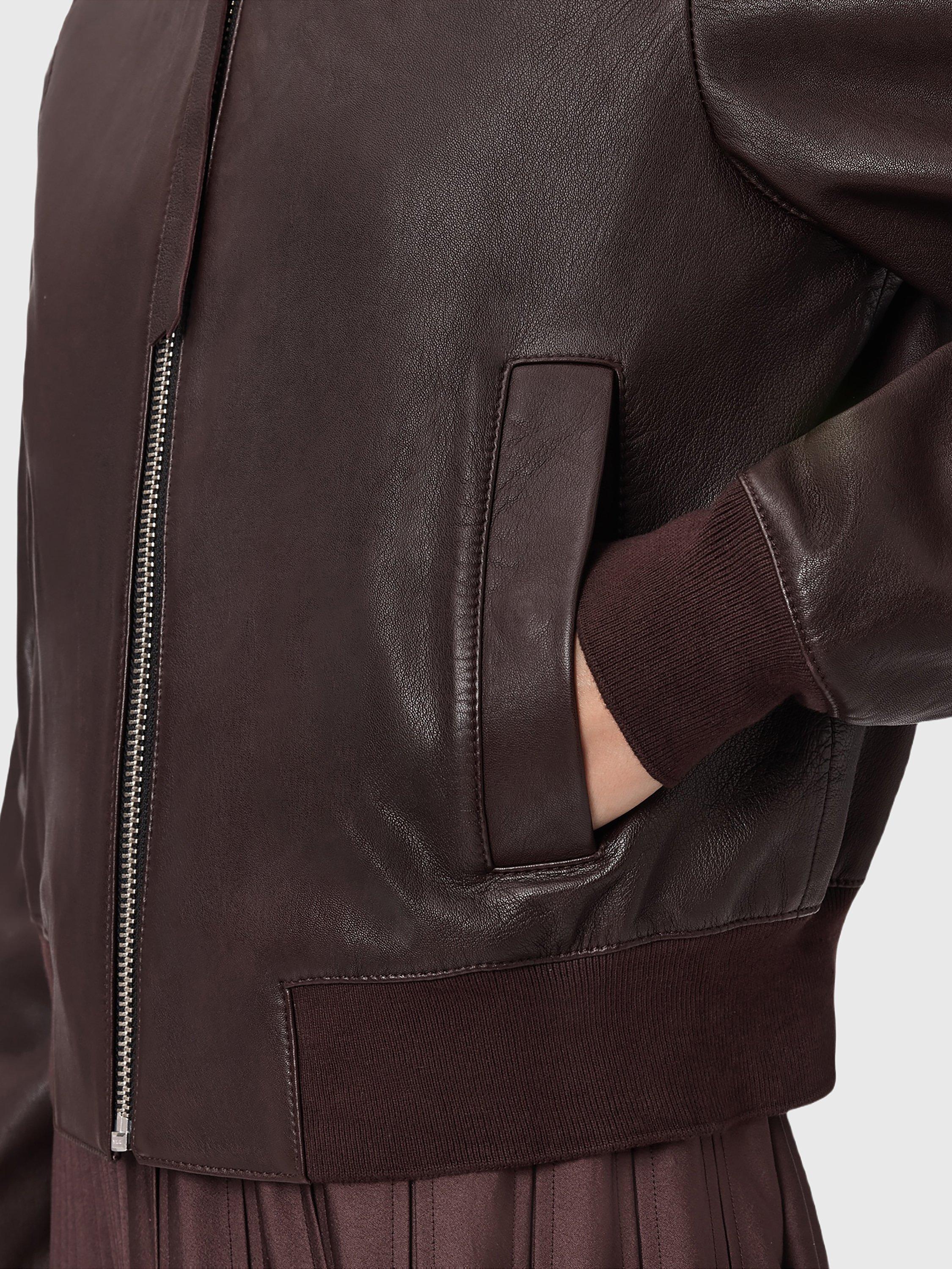 This leather bomber jacket gives a sharp edge and everyday practicality, combining classic style with zip-fastening and ribbed details for comfort. Designed for effortless wear, it suits your rhythm whatever the day brings.