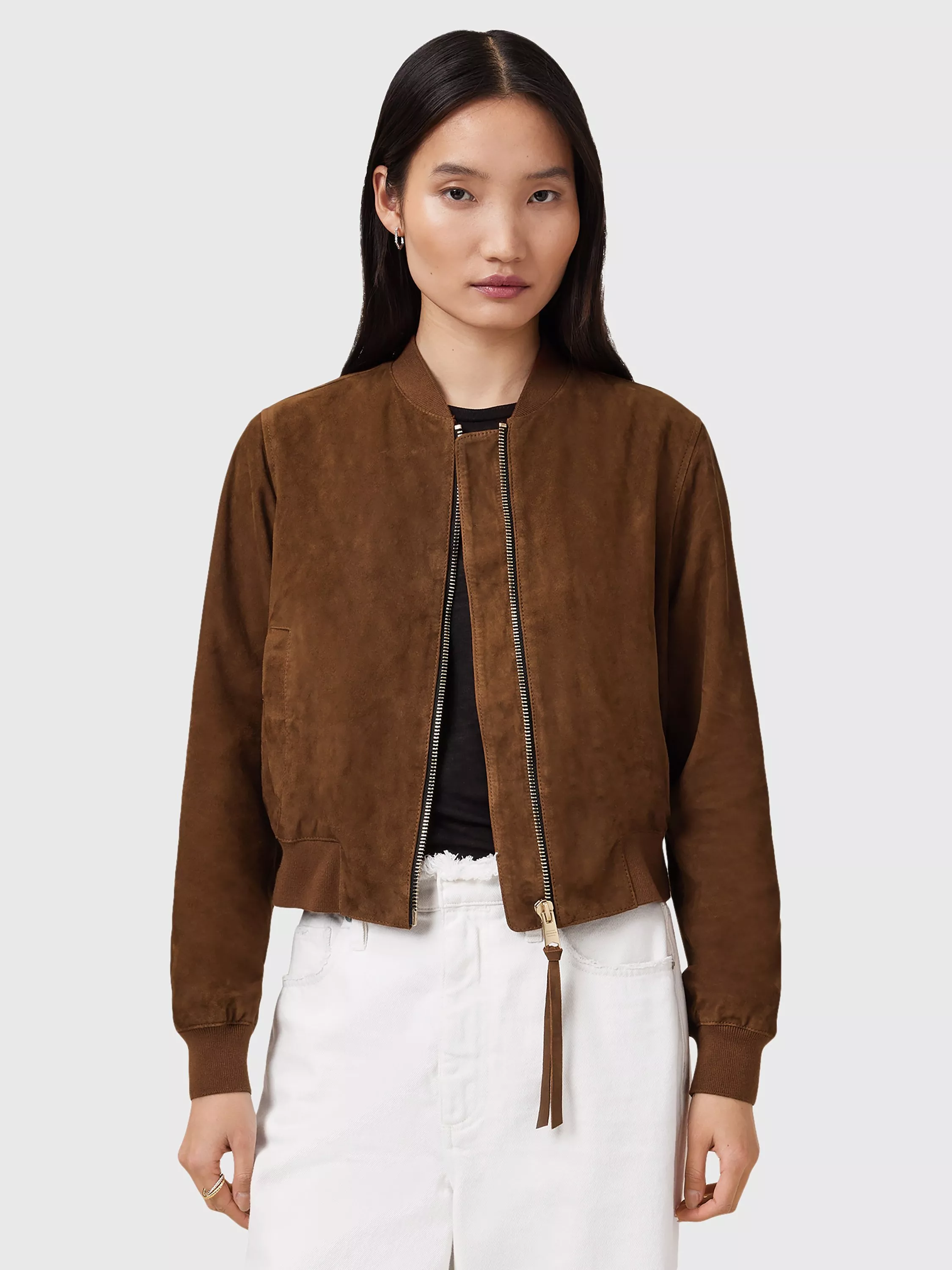With all the traditional tropes you'd expect from a bomber, this jacket from AllSaints is framed with a neat crew neck, a relaxed fit and has a premium feel in supple suede.