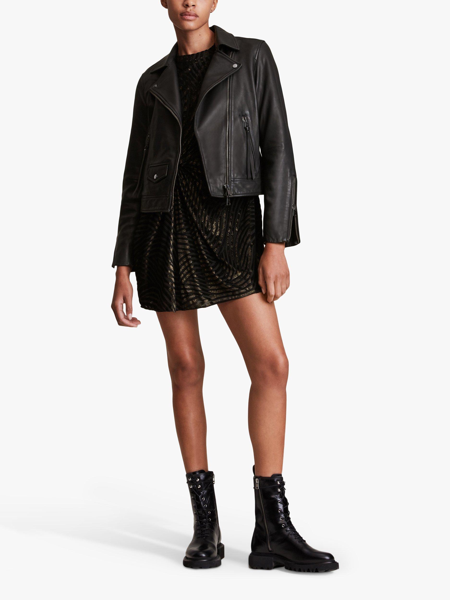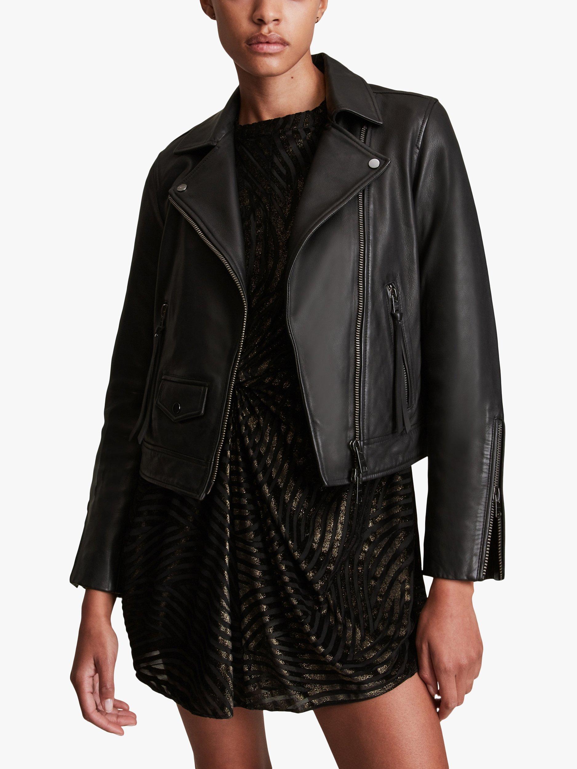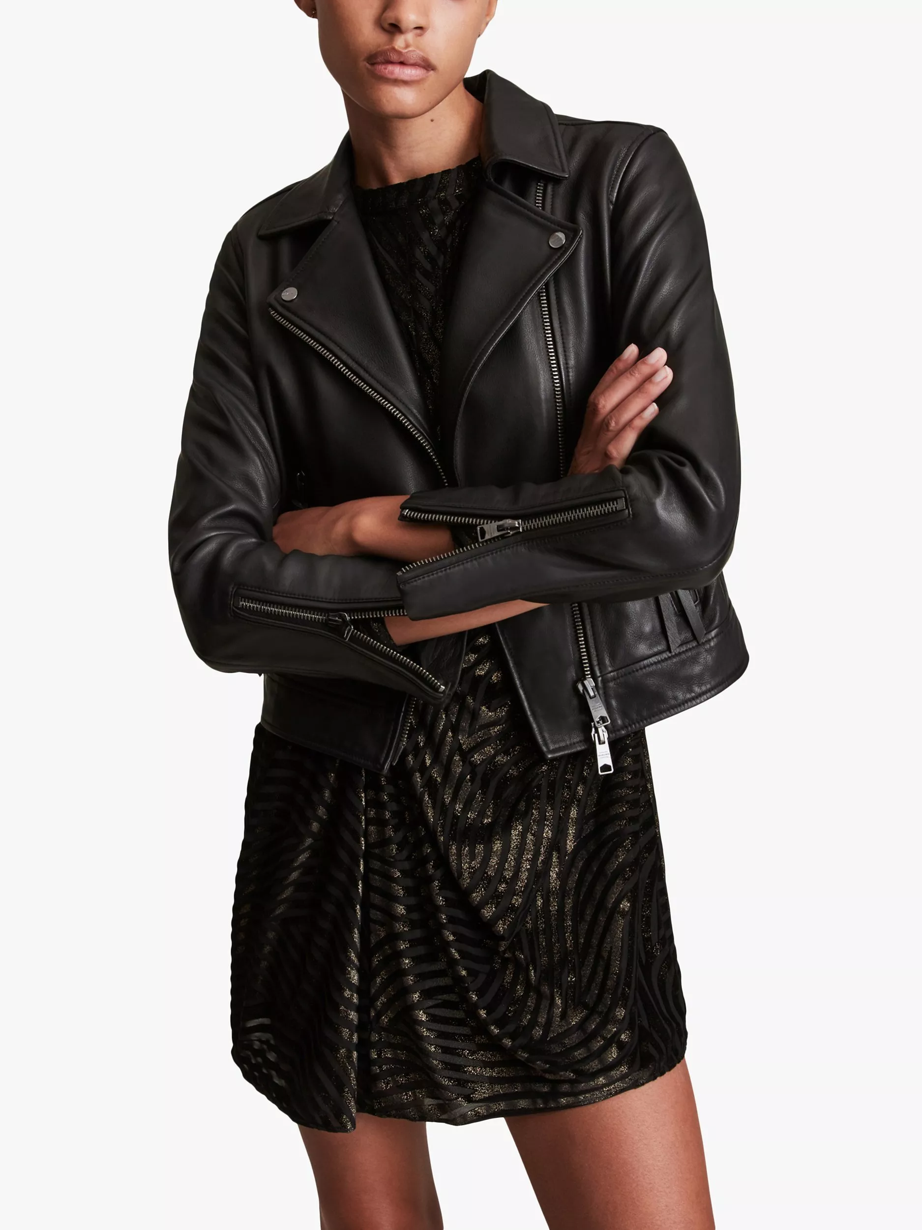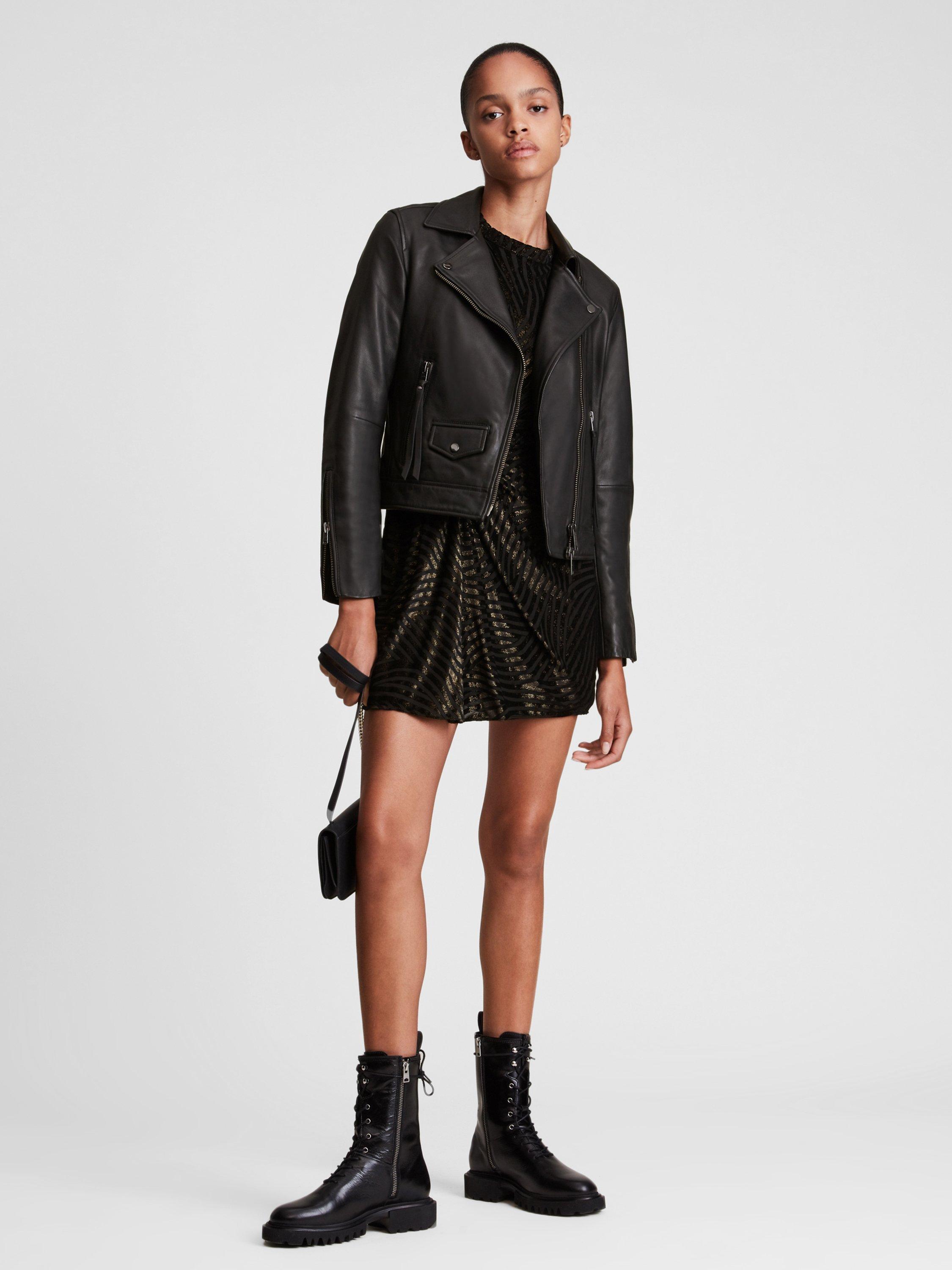 Completing your look with an edgy finish, this slim fit biker jacket by AllSaints falls to just below the waist for a contemporary profile.
