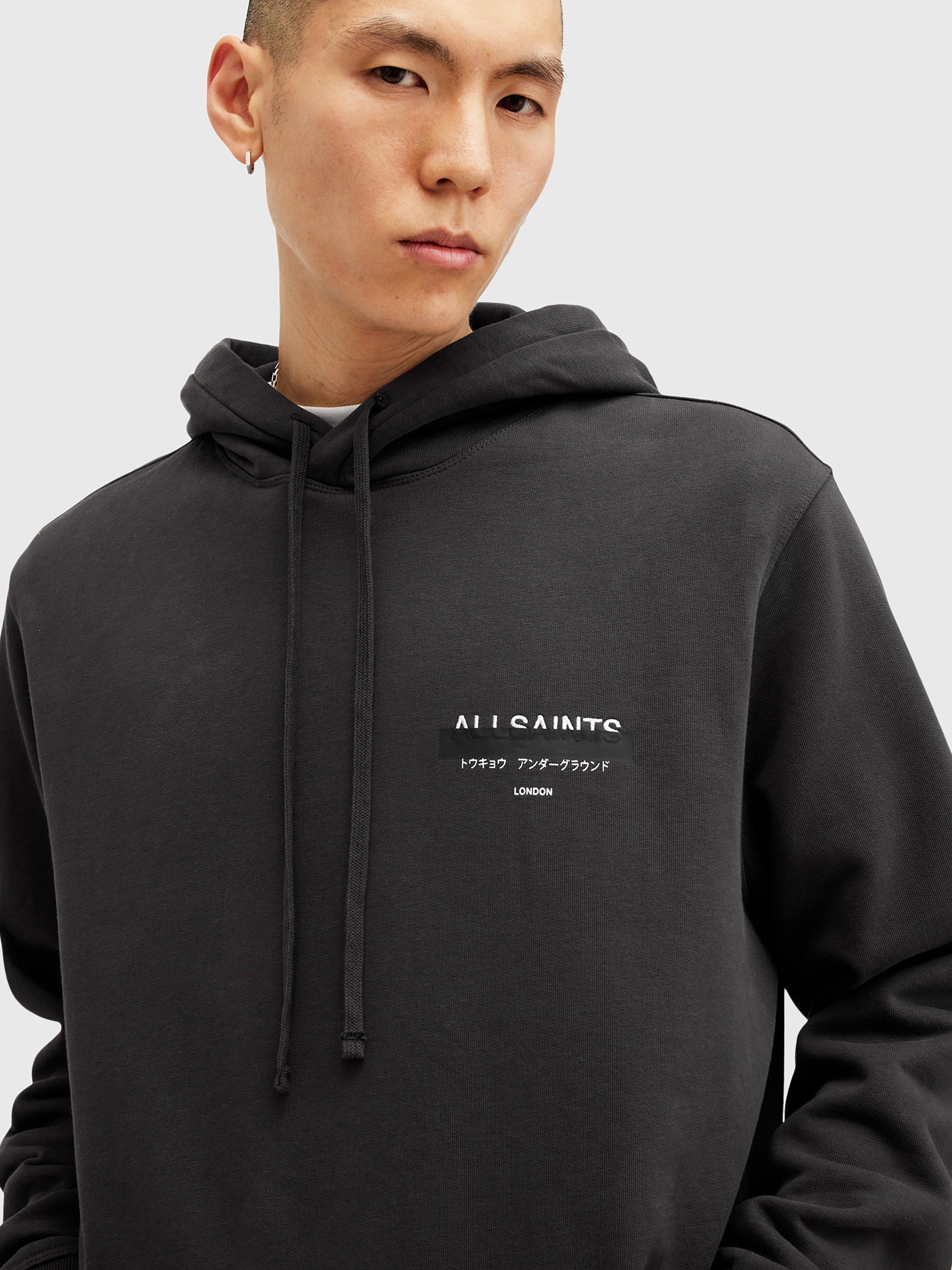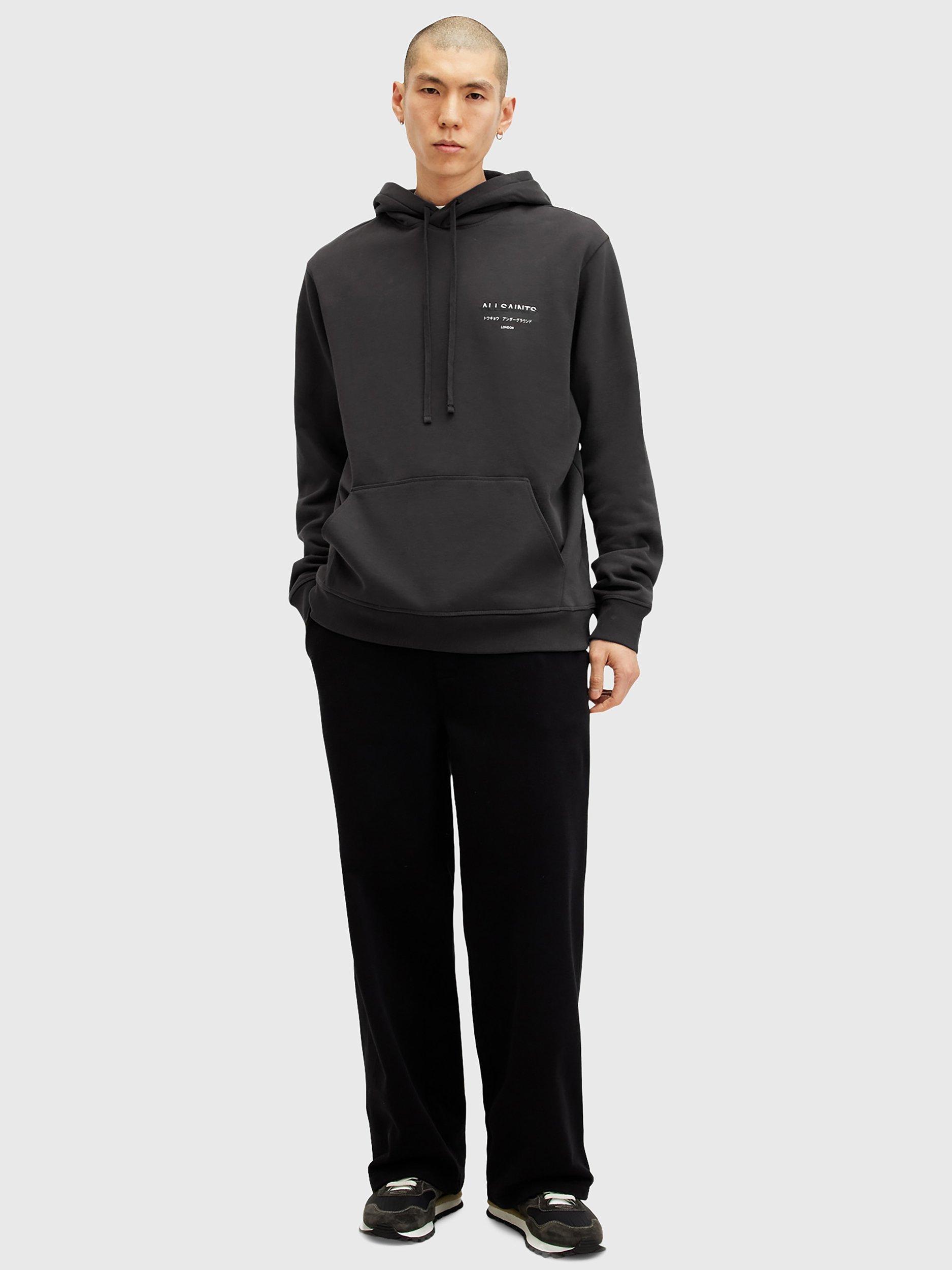 Made from organic cotton, this relaxed fit hoodie from AllSaints has an adjustable drawstring neckline and full-length sleeves.