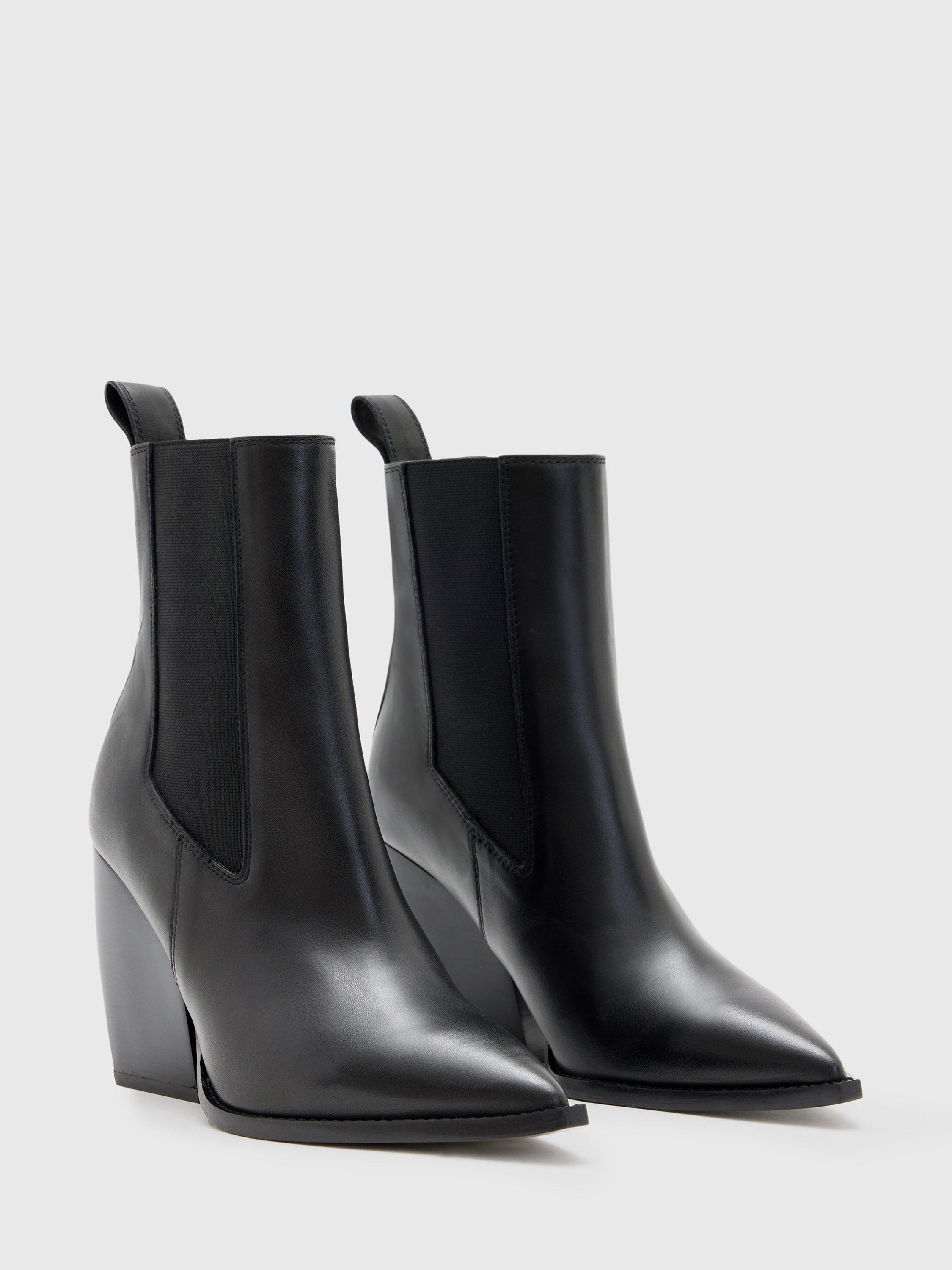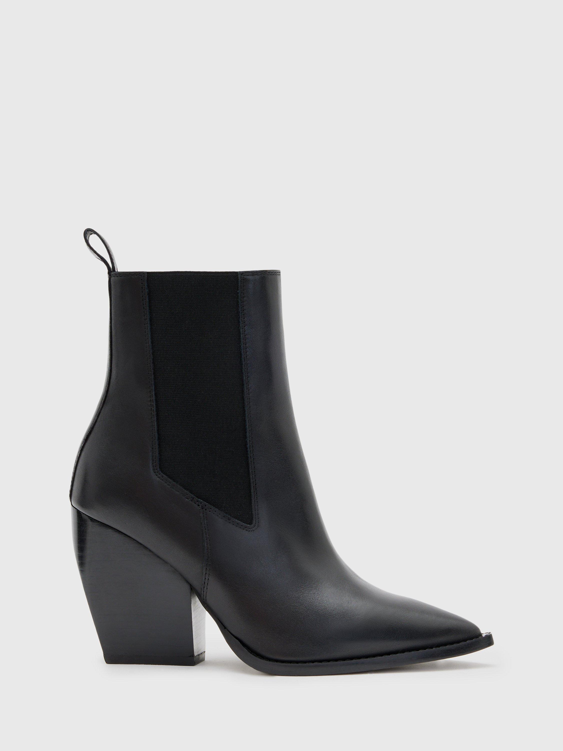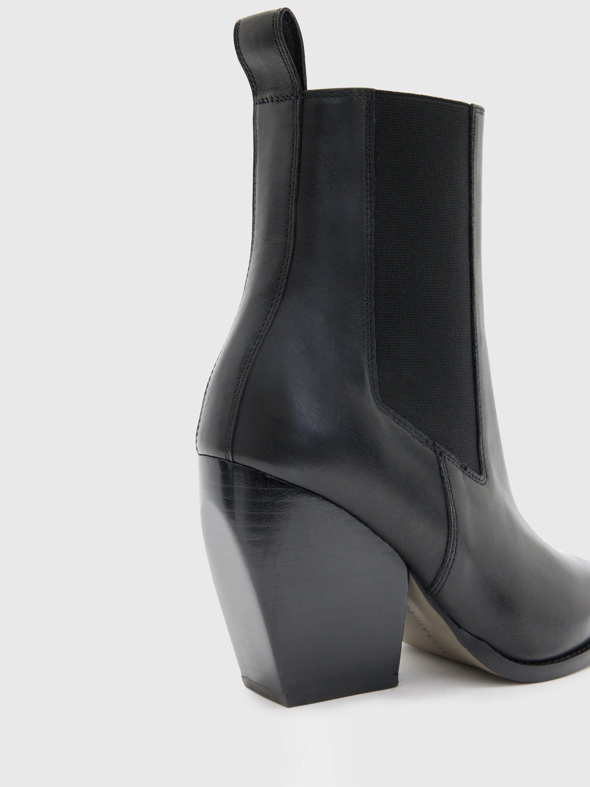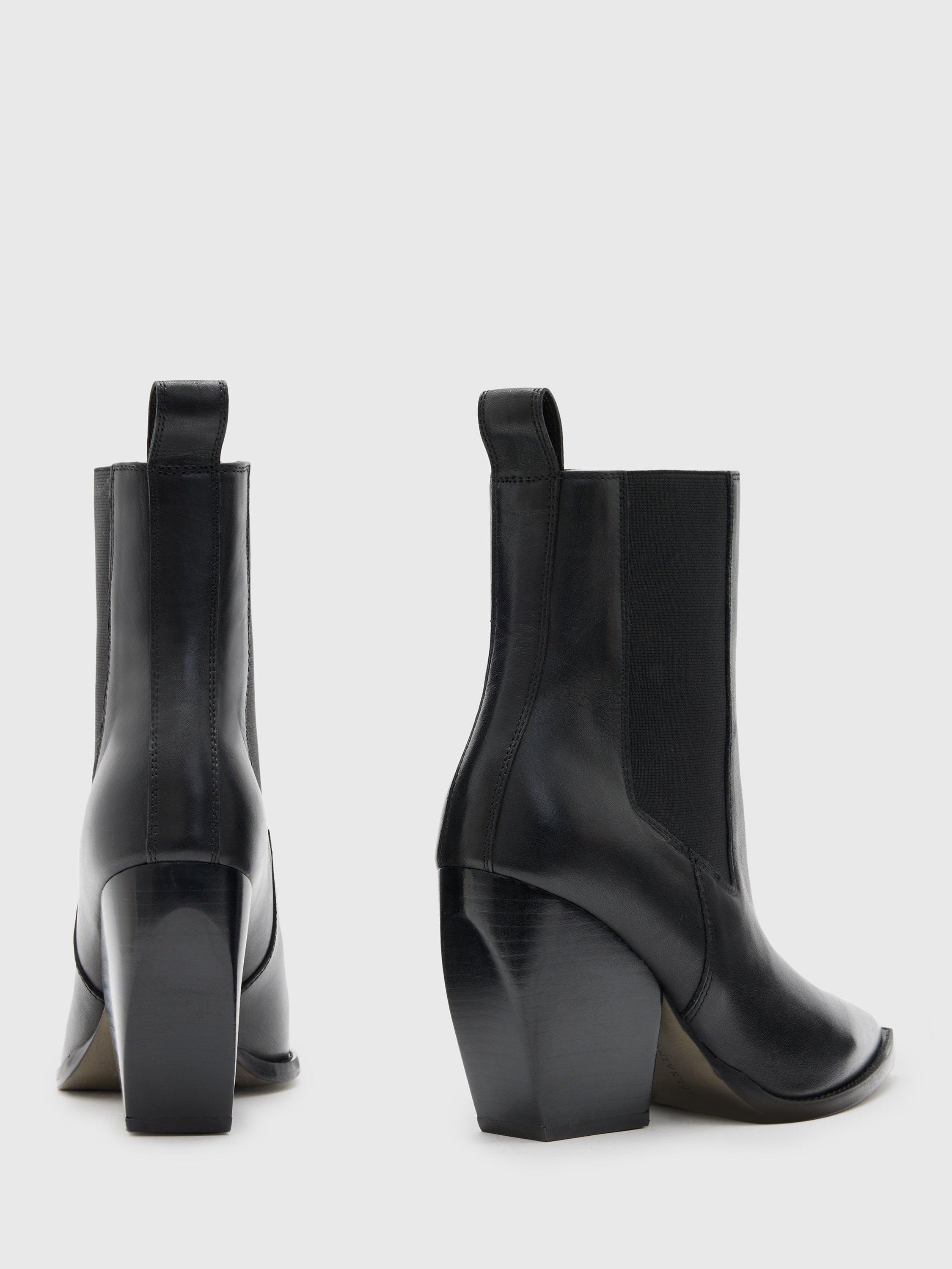 AllSaintsRia Block Heel Leather Cowboy Boots, Black