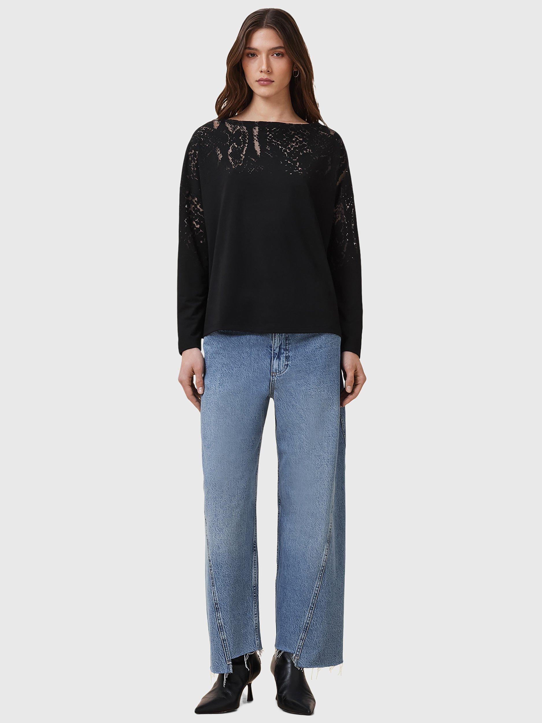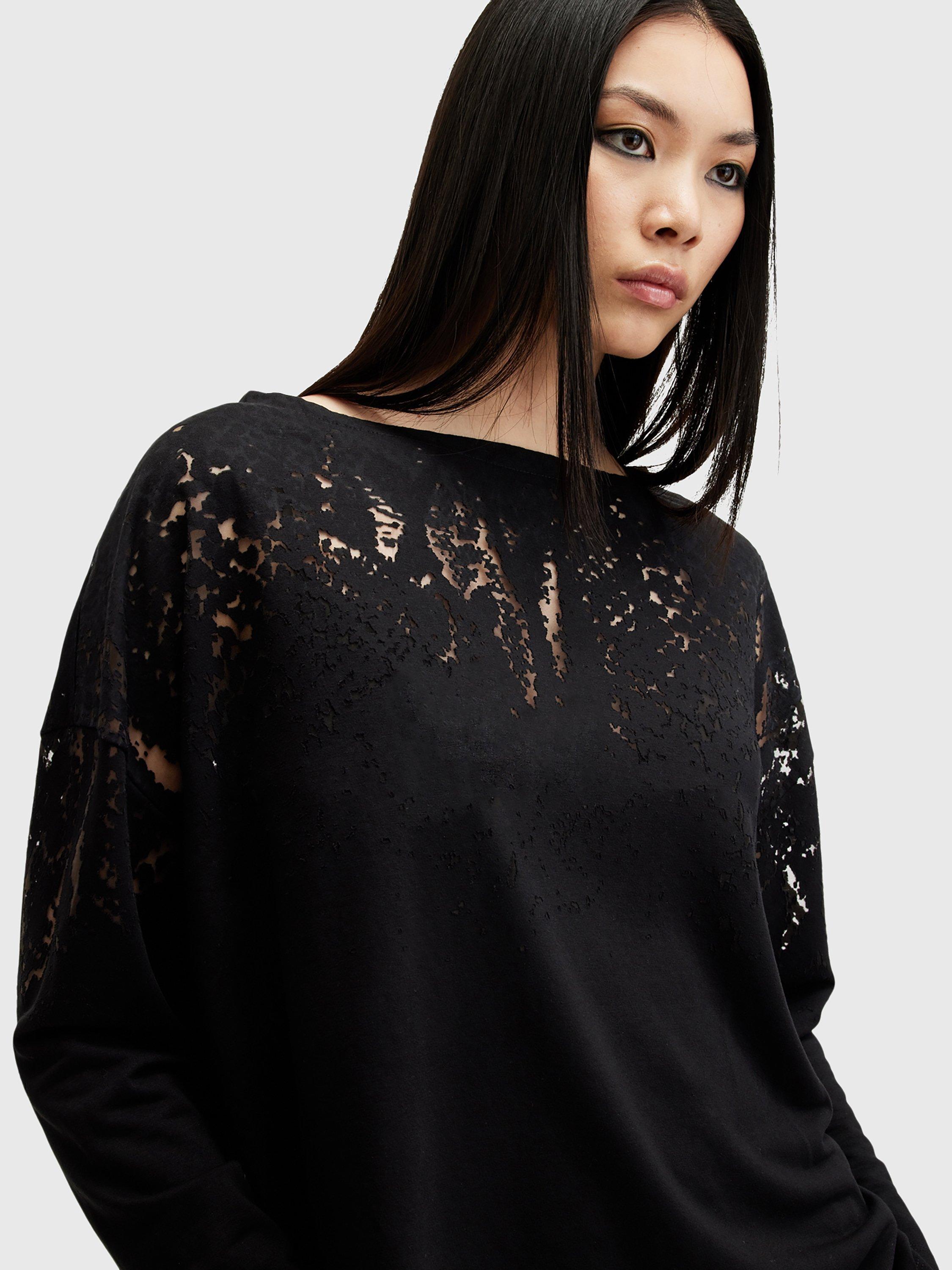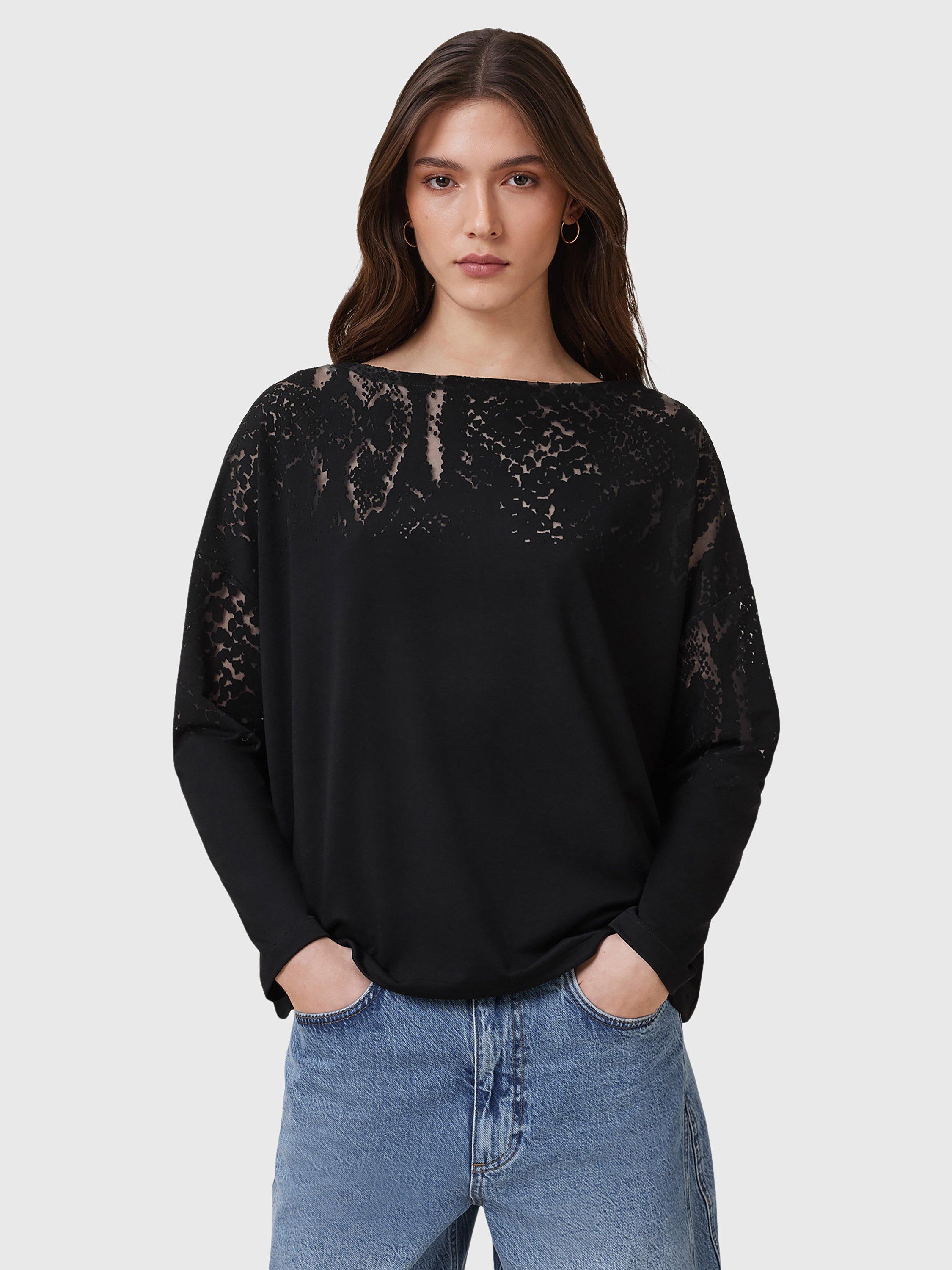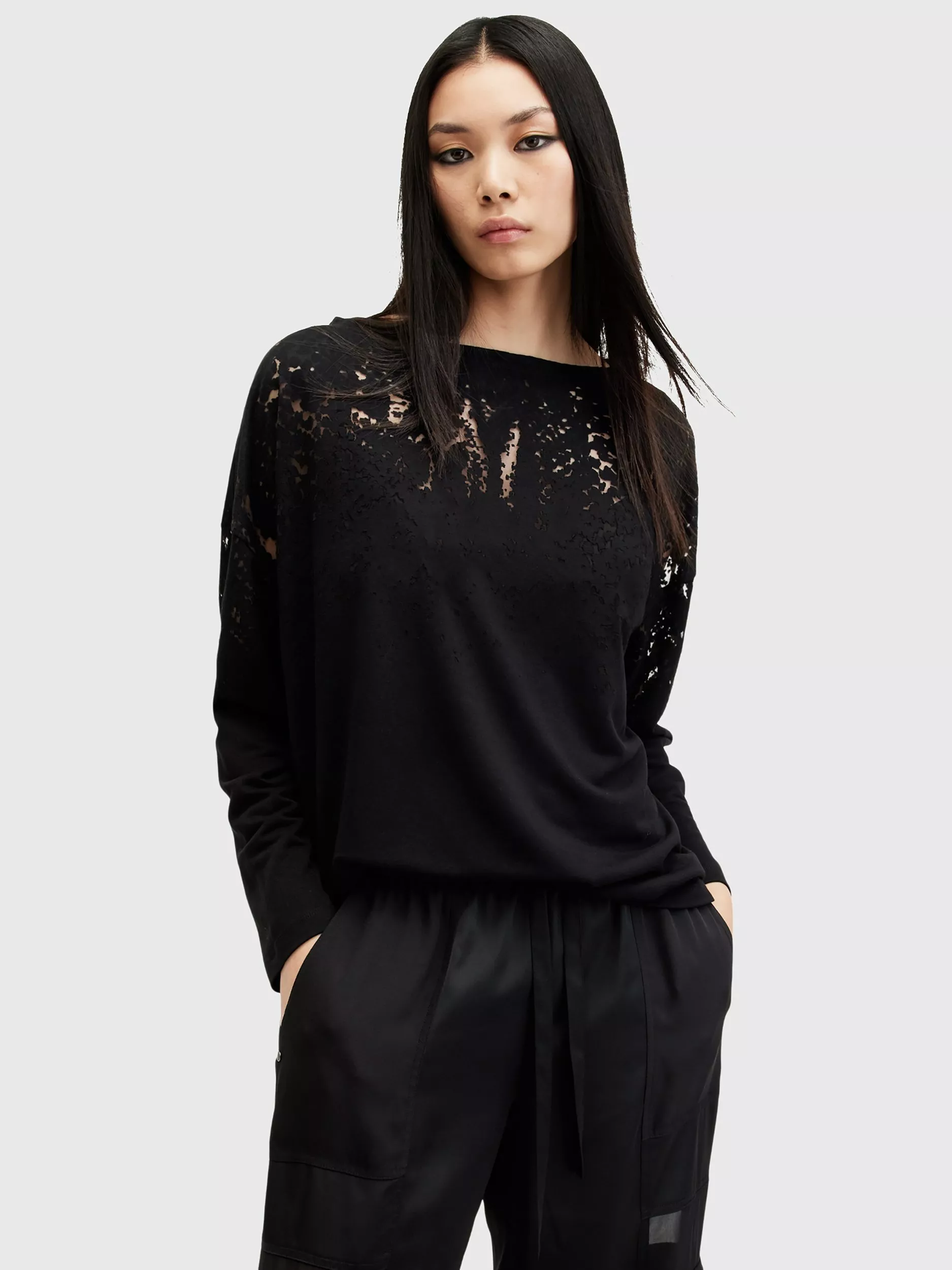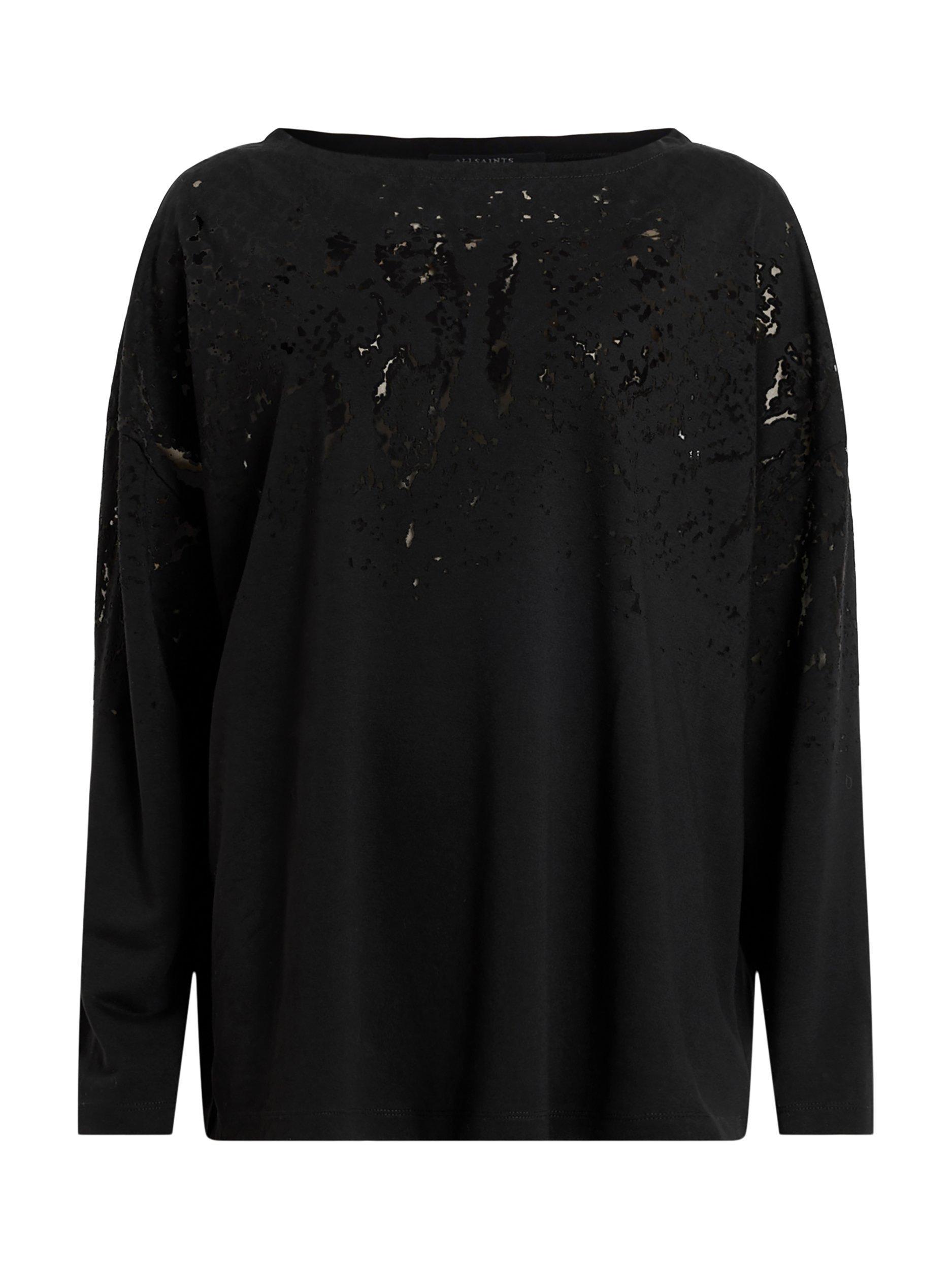 A solo piece or layering staple, this long sleeved loose t-shirt by AllSaints is made from a light yet durable blended fabric and features a burnout yoke design.