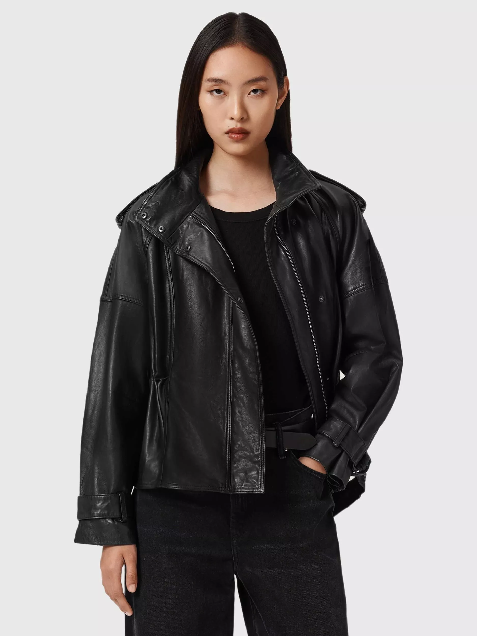 Unexpected details elevate this leather jacket, giving you effortless confidence and everyday comfort. The funnel neck and classic cut mean you'll look sharp wherever you wear it.