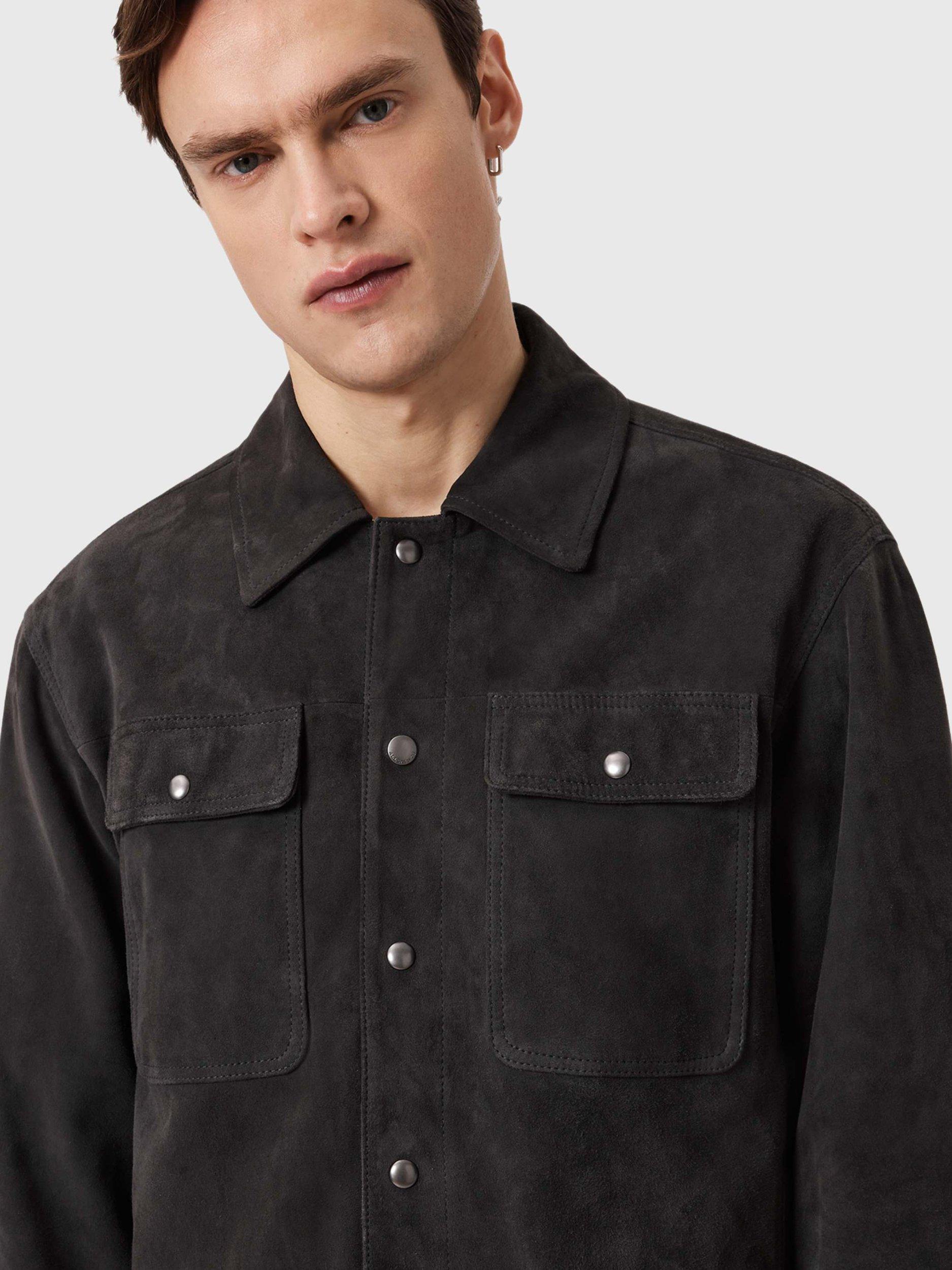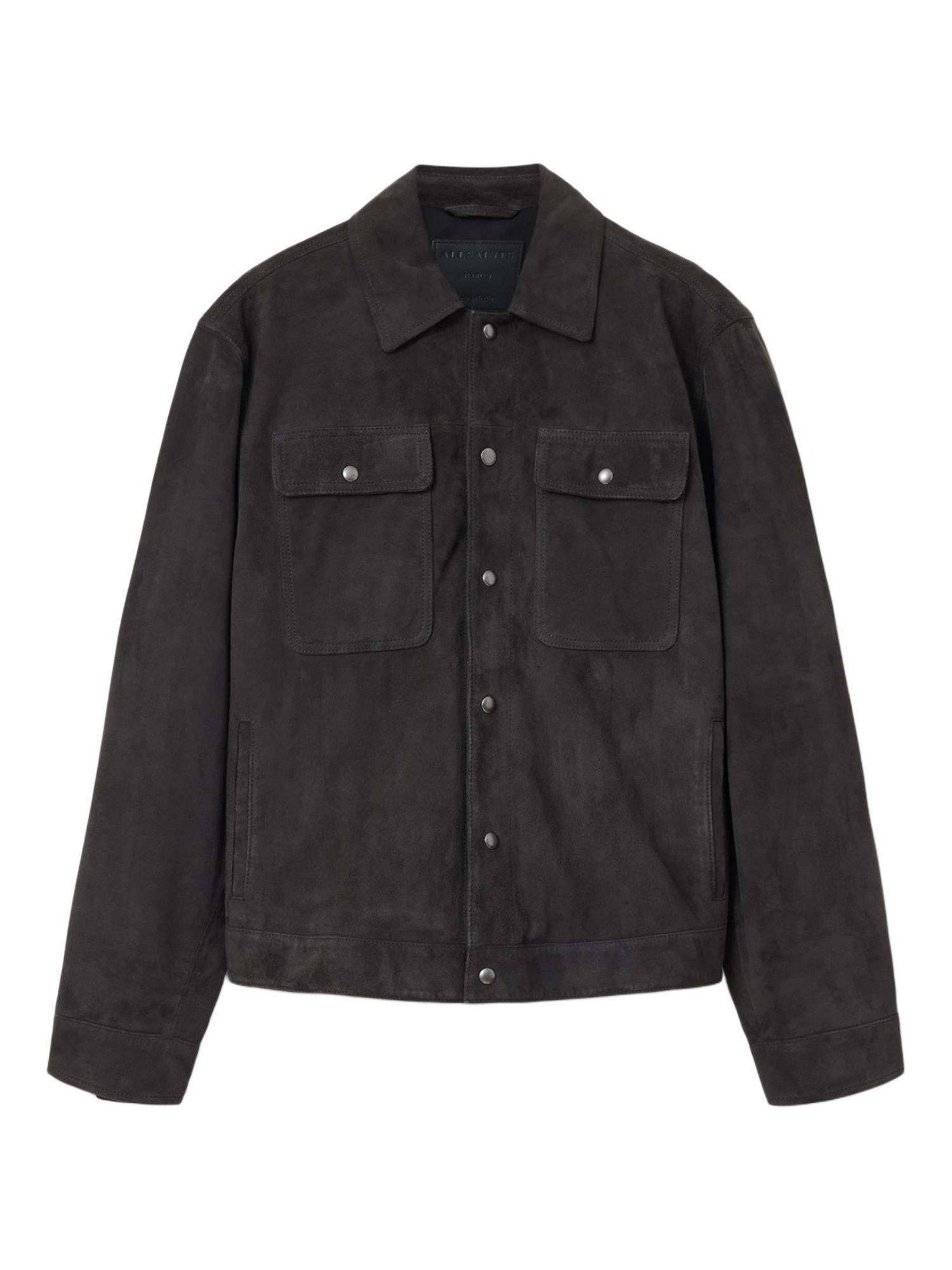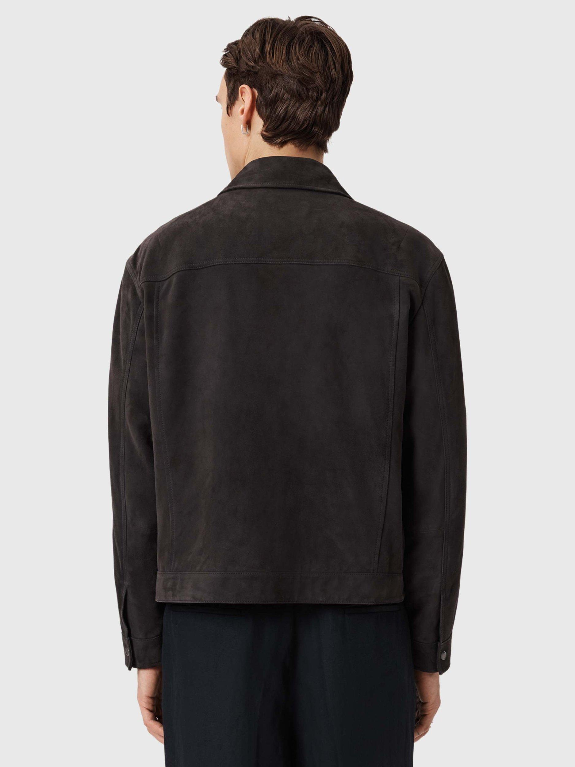 A washed suede leather jacket from AllSaints. Designed for comfortable layering and everyday wear with a full lining, it brings fresh character to your look while offering practical warmth and style.