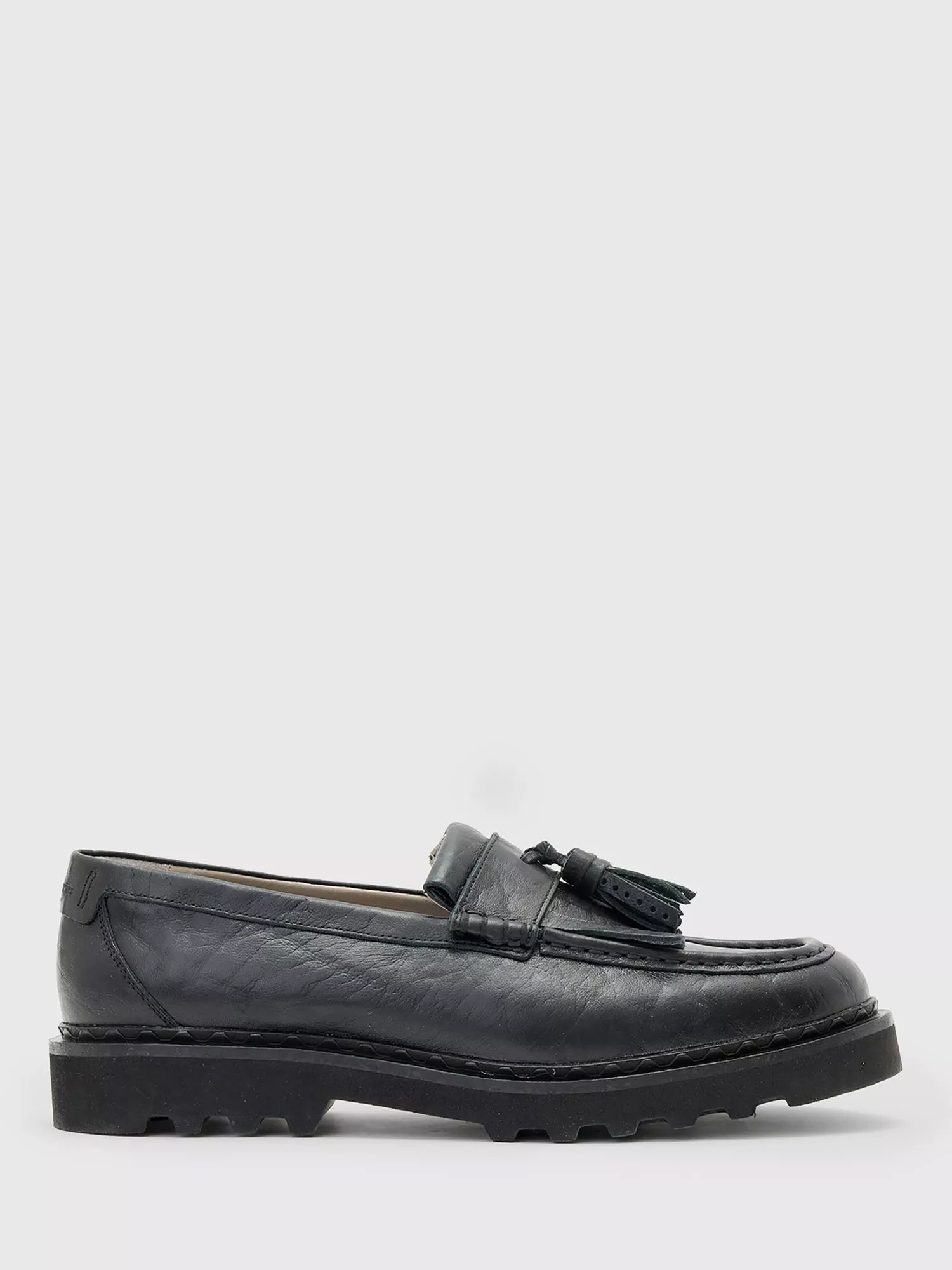 AllSaints loafers - crafted in supple leather with a durable rubber sole. The modern round toe and lace-up design keep you comfortable and confident from work to weekend, while a folded fringe apron and a signature tassel saddle detail makes an impression wherever you go.