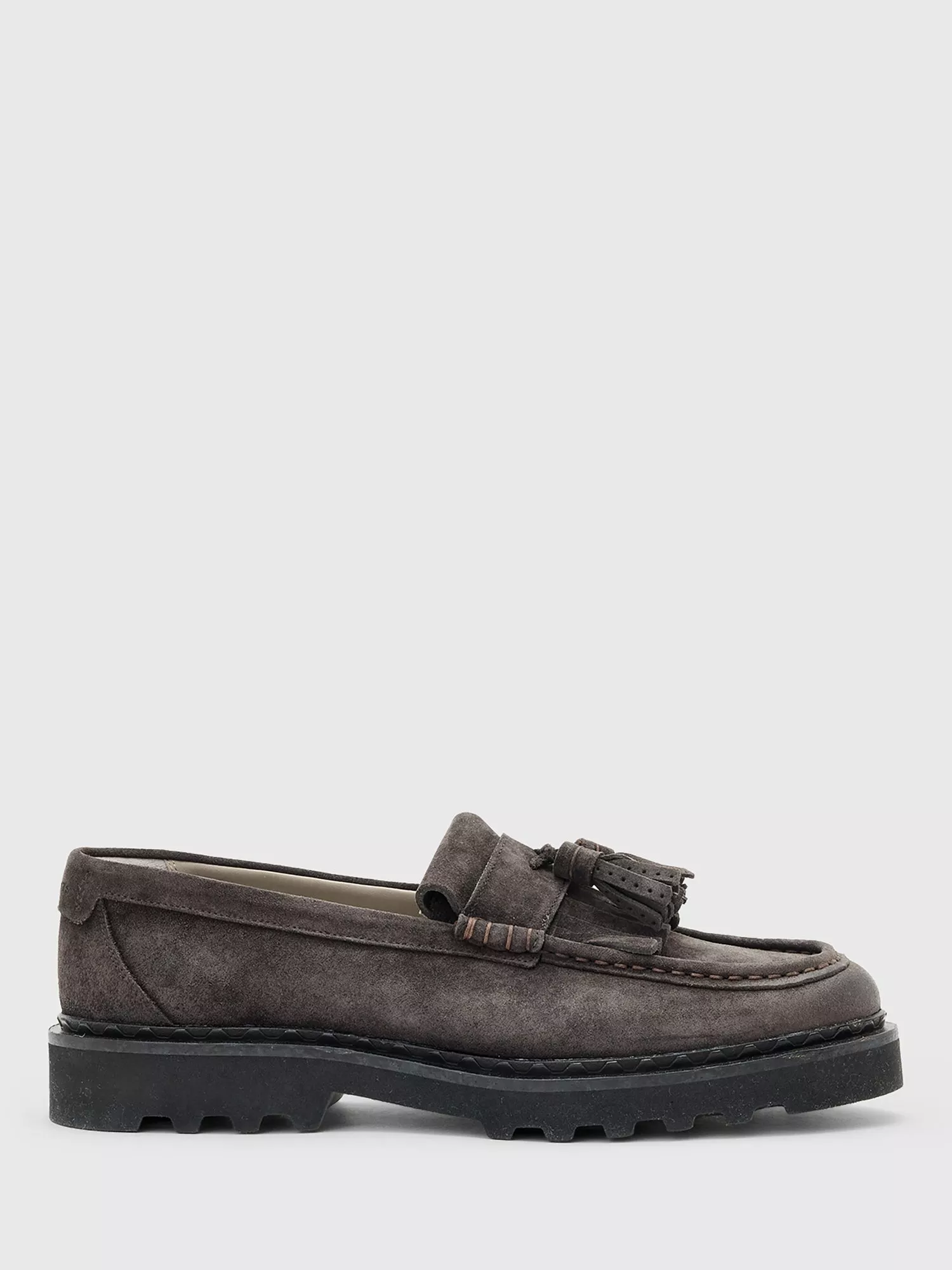 Step out in AllSaints' loafers - crafted in soft suede with a robust rubber sole for everyday adventures. The lace-up design offers comfort with a twist, keeping you light on your feet and ready for anything. Designed with a folded fringe apron and a signature tassel saddle detail.