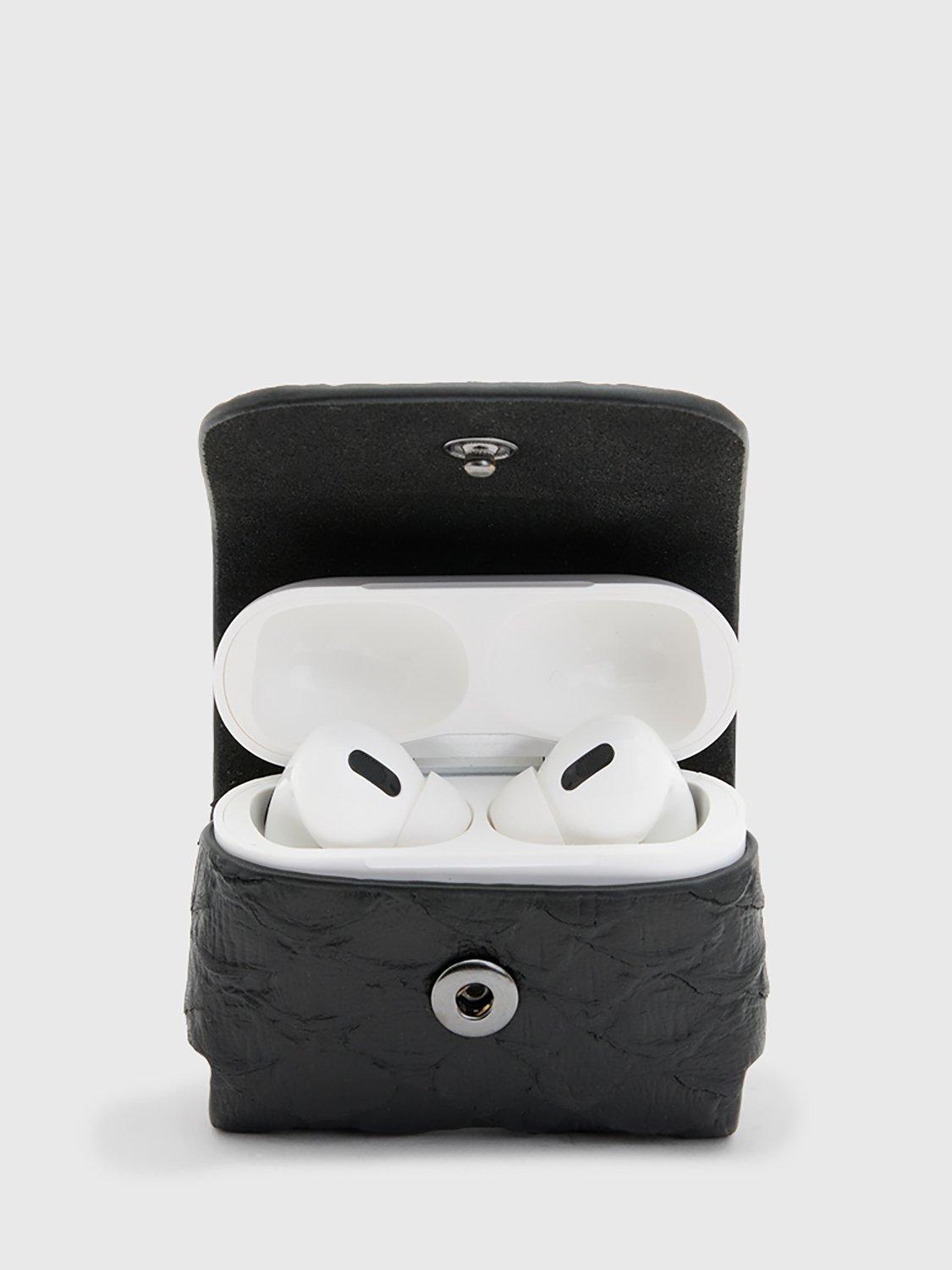 AllSaintsSnake Effect Leather AirPod Case, Black