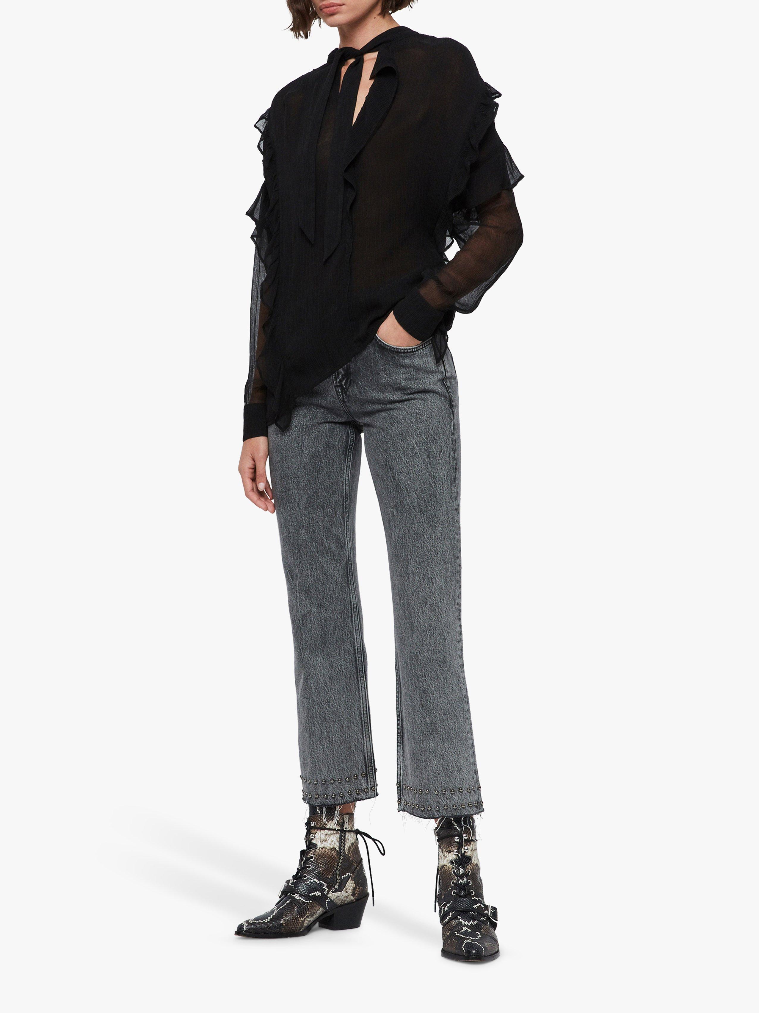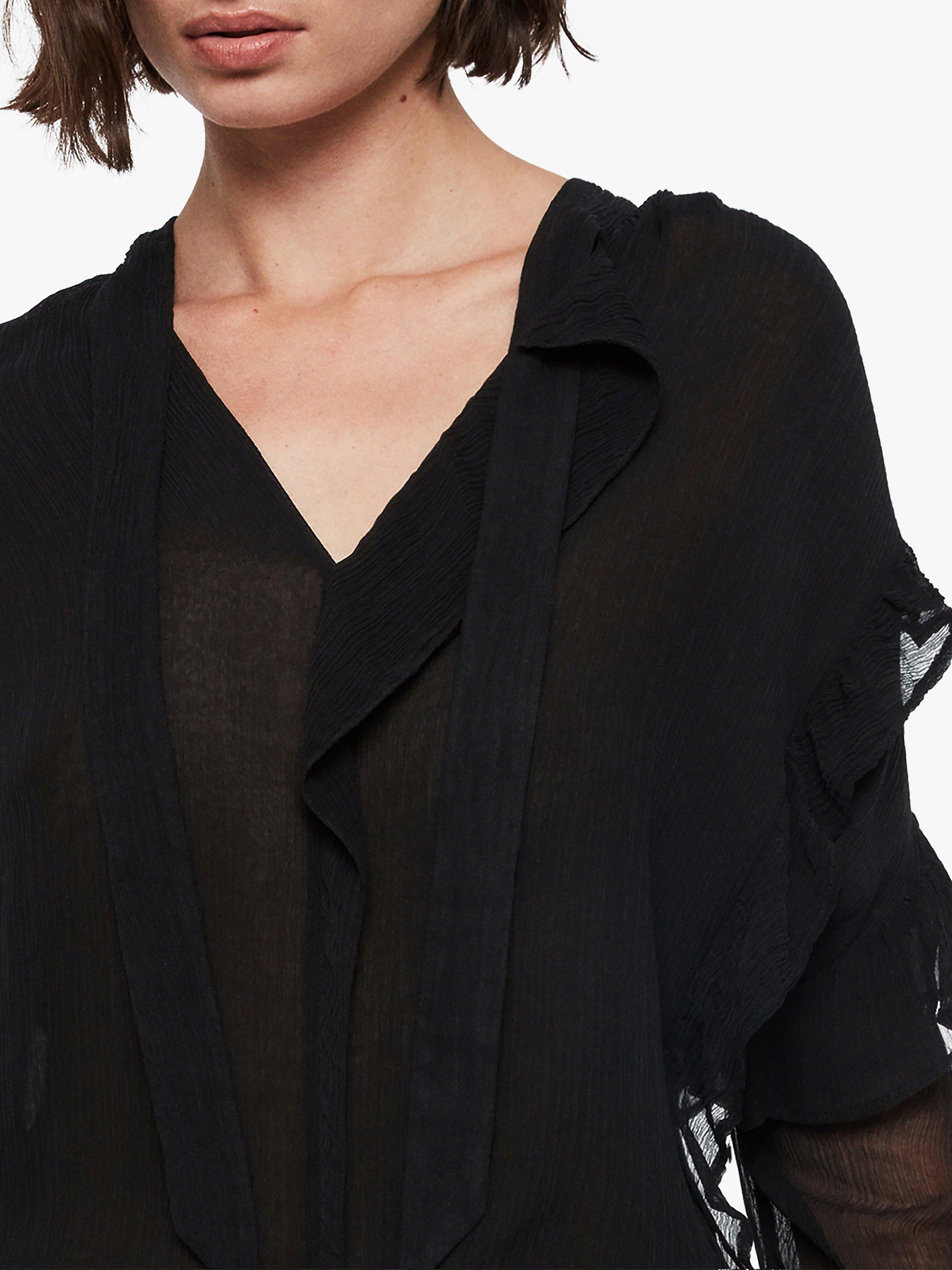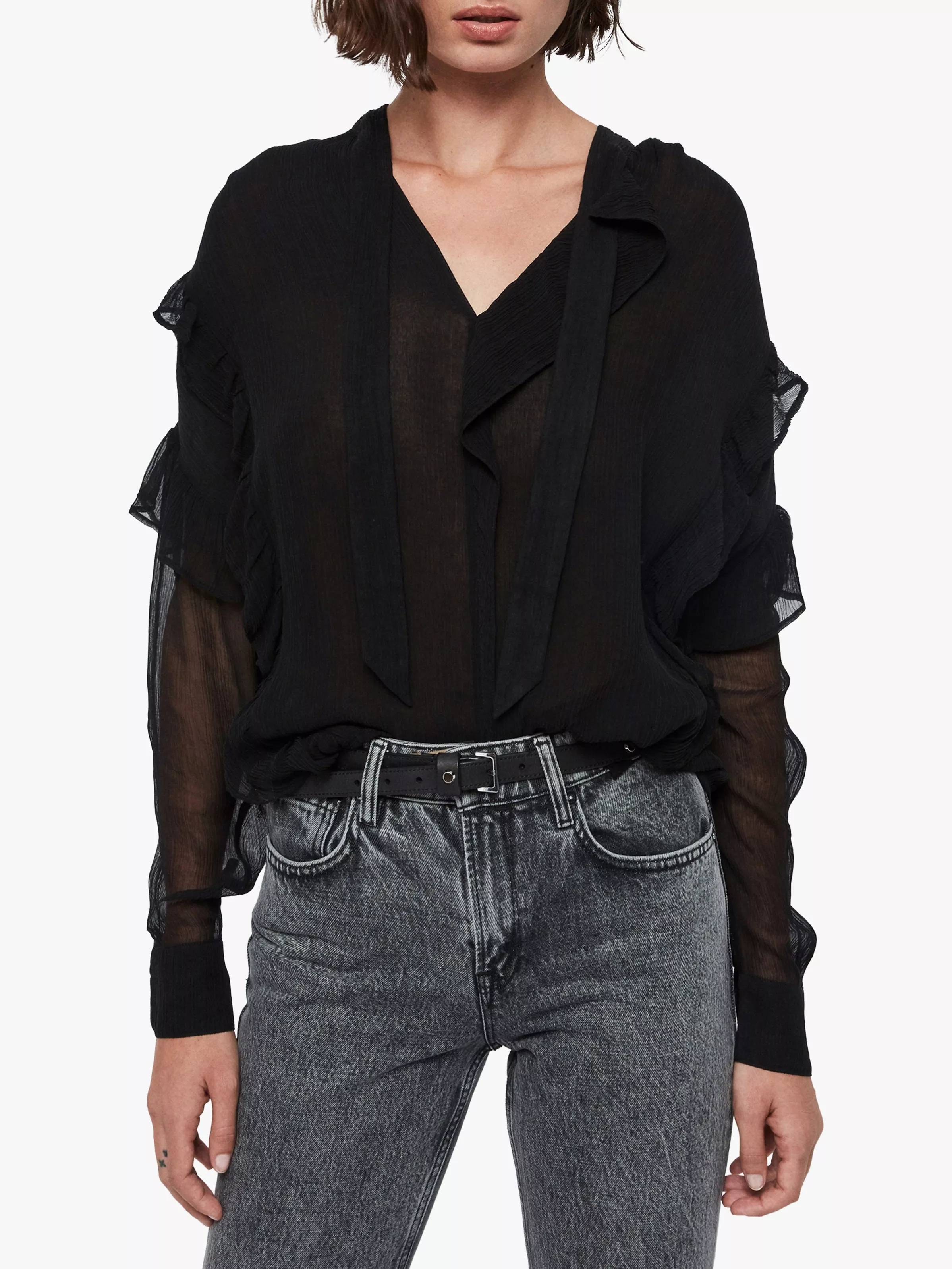 Cut from a lightweight fabric for gracefully fluid wear, this Sofia top from AllSaints will serve to elevate many an ensemble with its wear. Equipped with a fetching tie-neck detail, this long-sleeve piece is sure to team well with denim as part of a stylish weekend outfit.