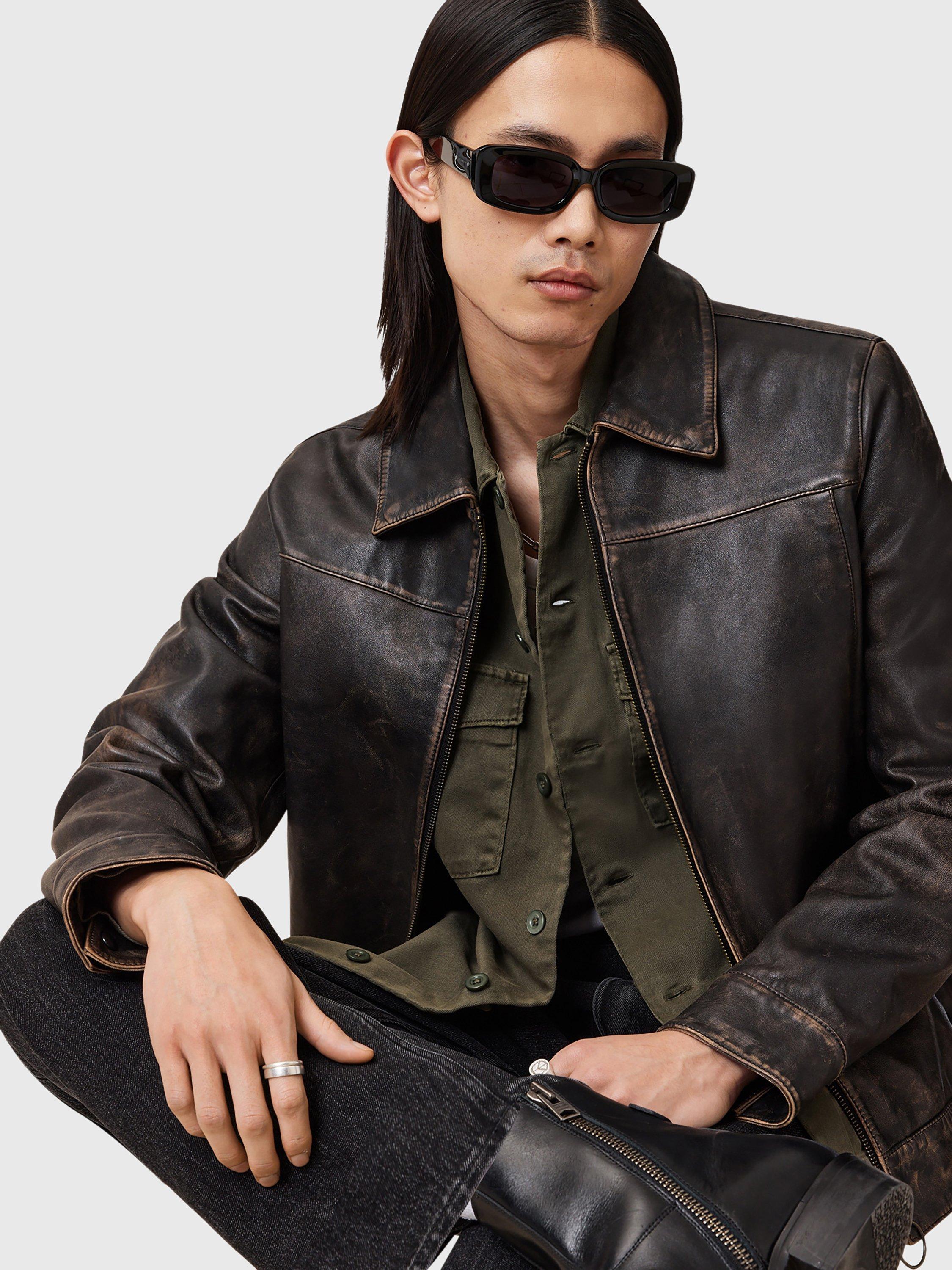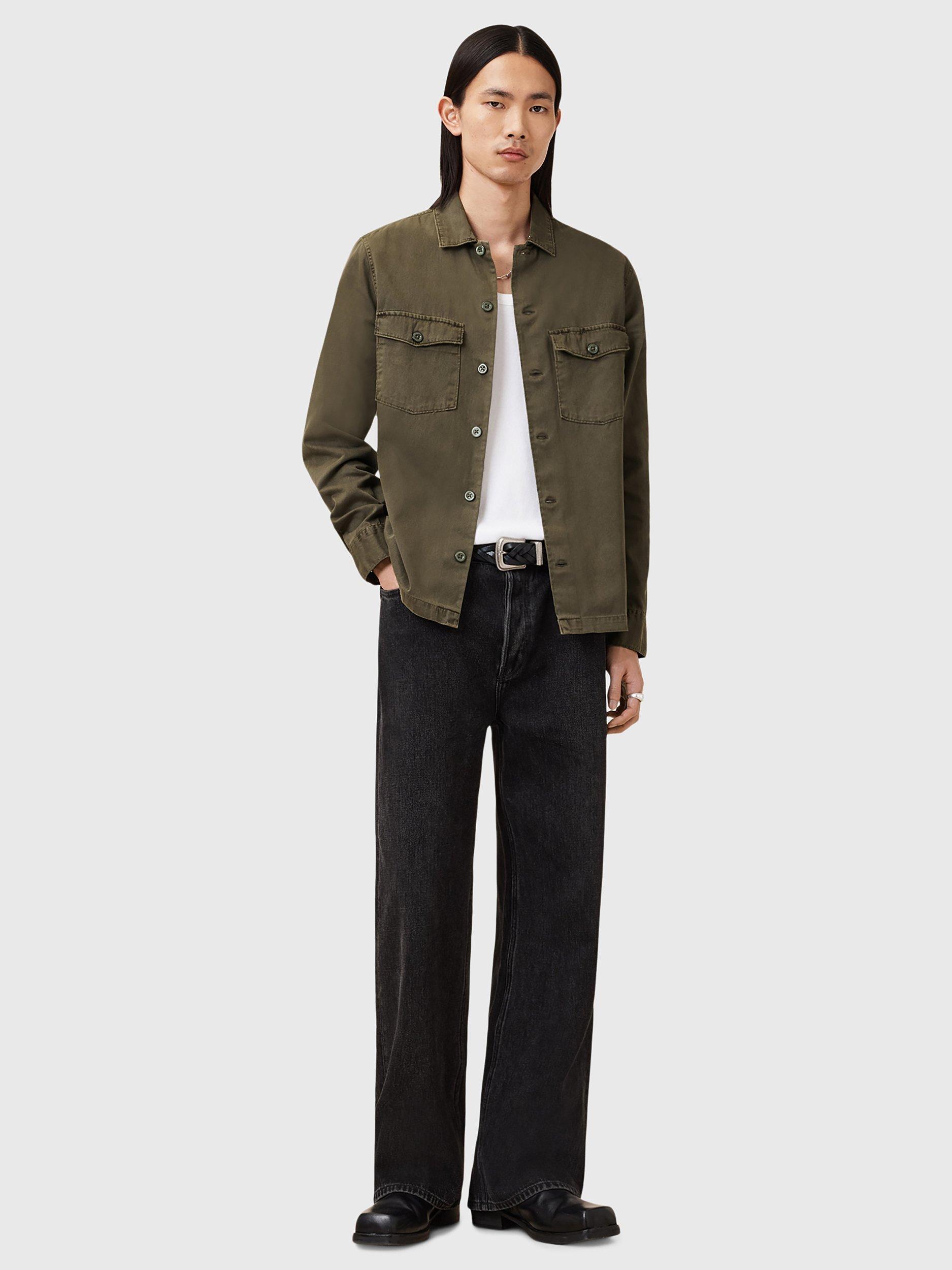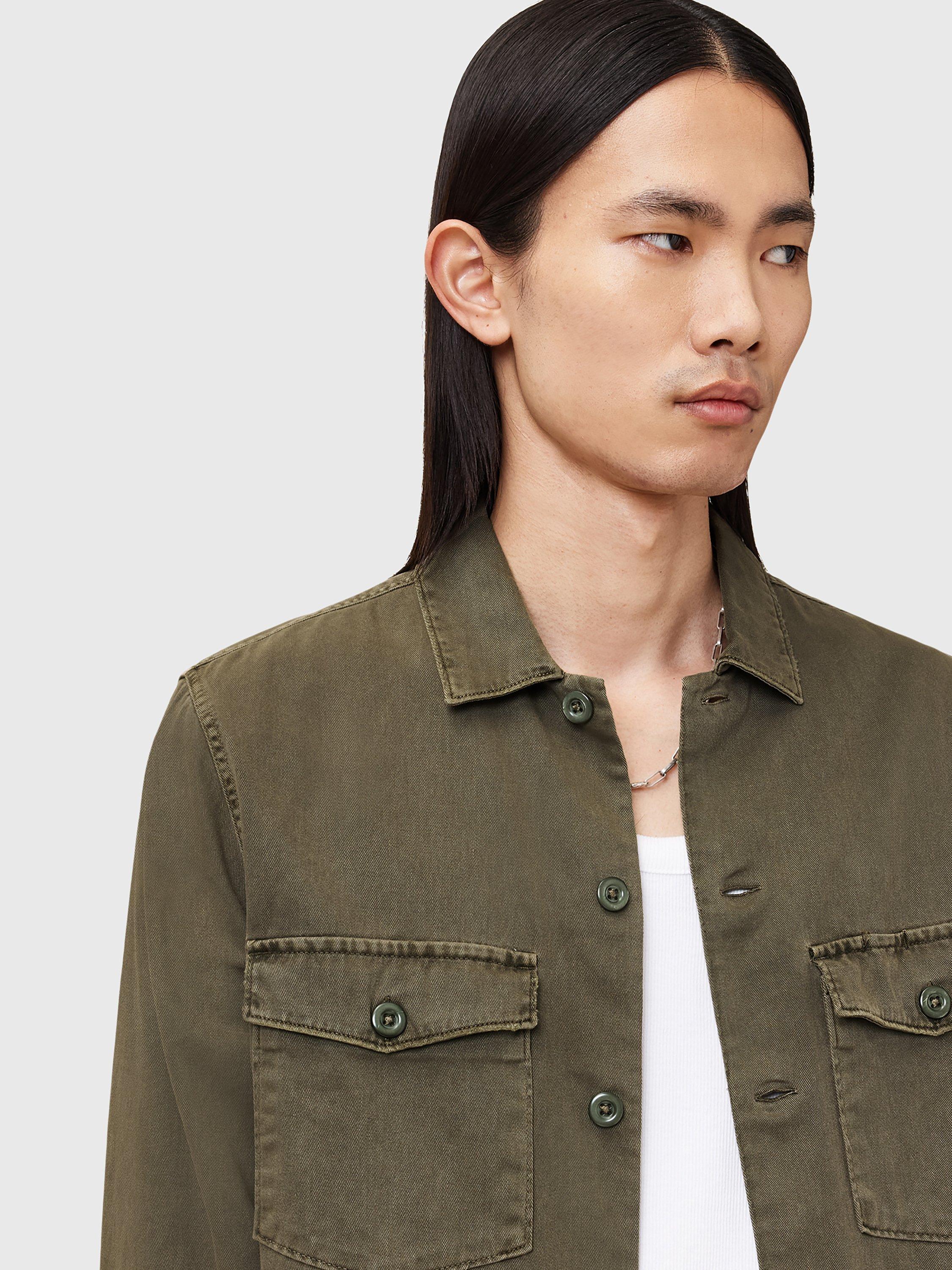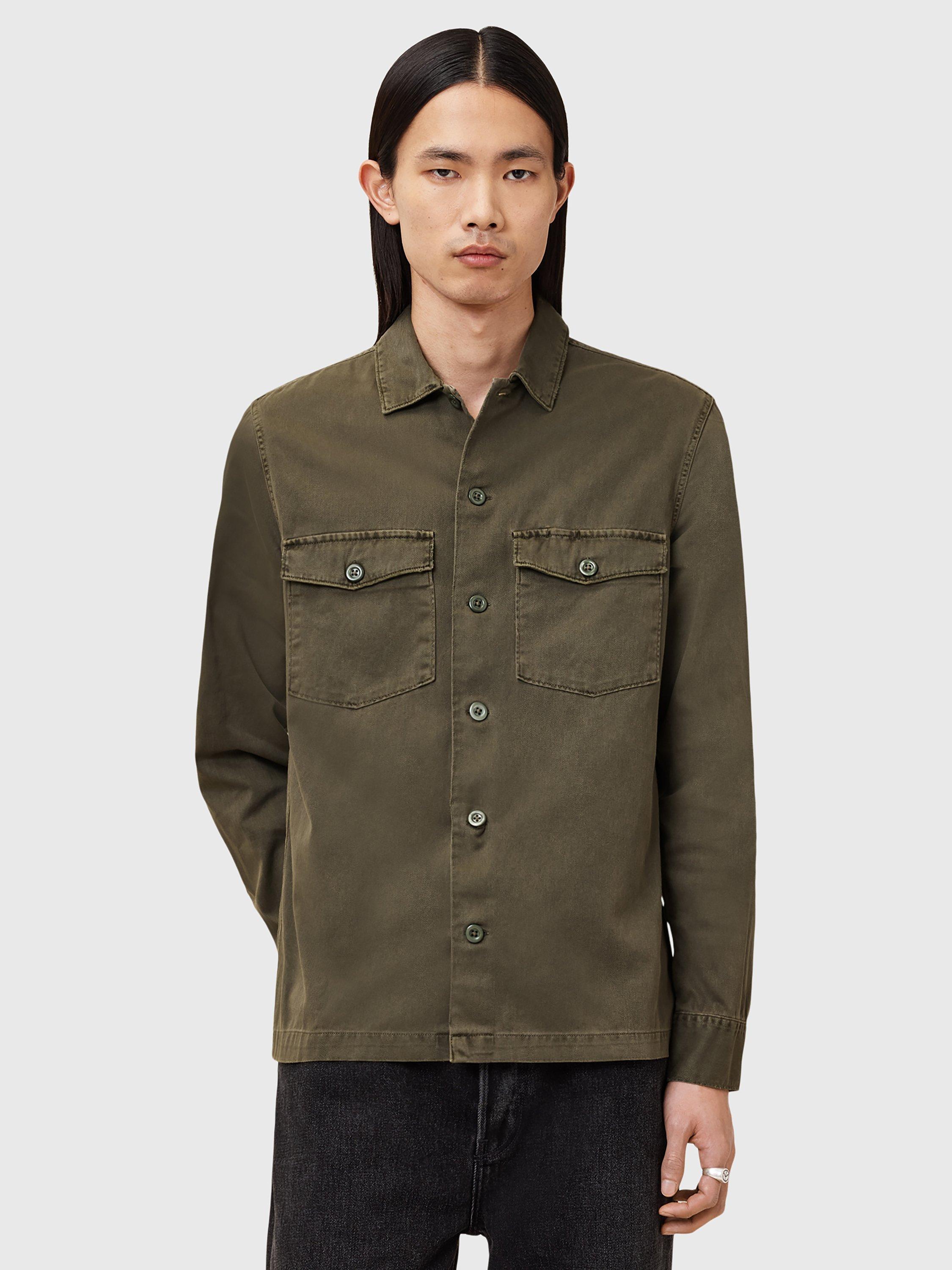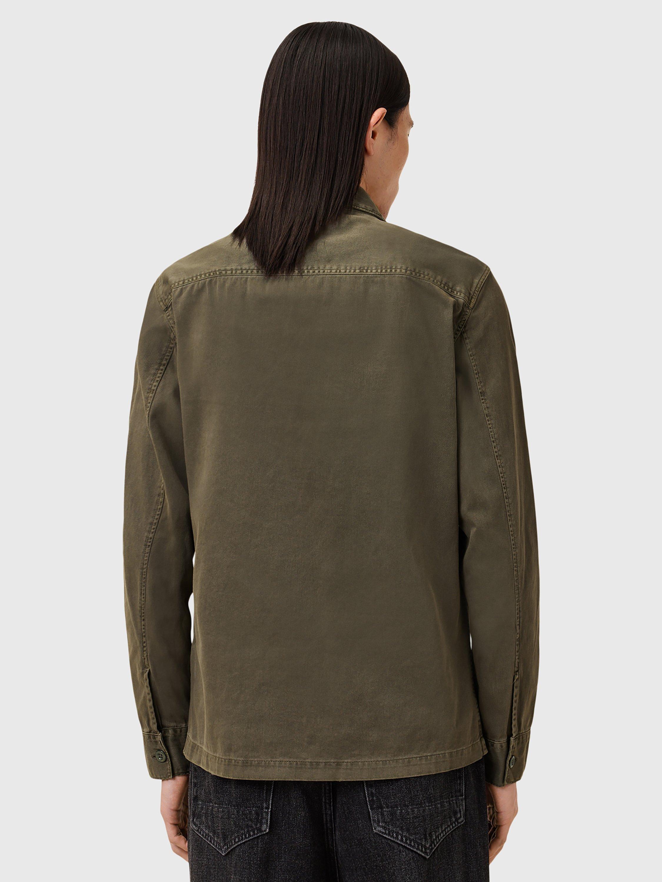 Inspired by army overshirts, this style by AllSaints has been crafted from heavily-laundered cotton with large buttons and distressed patches.