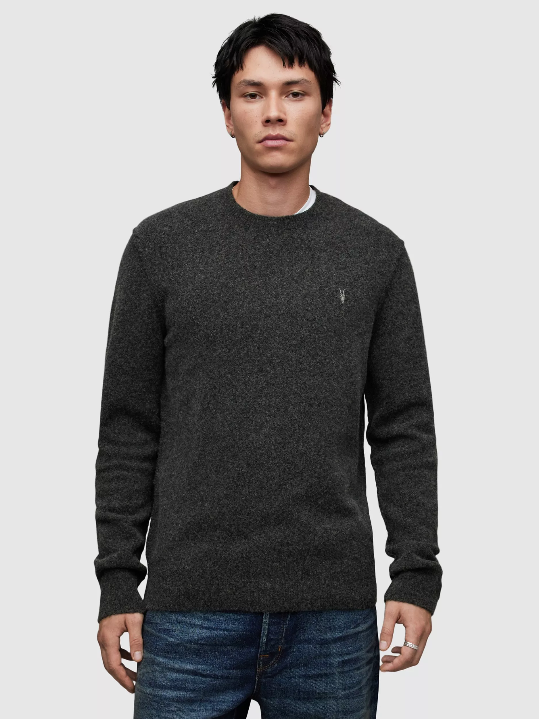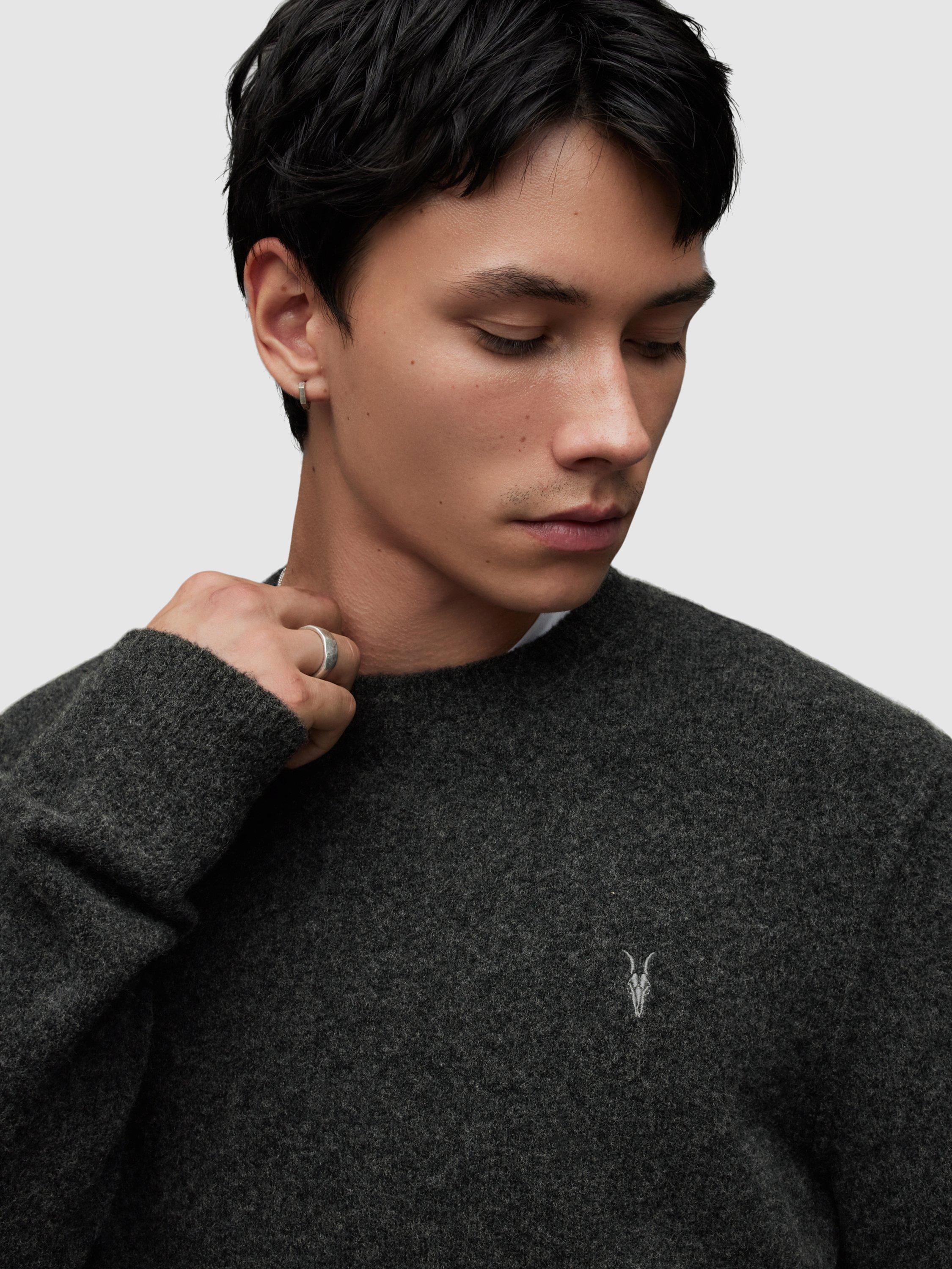 AllSaintsStatten Relaxed Fit Crew Neck Jumper, Cinder Black Marl