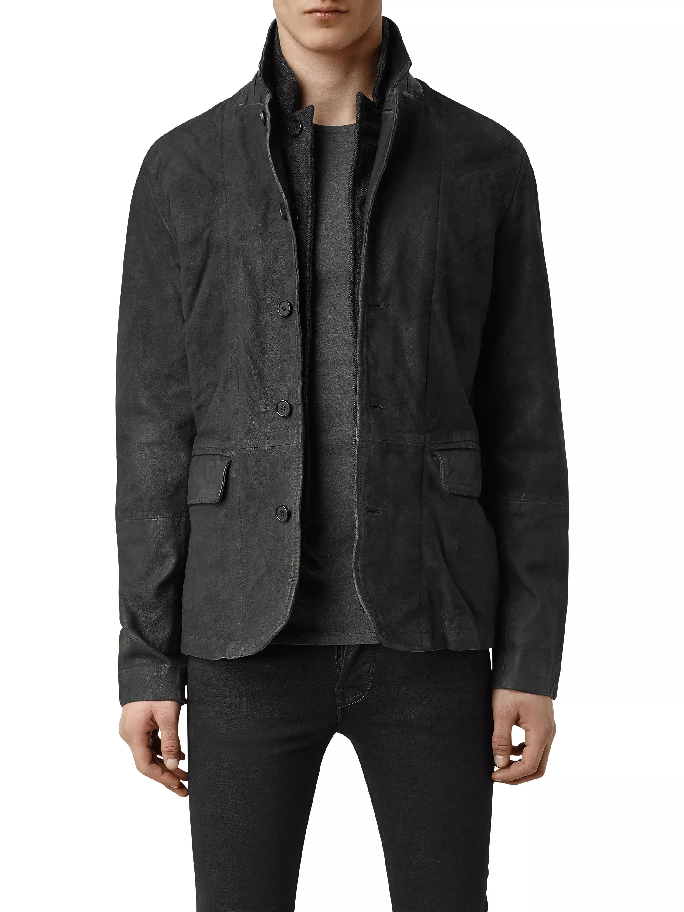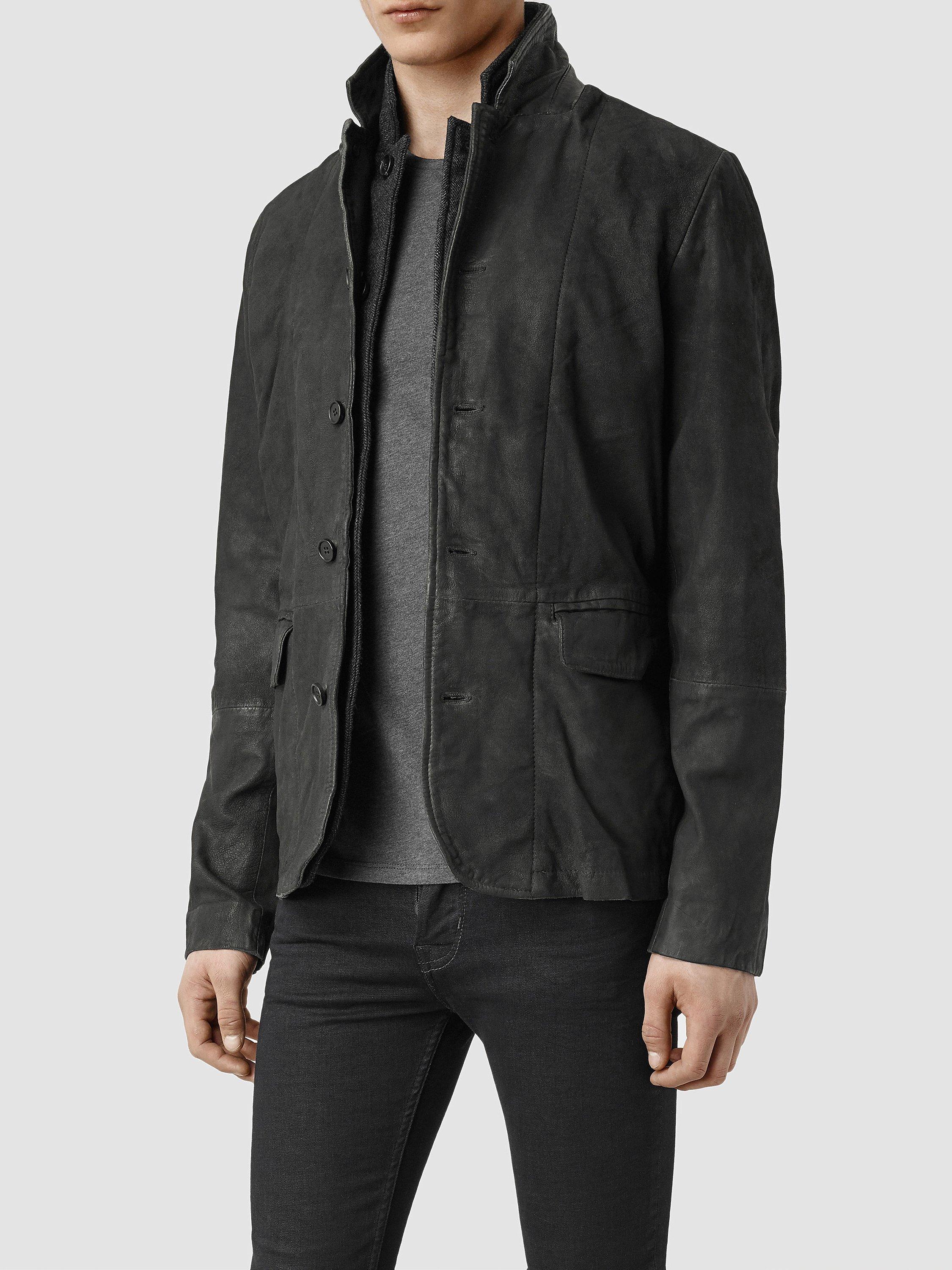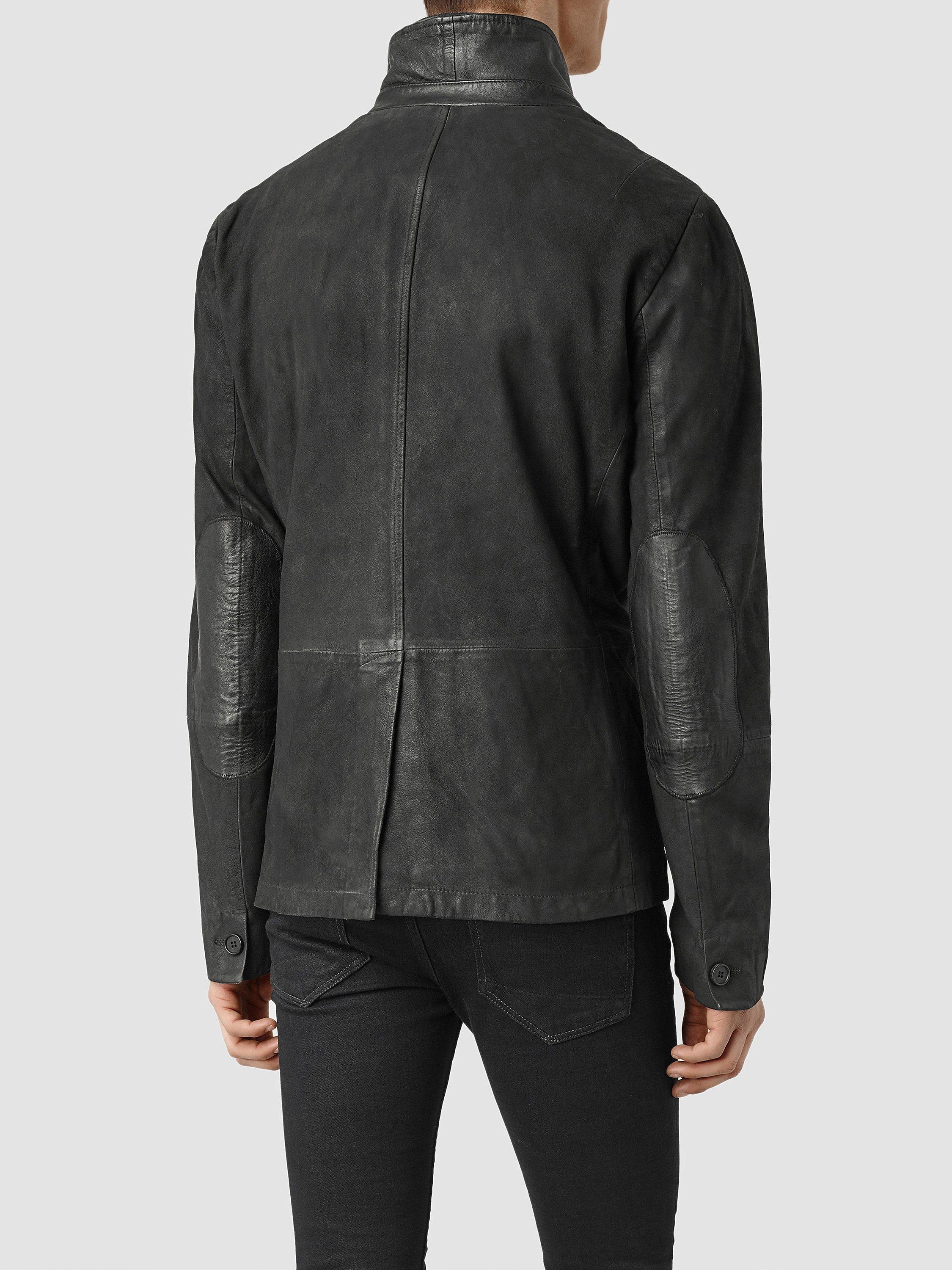 Tap into an understated yet inimitable cool with this AllSaints leather jacket. The dynamic framework gives your attire structure, crafted from 100% leather with a 100% wool collar that looks like a second layer, with contrast elbow patches to emulate a true worker's jacket.