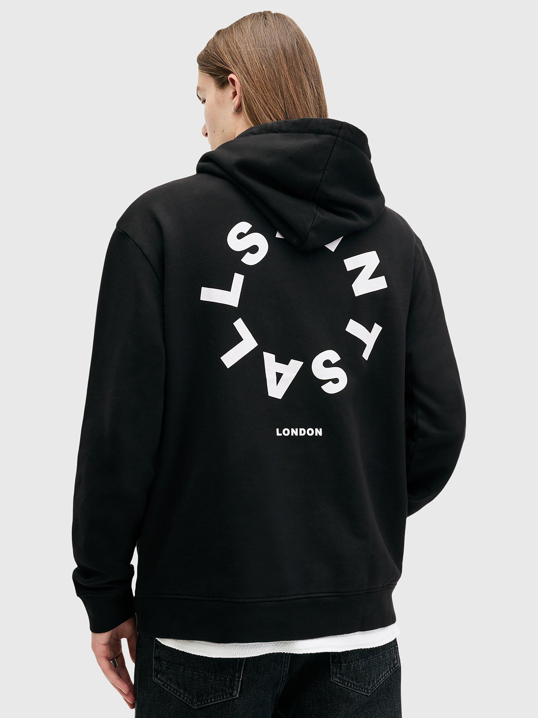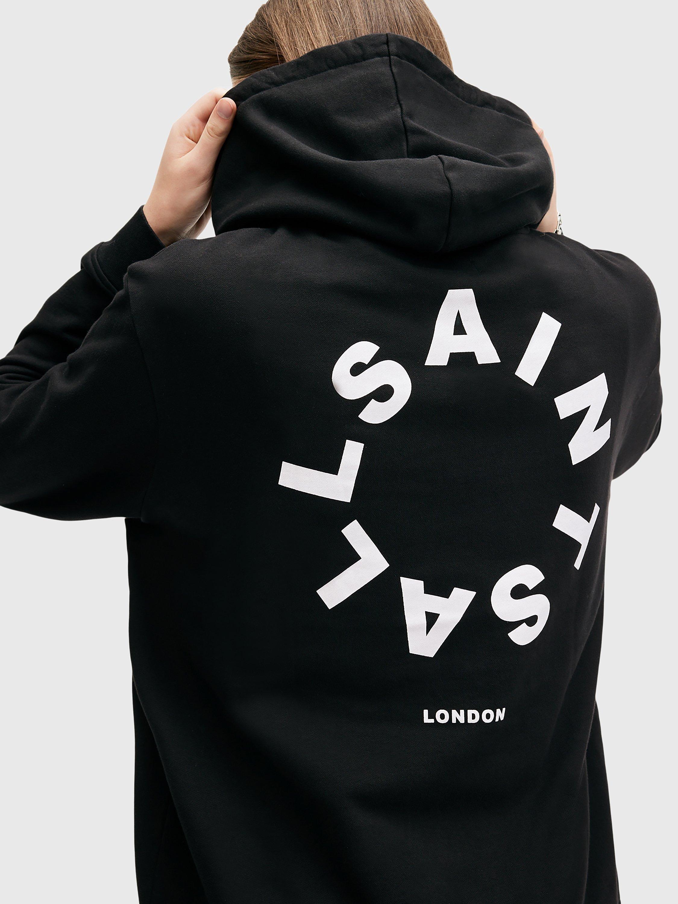 Relaxed and easy, the Tierra hoodie is made from organic cotton, and has a comfy pullover shape. It's topped with a circular AllSaints graphic front and back. Ideal for wear around the house, running errands, or on Sunday walks ...you'll look great whatever.