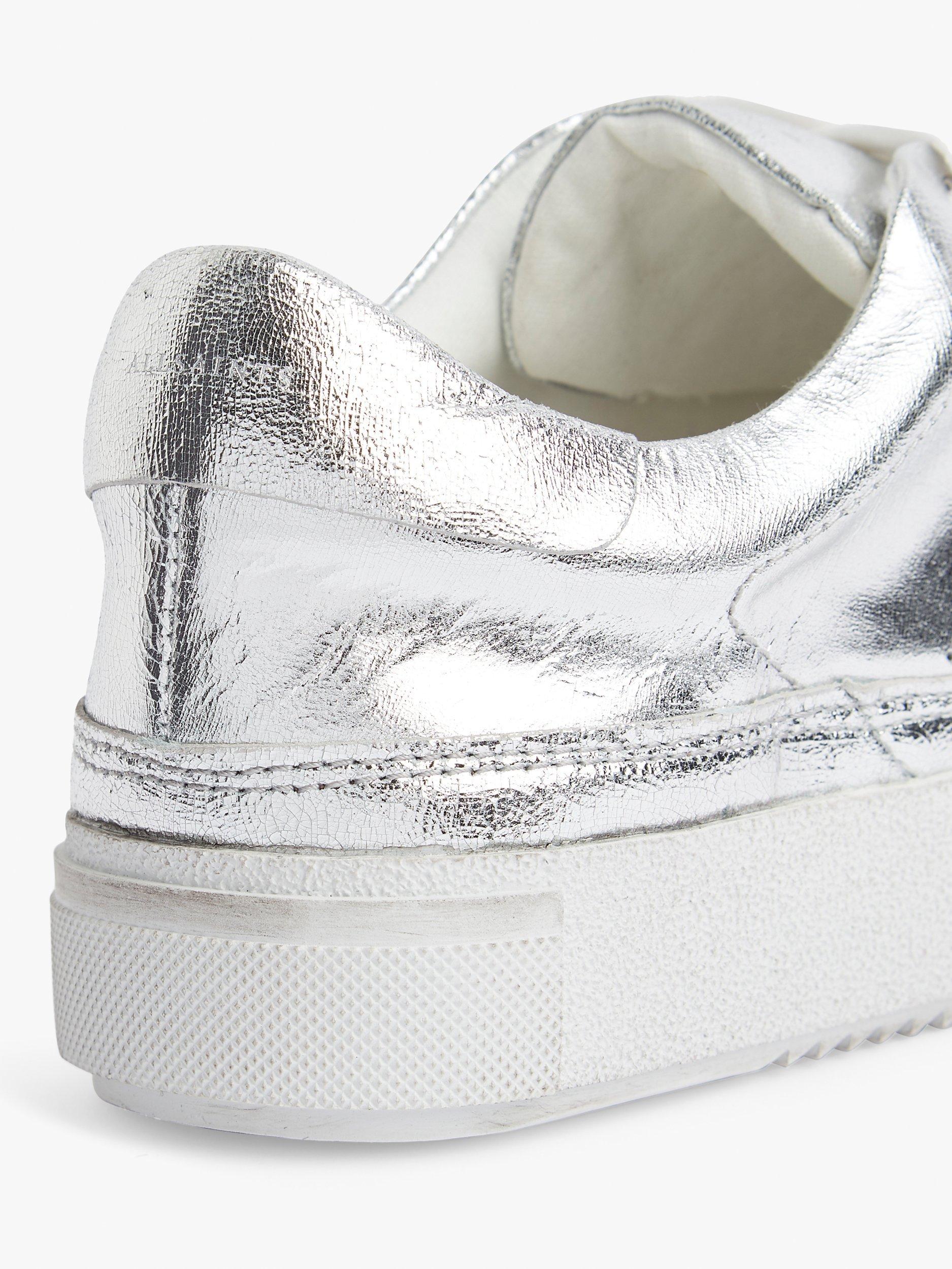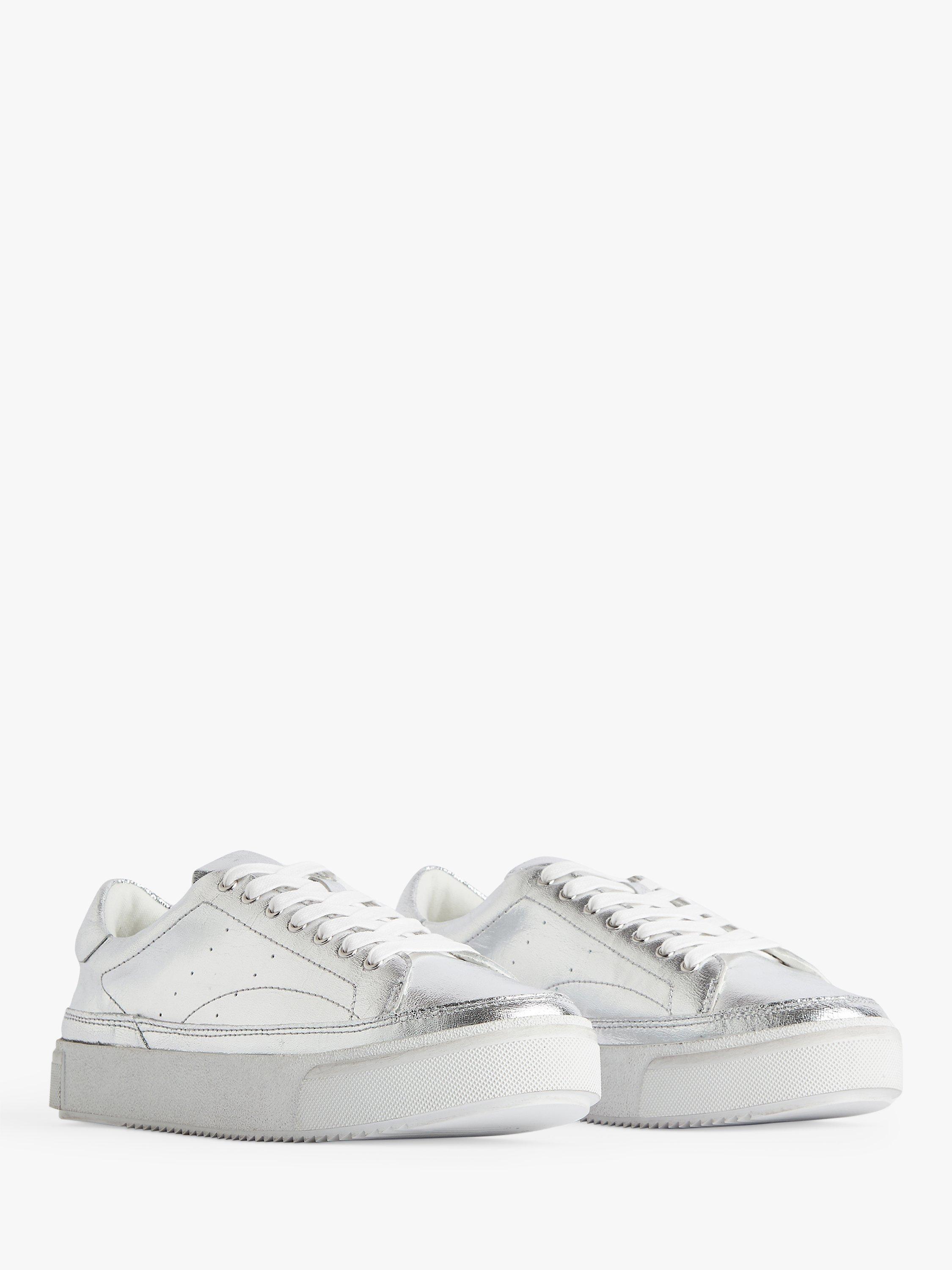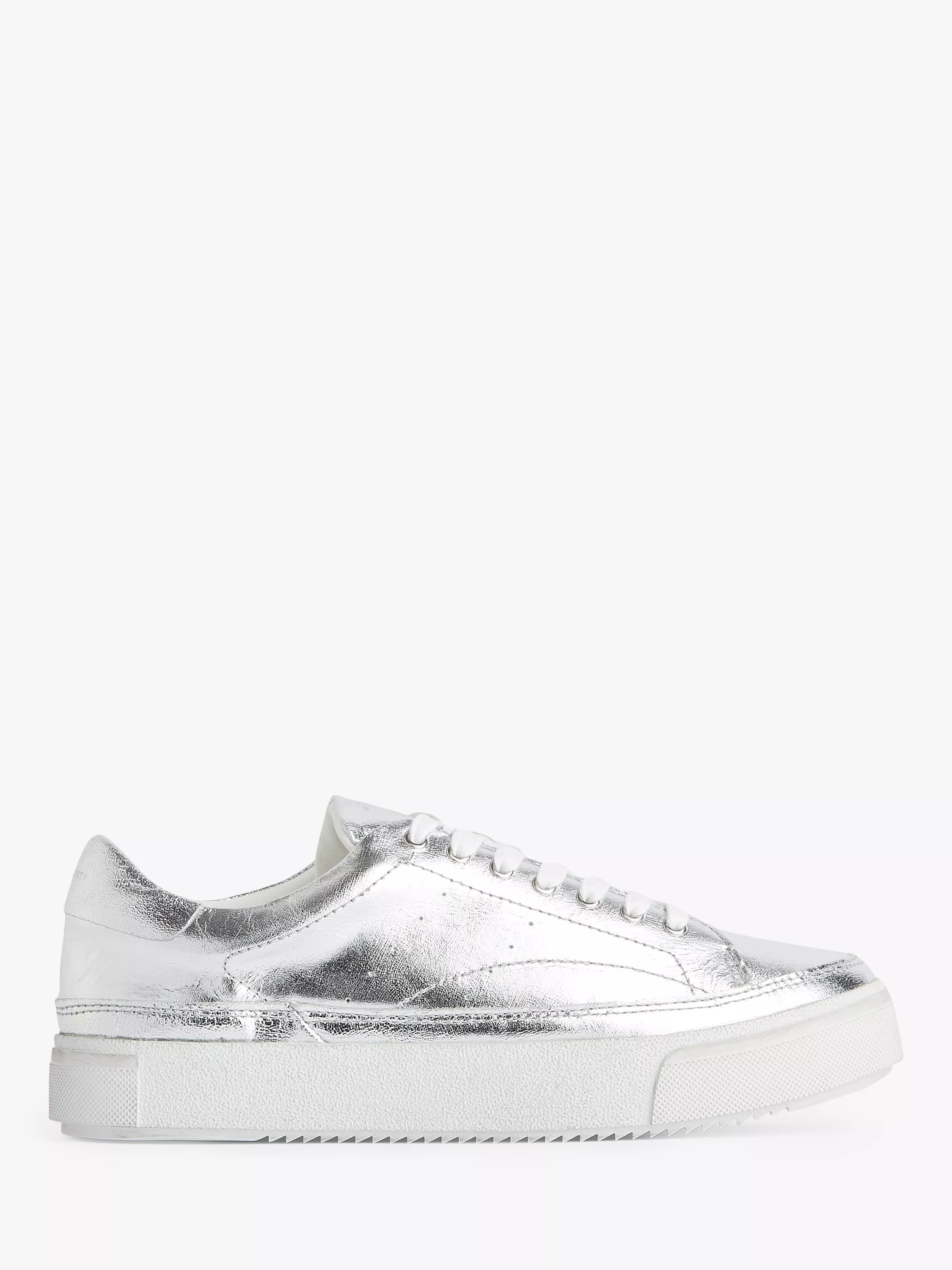 AllSaintsTrish Leather Metallic Lace Up Trainers, Silver
