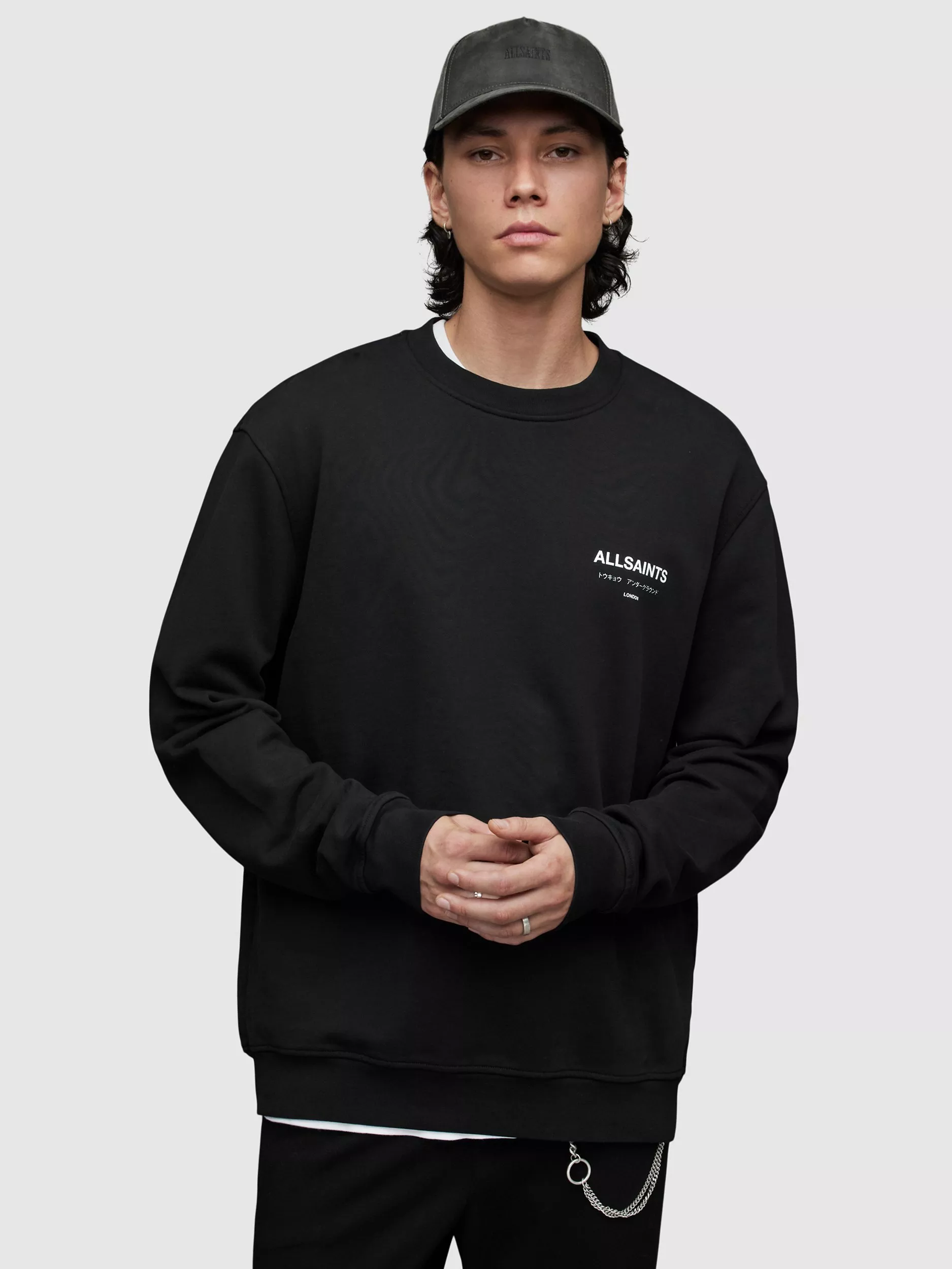 AllSaintsUnderground Crew Neck Organic Cotton Jumper, Jet Black