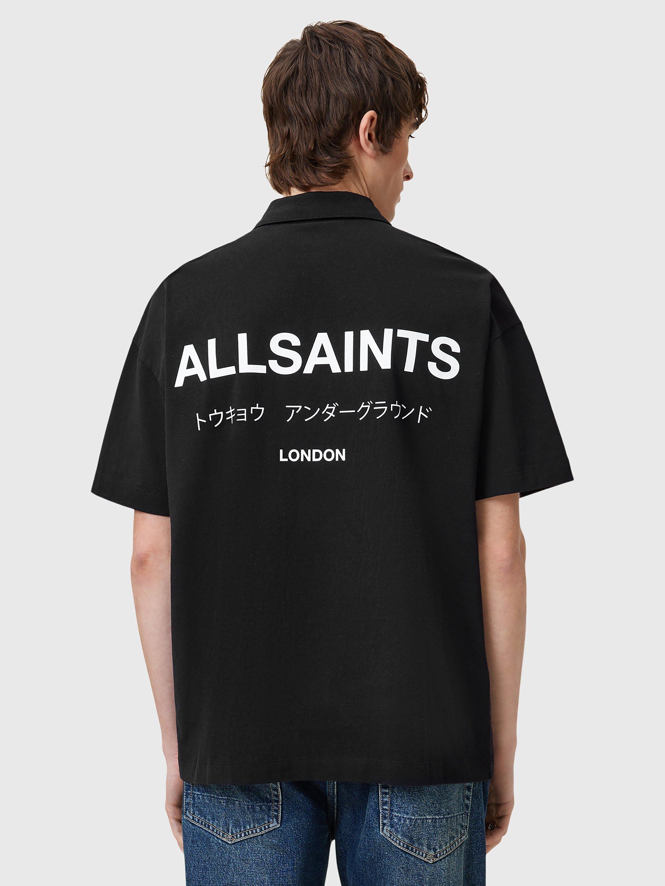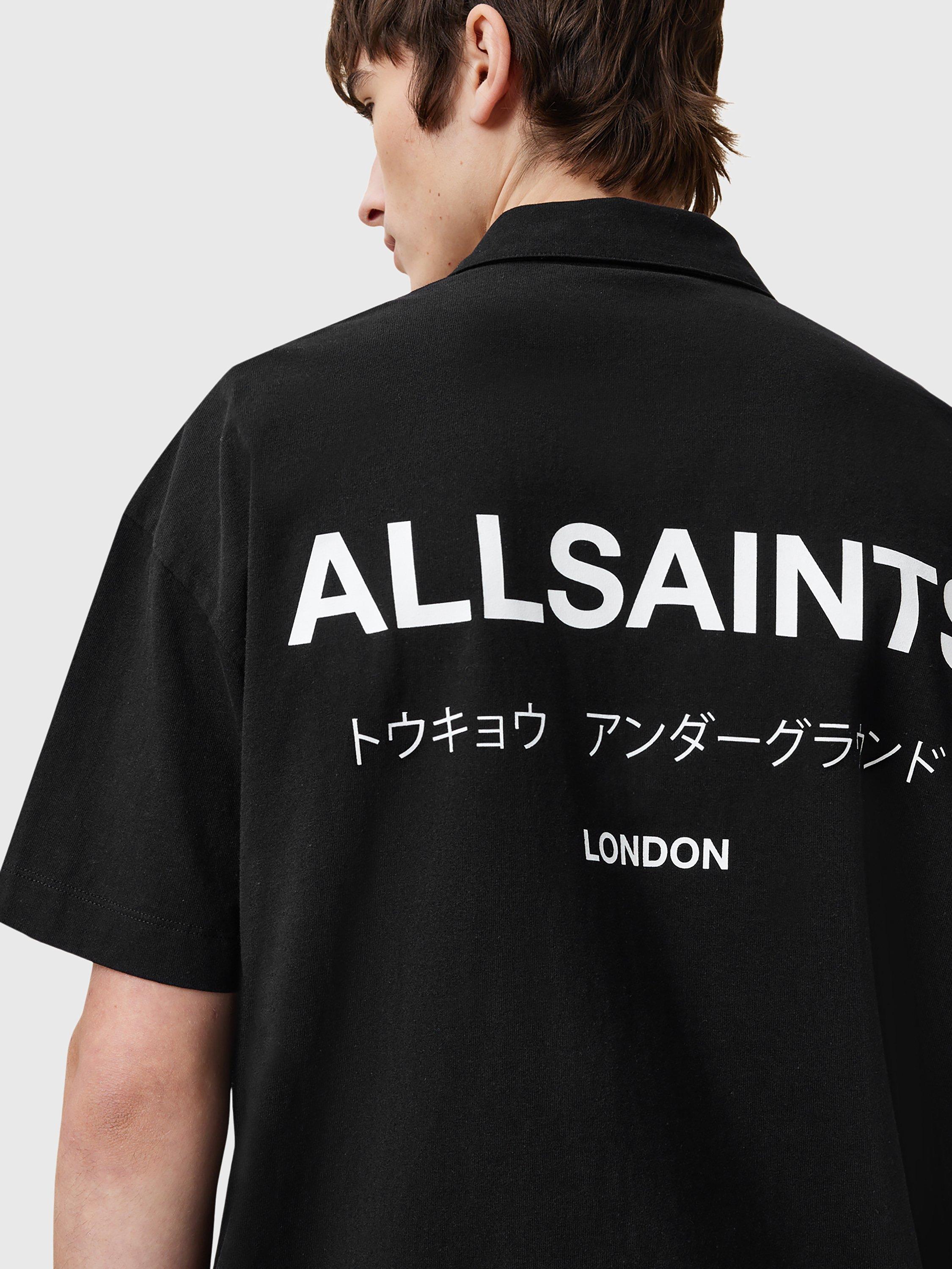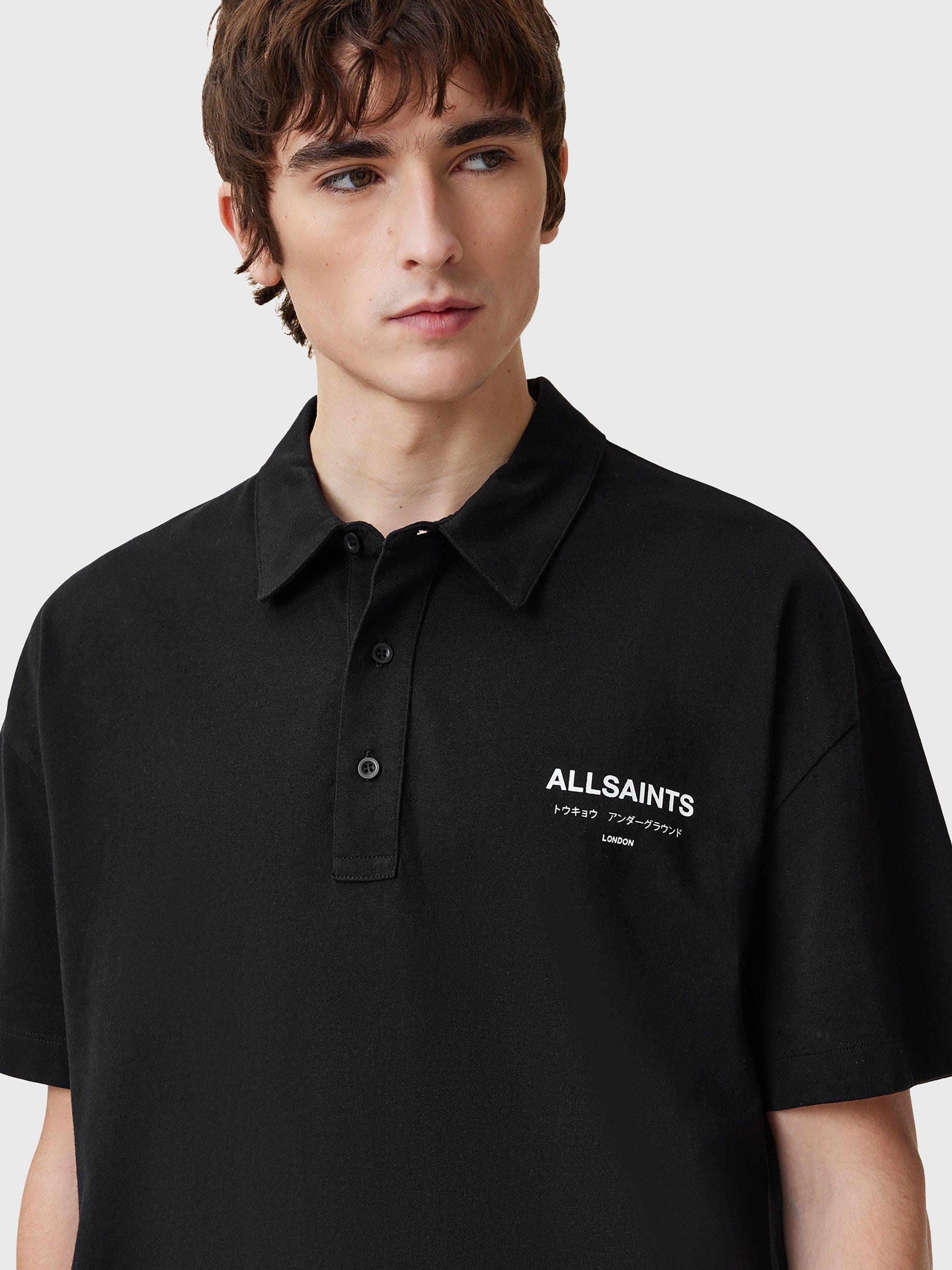 A classic polo shirt from AllSaints with subtle branding at the chest, plus larger graphics to the reverse. It has a relaxed, oversized fit.