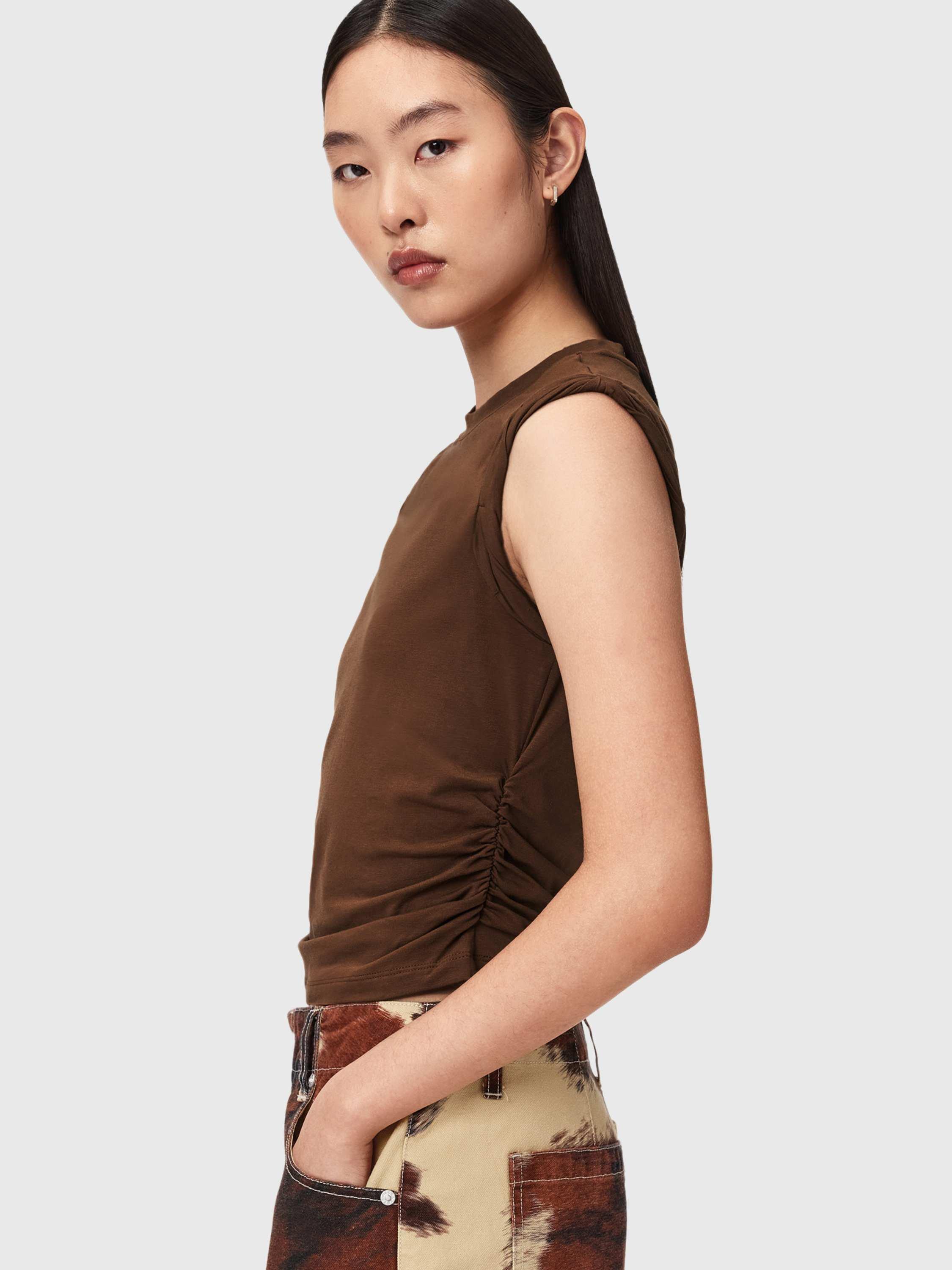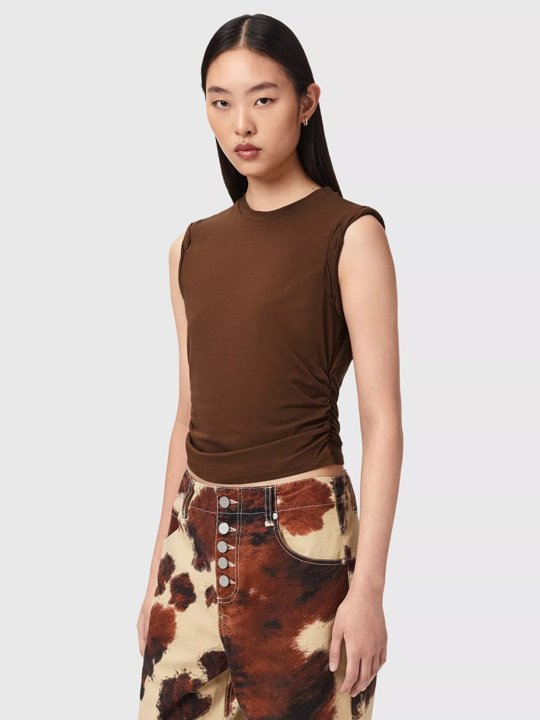 Made from a stretchy organic cotton and modal blend, this tank from AllSaints is anything but basic. Cut with a round neck, it's fitted with ruching at the hem.