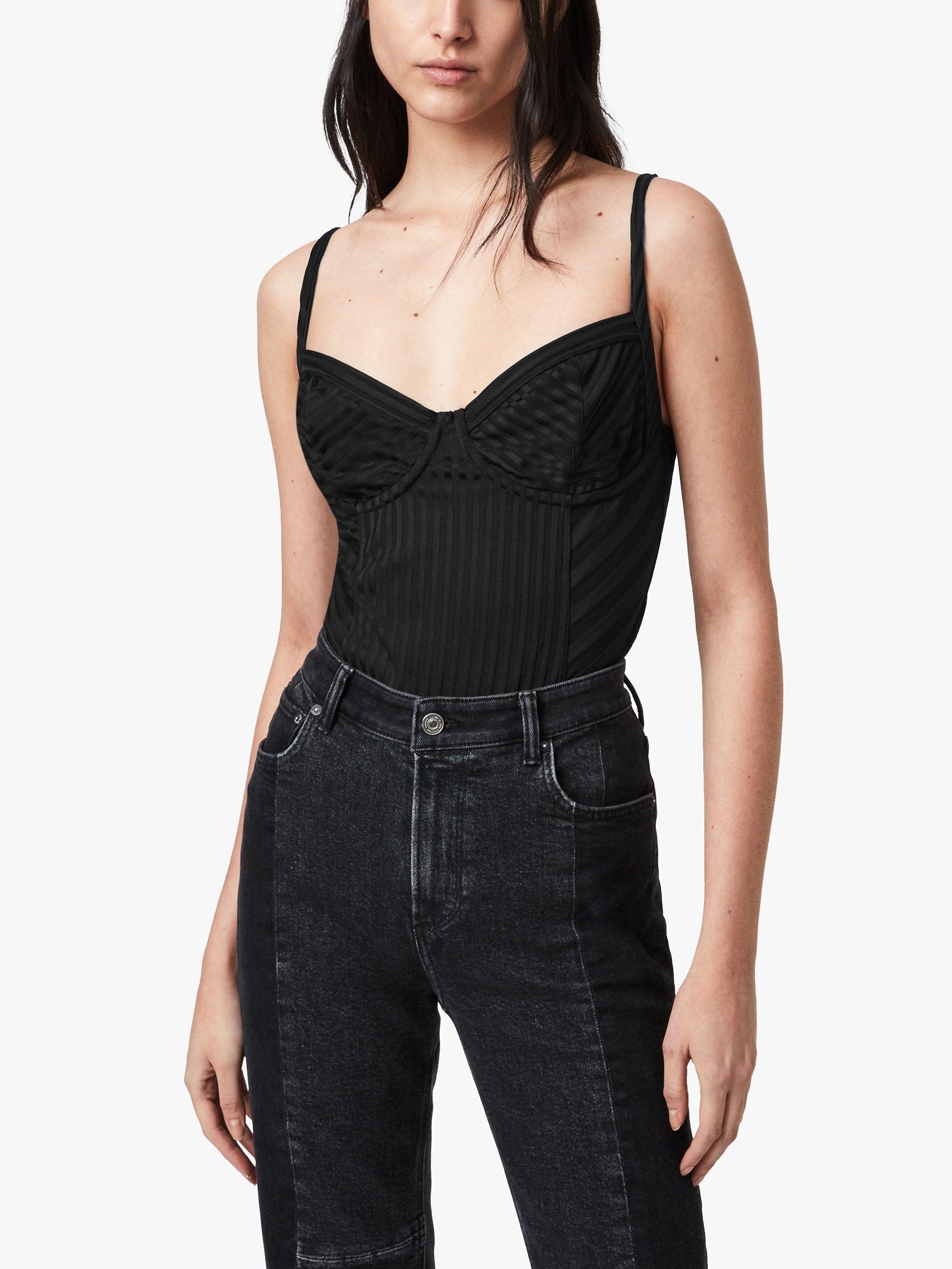 In a bodycon silhouette with a scooped neckline and all-over ribbing, this bodysuit from AllSaints is super slim-fitting. Supportive with an underwired bust and adjustable straps, this style is one pairing with leather trousers or floaty skirts for your next social event, whether you're glamming up for after dark drinks or heading to dinner with friends.